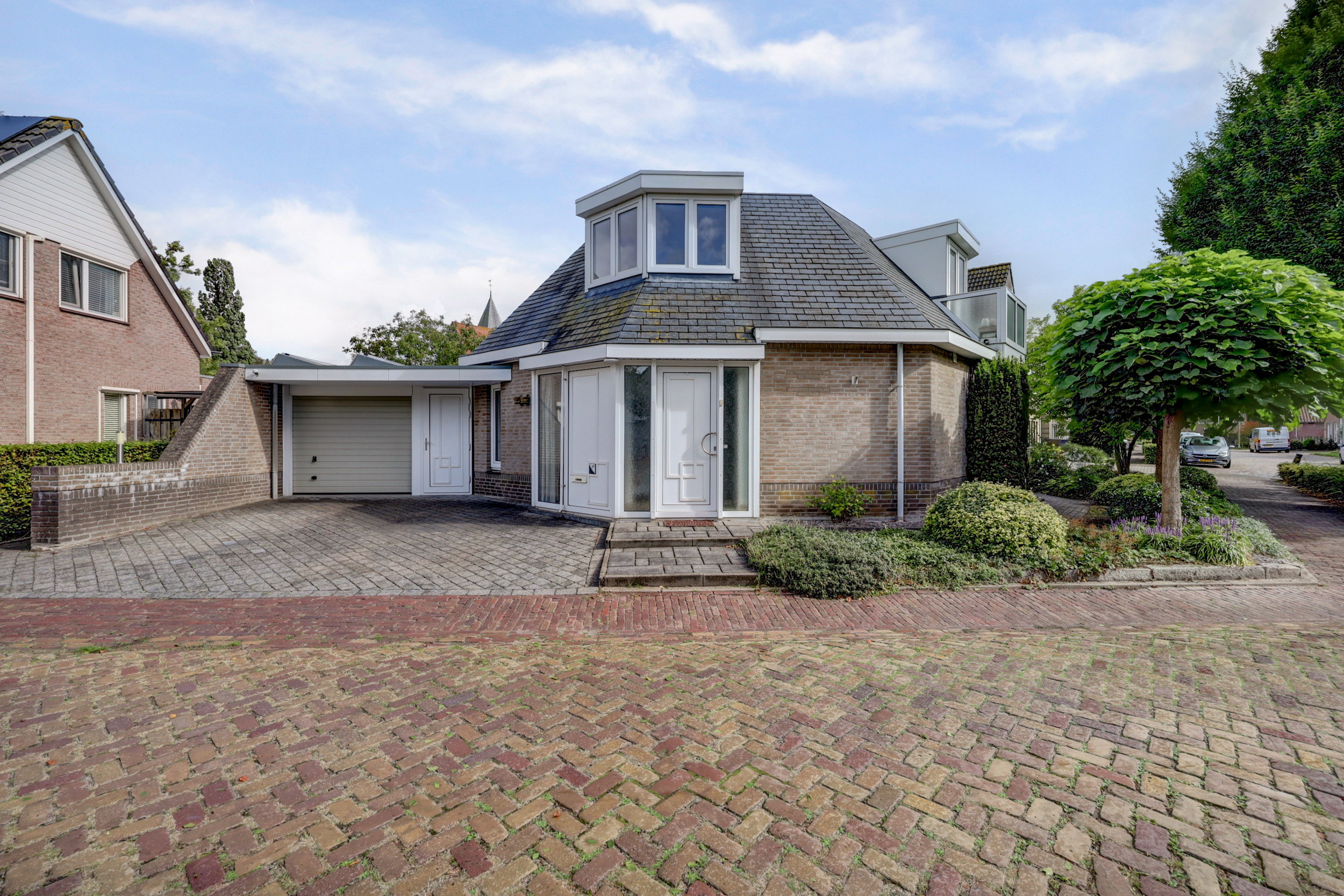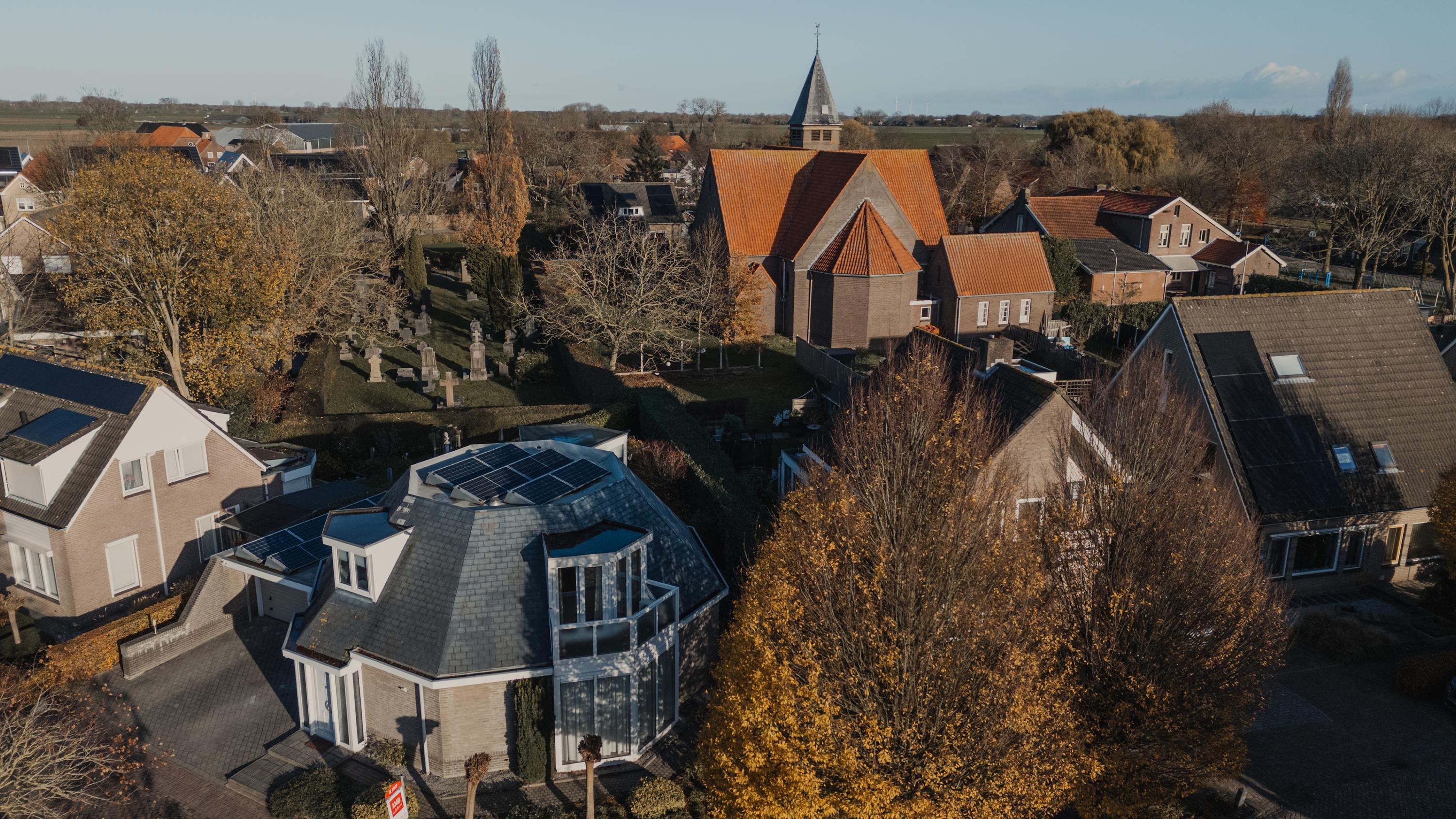 Unieke vrijstaande octagonwoning met verrassende indeling, veel licht en een ruime tuin met uitzicht op de kerk