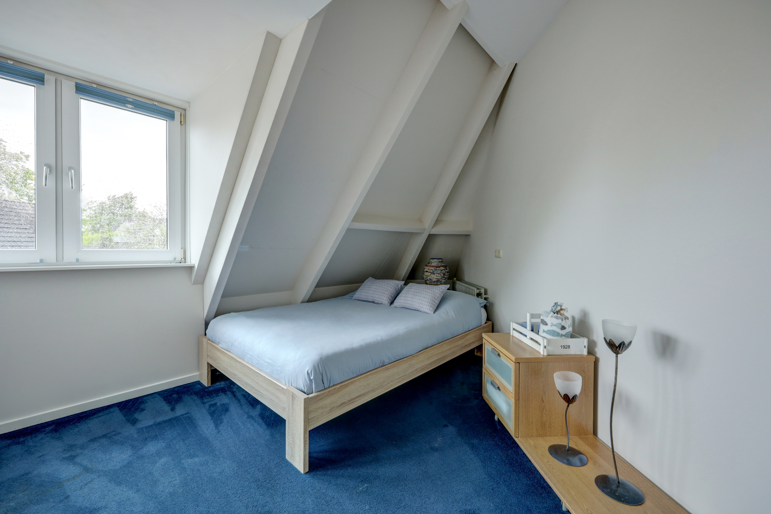 Op de verdieping zijn drie speelse slaapkamers, elk voorzien van een dakkapel. De ouderslaapkamer beschikt bovendien over een inloopkast, airconditioning en een zonnig balkon op het zuiden. De ruime badkamer is uitgerust met een dubbele wastafel, toilet, douche en ligbad.