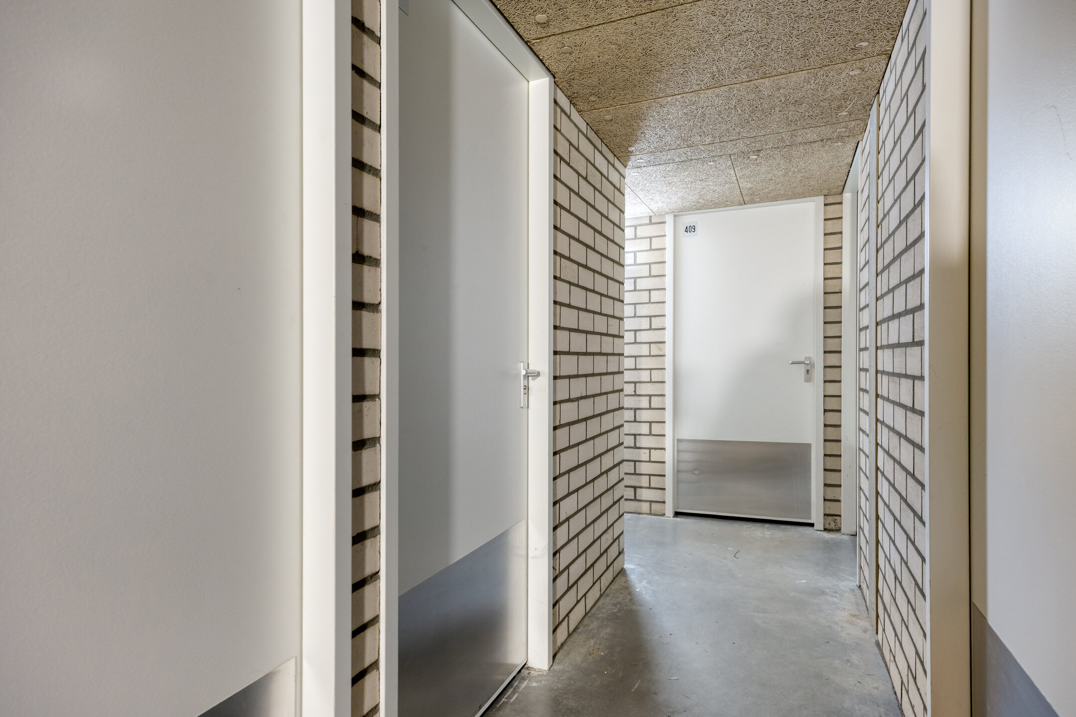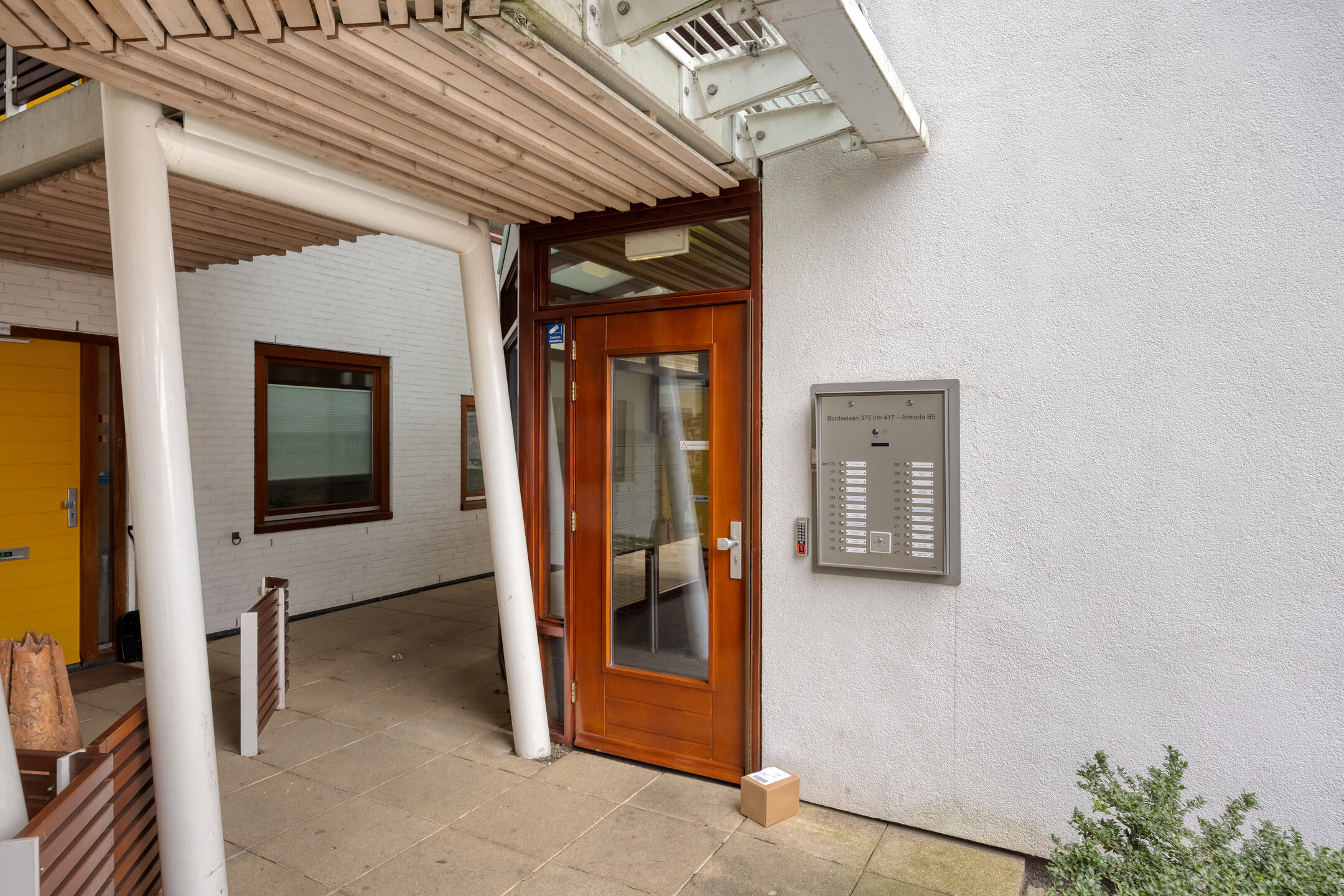 De entree van het gebouw is voorzien van een modern bellentableau met video-intercom, brievenbussen en toegang tot de lift en het trappenhuis. Via de overdekte galerij bereikt u de voordeur van het appartement.