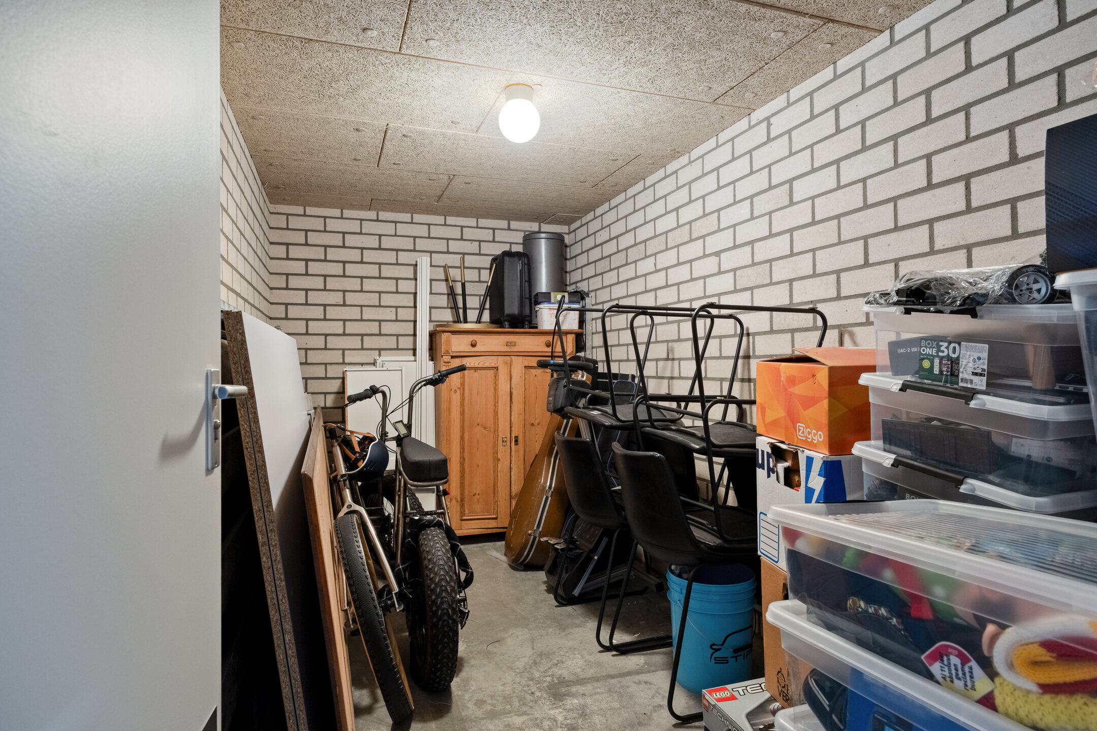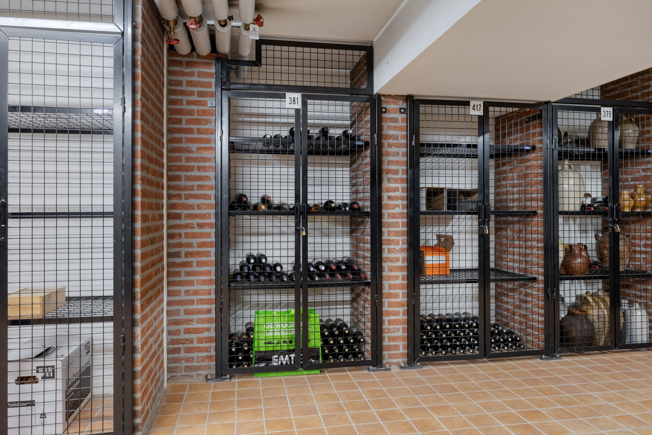 De technische ruimte in het appartement biedt plaats aan de wasmachine, droger en stadsverwarmingsunit. In het souterrain beschikt u over een royale berging, een vaste parkeerplaats in de parkeergarage en toegang tot de gemeenschappelijke wijnkelder met een eigen wijnkast. Het complex is goed onderhouden en biedt een prettige en veilige woonomgeving.