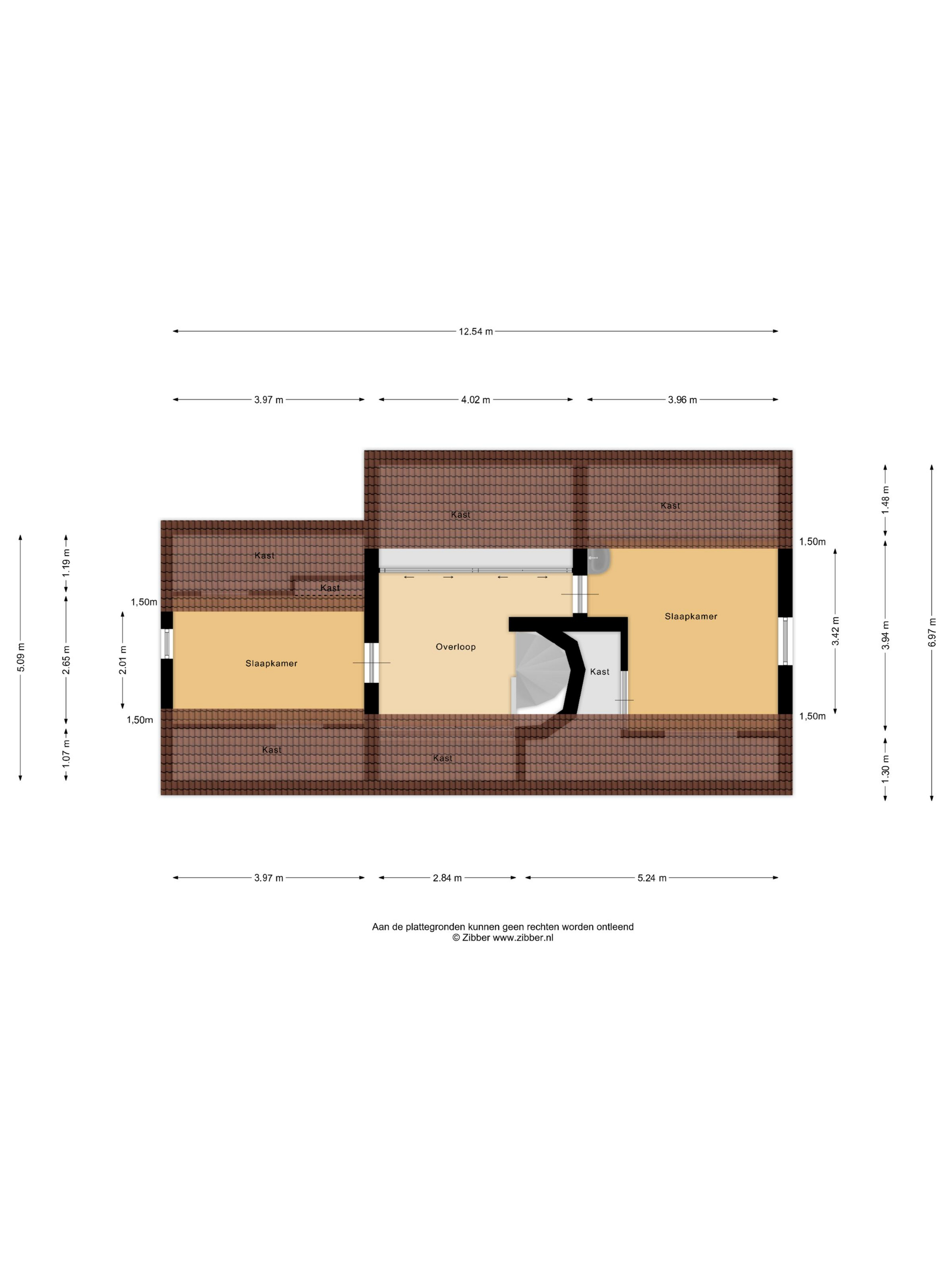De tweede verdieping is bereikbaar via de vaste trap en vormt opnieuw een volwaardige woonlaag. Je komt boven op een royale overloop waar je toegang hebt tot twee slaapkamers. In de overloopwand zijn grote praktische kasten verwerkt, waardoor er meer dan genoeg opbergruimte is. Beide slaapkamers zijn van formaat en bieden genoeg ruimte voor een tweepersoonsbed en een kledingkast. Eén van de kamers beschikt daarnaast over een eigen wastafel, wat deze ruimte perfect maakt als hobbyruimte, fitnessruimte of comfortabele tienerkamer.