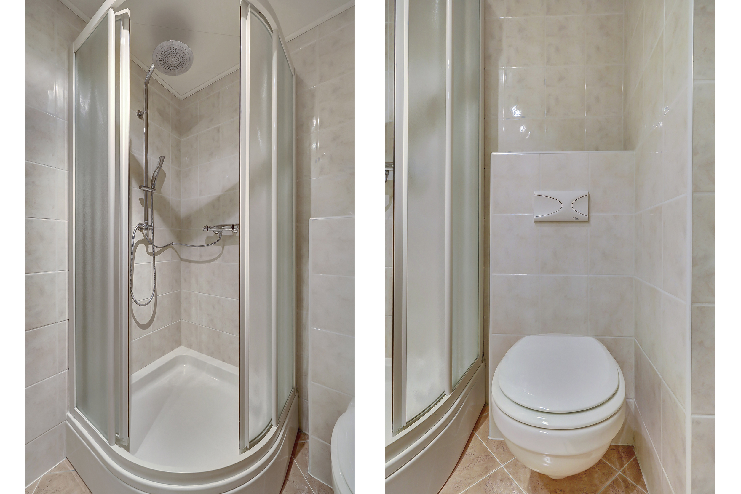 - Toilet, douche, wastafel en wastafelmeubel