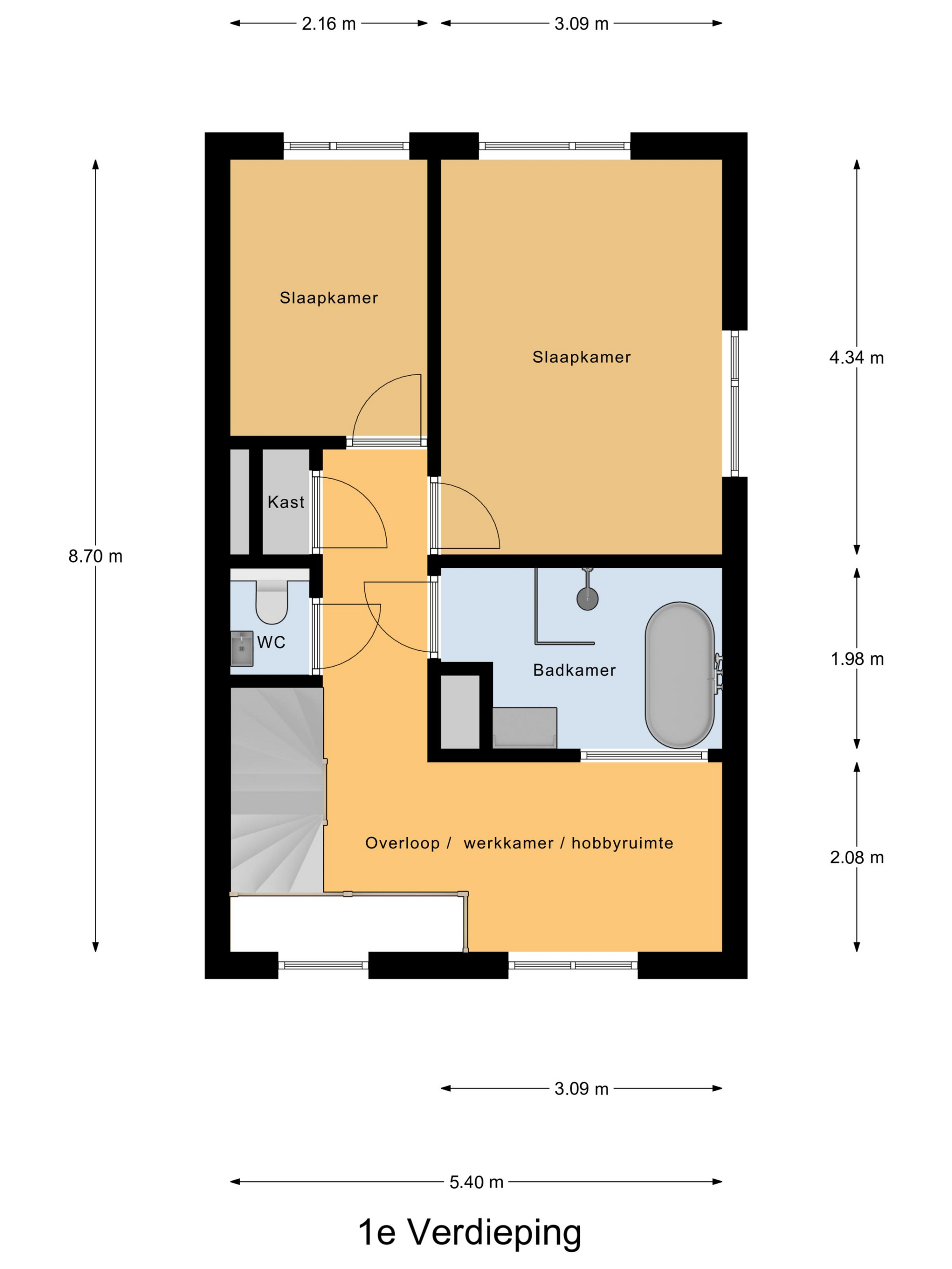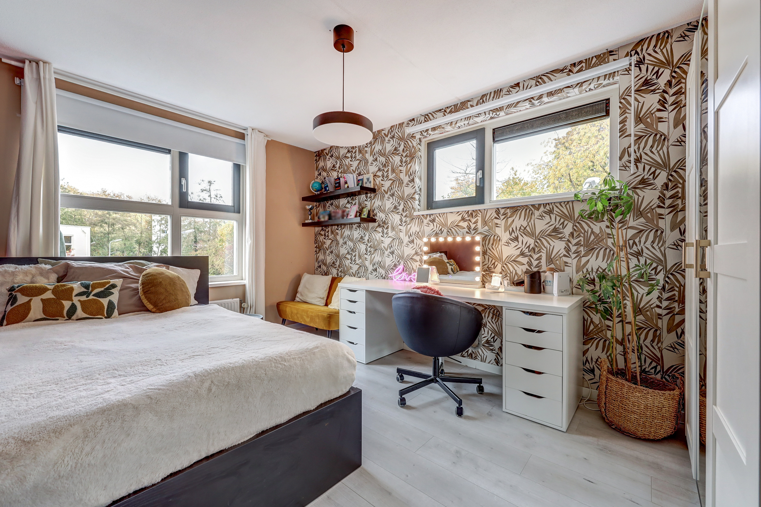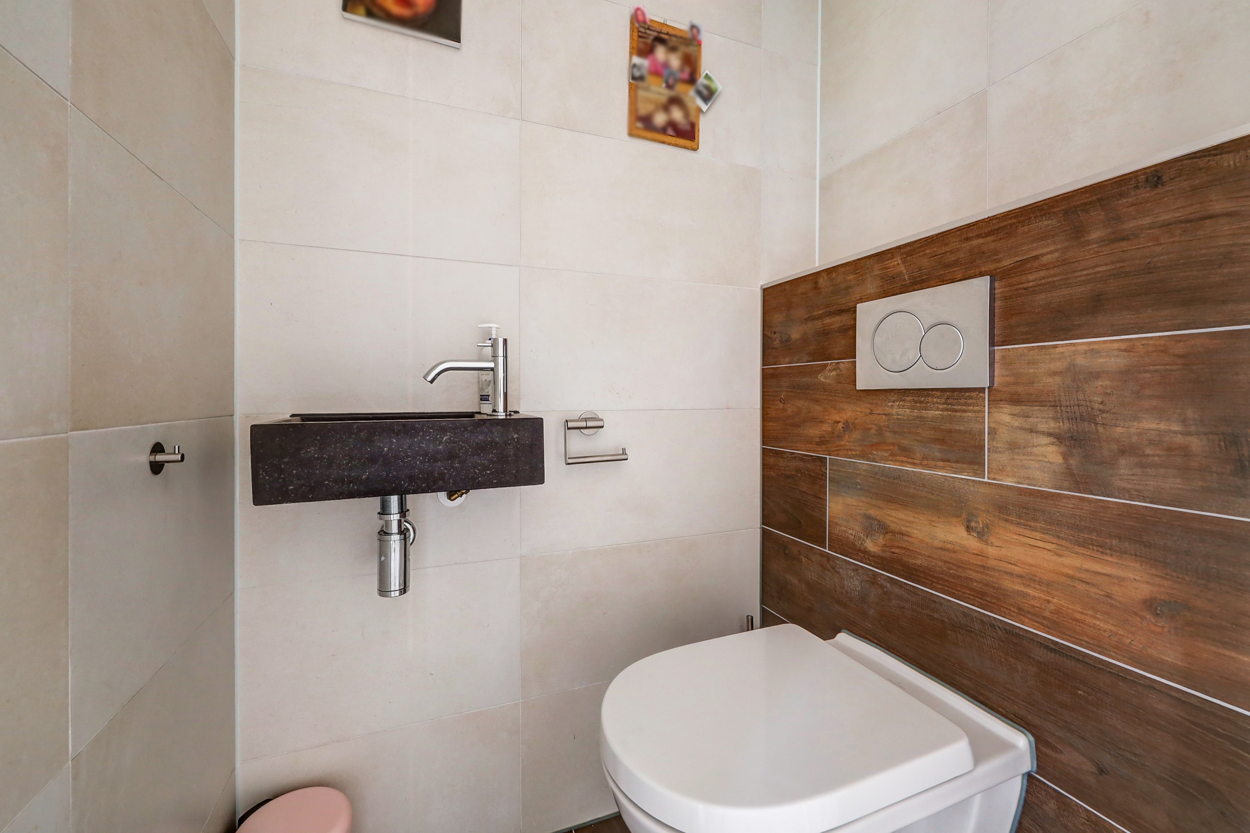De overloop is zeer royaal en heeft veel licht. Op de overloop is een diepe bergkast. Daarnaast zijn er 2 ruime slaapkamers te vinden en een mooie, volledig betegelde badkamer met vrijstaand ligbad, douche en een fraai wastafelmeubel. Het separate toilet beschikt over een wandcloset en een fonteintje. De badkamer is voorzien van hoogwaardige materialen, waaronder hoge kwaliteit tegels en eikenhouten wastafelmeubel en spiegelkast. Deze verdieping is eveneens voorzien van een mooie laminaatvloer en desgewenst is er een extra slaapkamer te realiseren.
