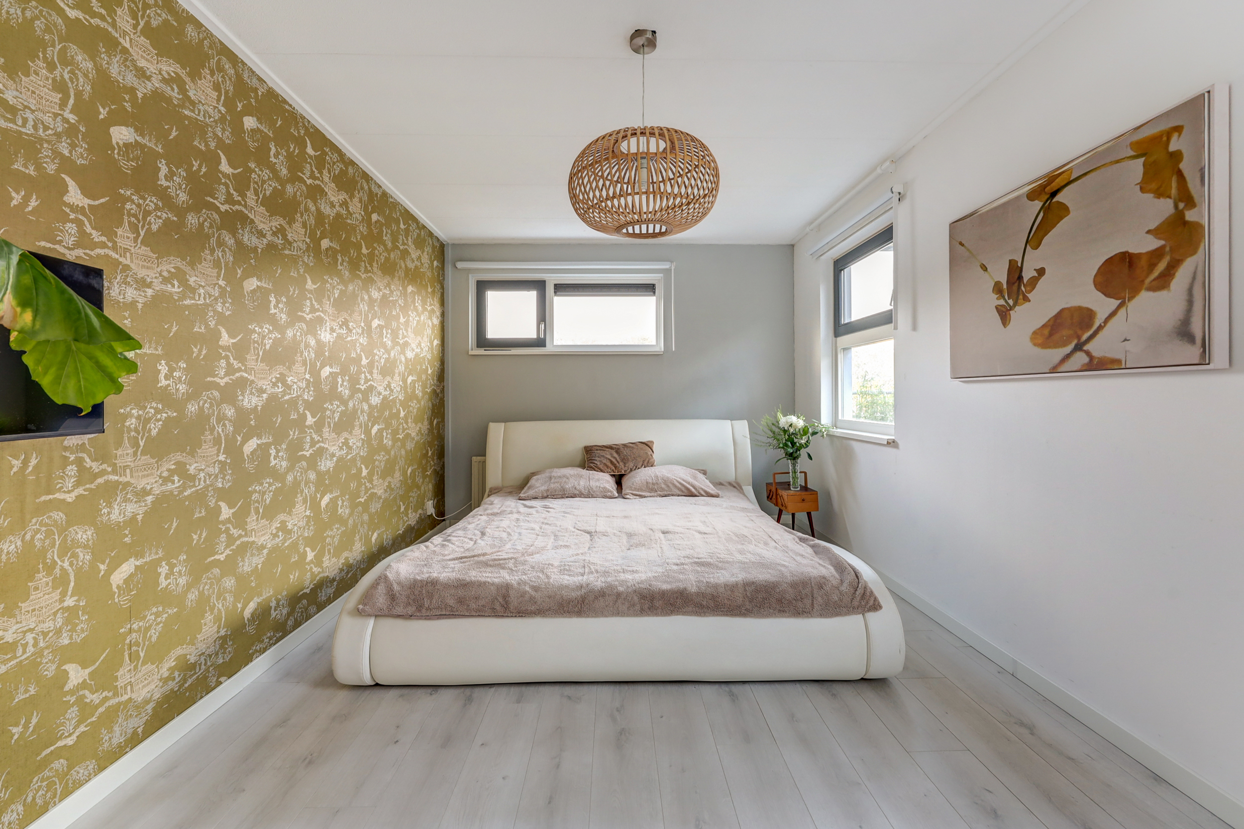 Er is een aangenaam ruime en lichte slaapkamer met een royaal dakterras van maar liefst ca. 19 m². Hier kunt u in volledige privacy van de ochtend- en vroege middagzon genieten, terwijl u de namiddag- en avondzon in de tuin kunt meepakken. U kunt dus de gehele dag van de zon genieten!