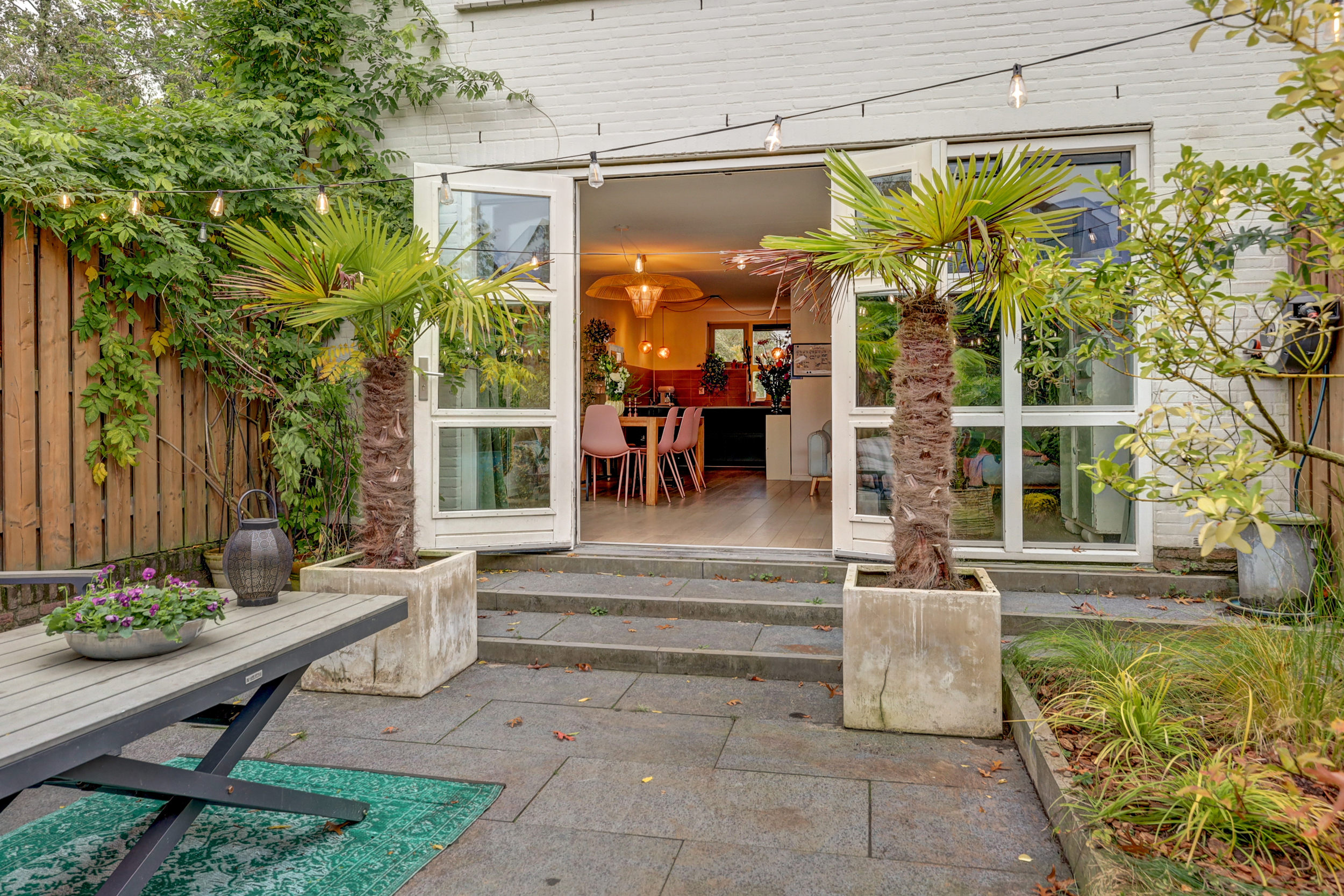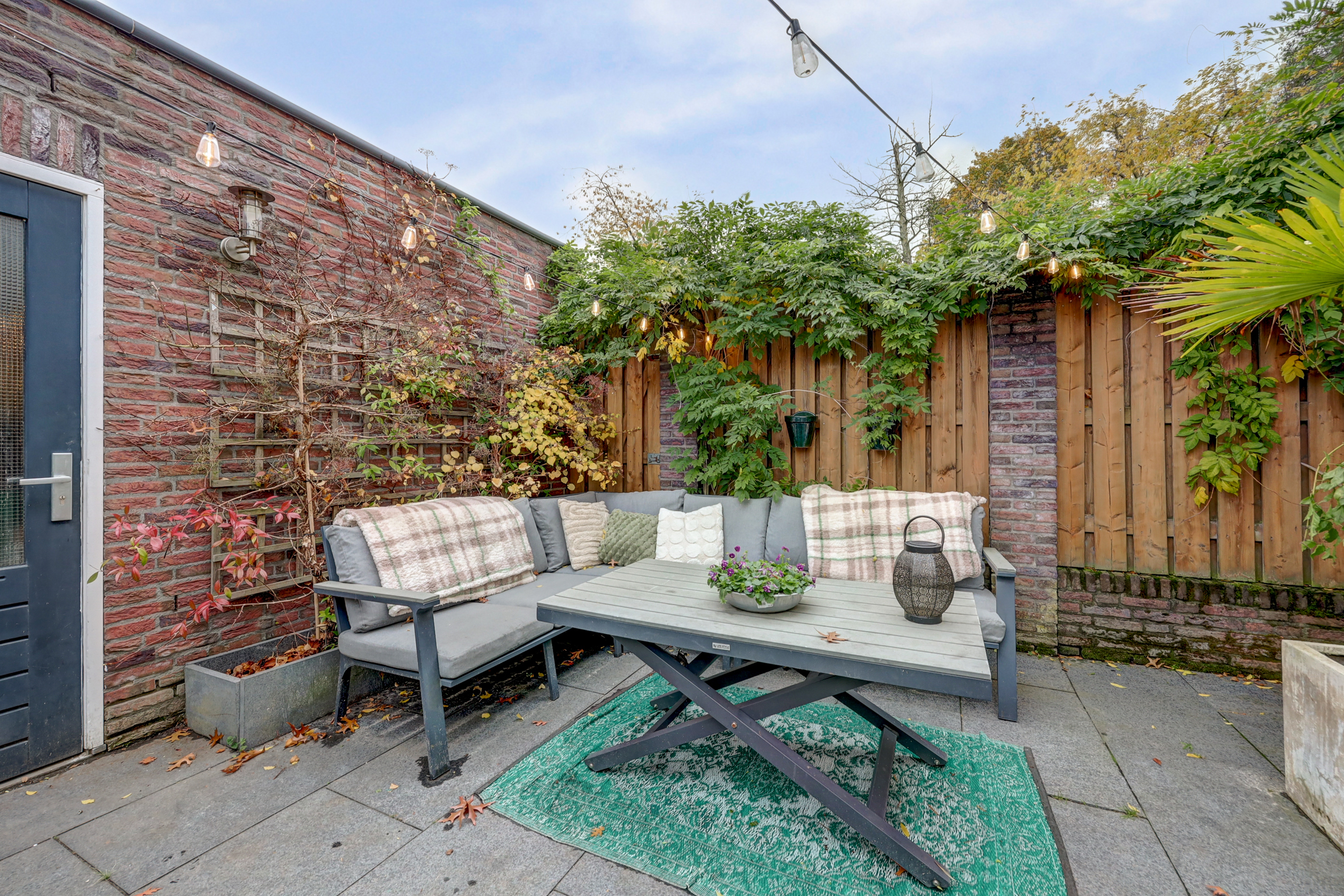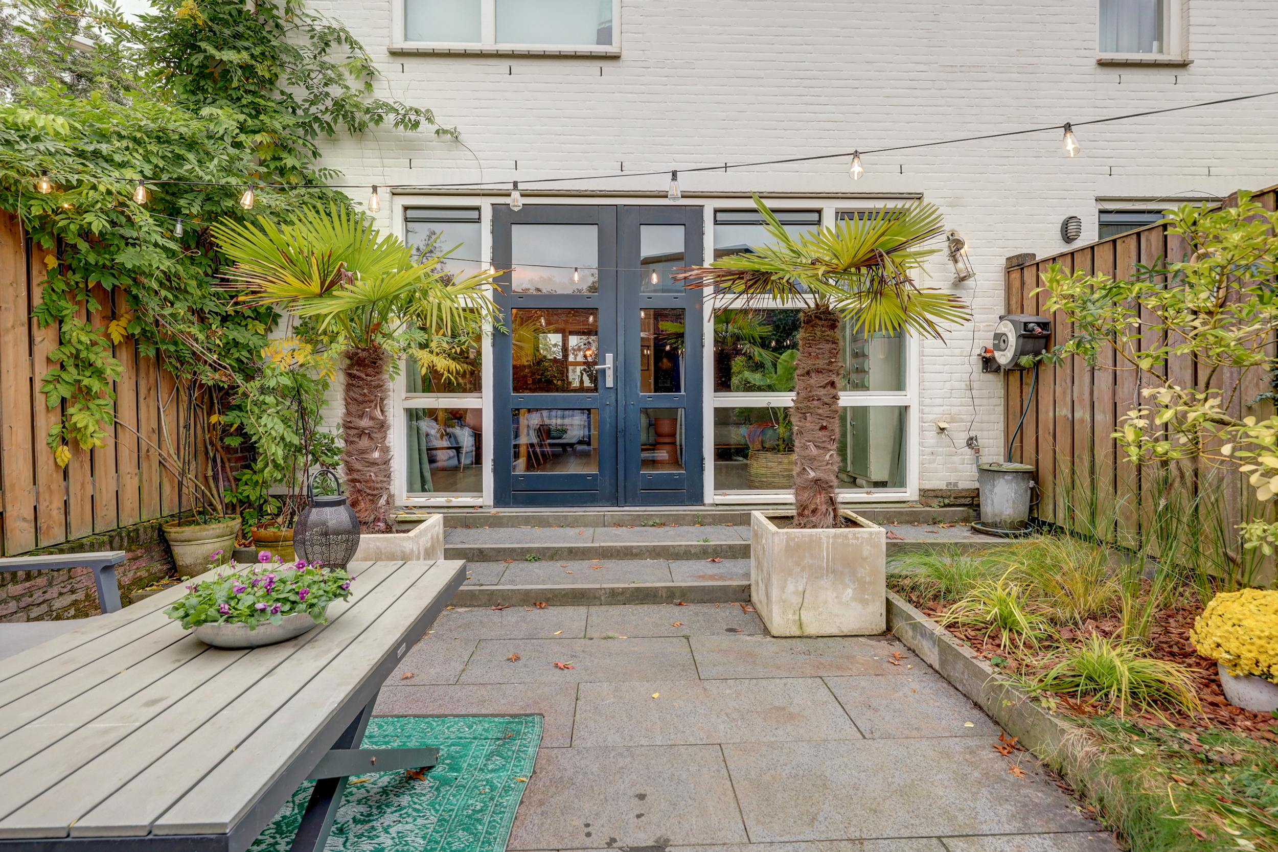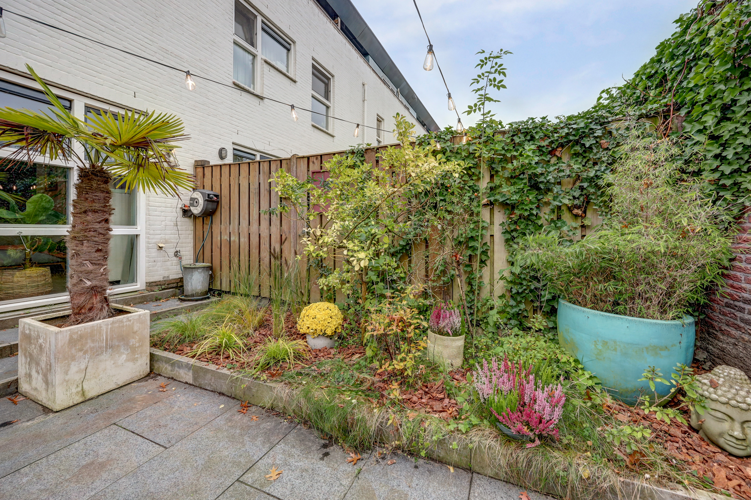 De tuin is gesitueerd aan de achterkant van de woning en kan middels openslaande deuren bereikt worden. Achterin de tuin is de garage gelegen met een loopdeur vanuit de tuin en een kanteldeur vanaf de straat. Tevens heeft de tuin een toegangsdeur vanaf de straat.