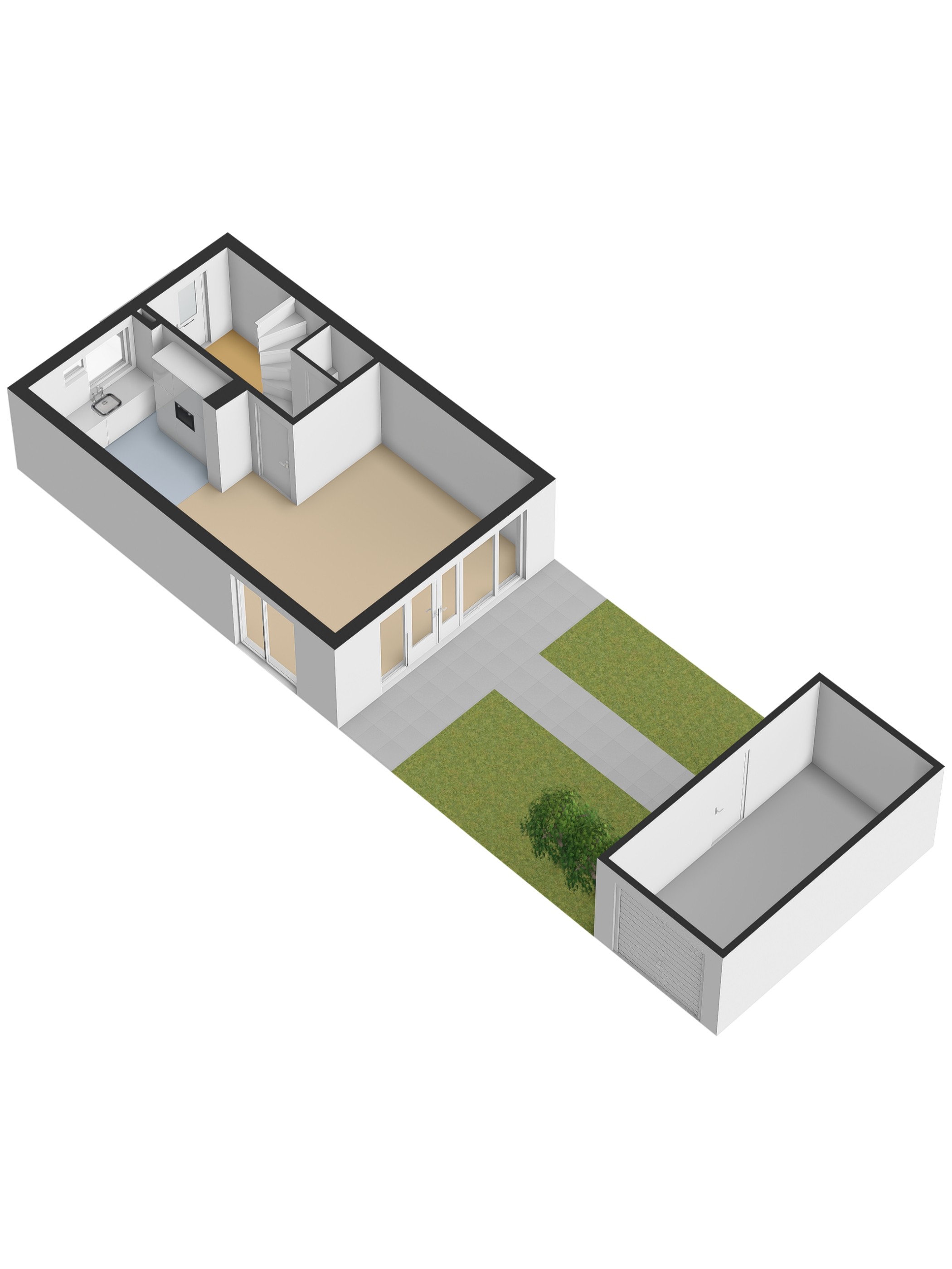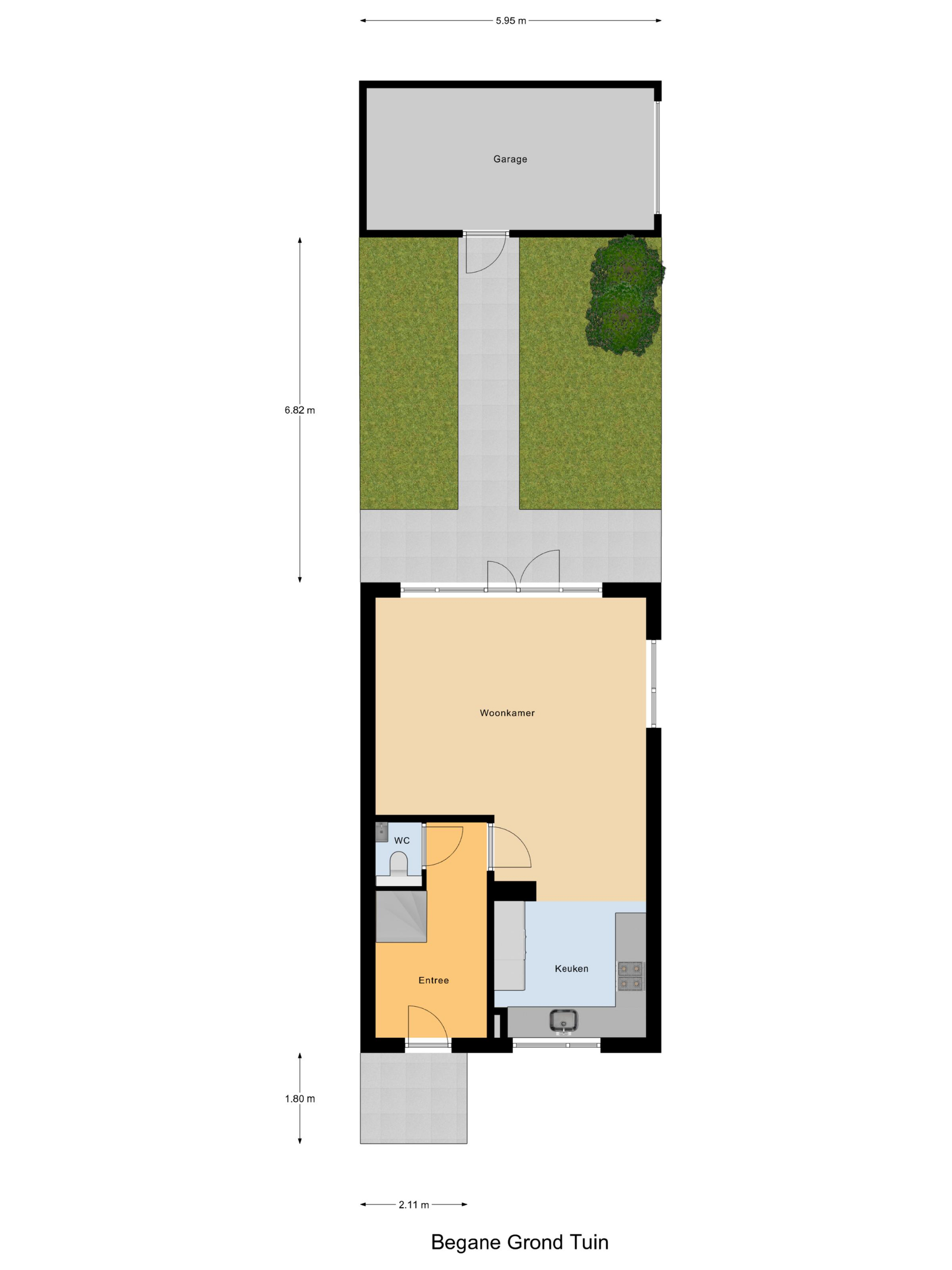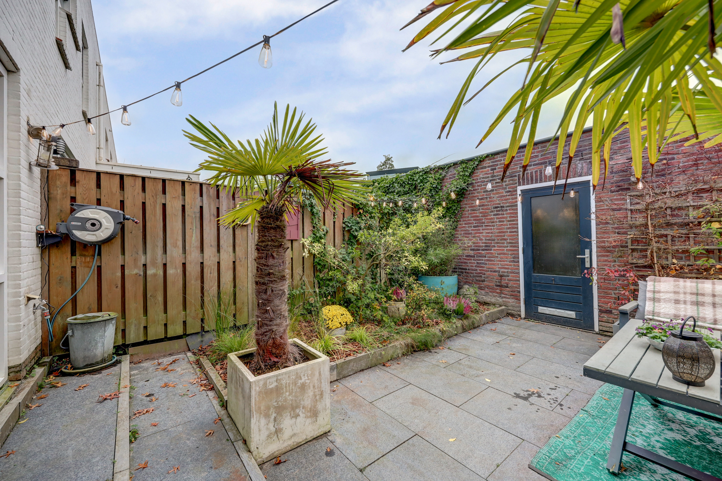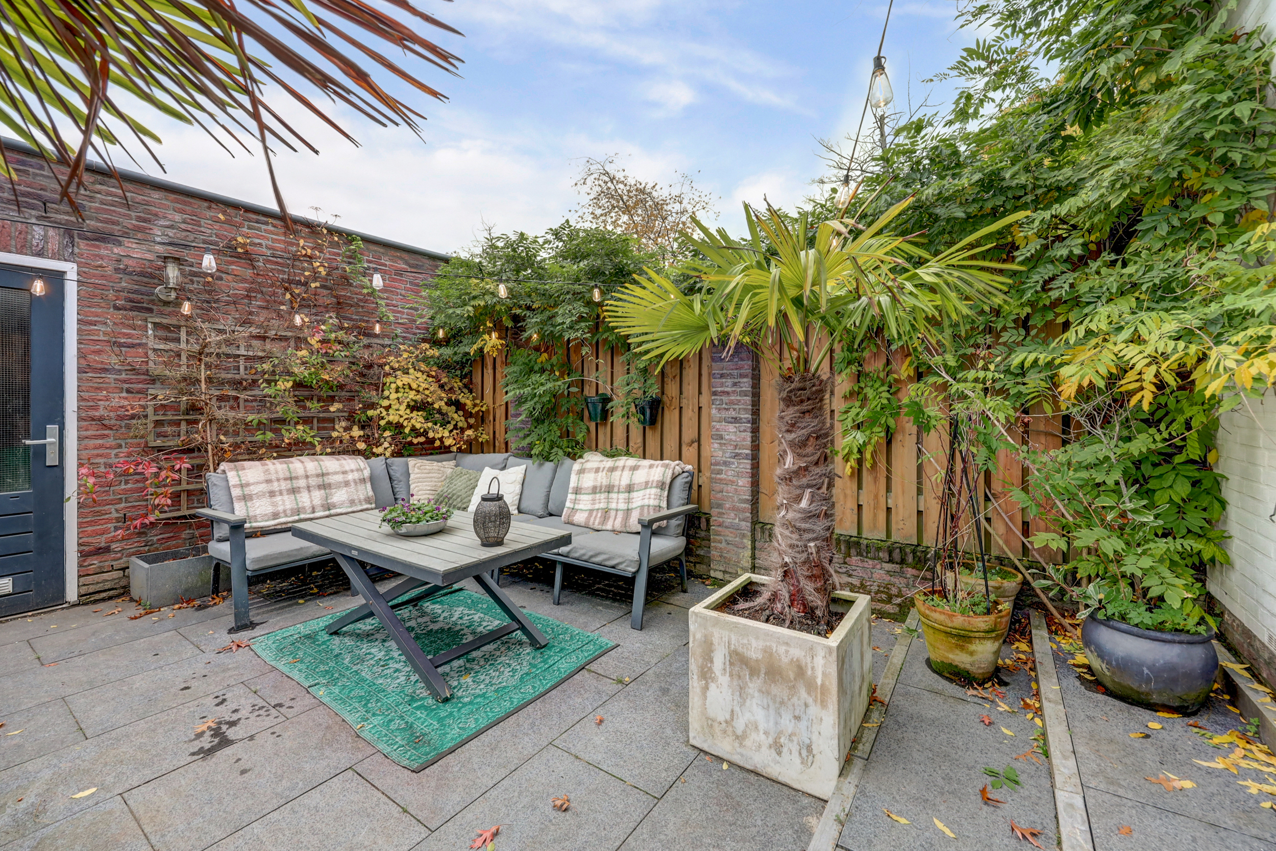 De tuin is gesitueerd aan de achterkant van de woning en kan middels openslaande deuren bereikt worden. Achterin de tuin is de garage gelegen met een loopdeur vanuit de tuin en een kanteldeur vanaf de straat. Tevens heeft de tuin een toegangsdeur vanaf de straat.
