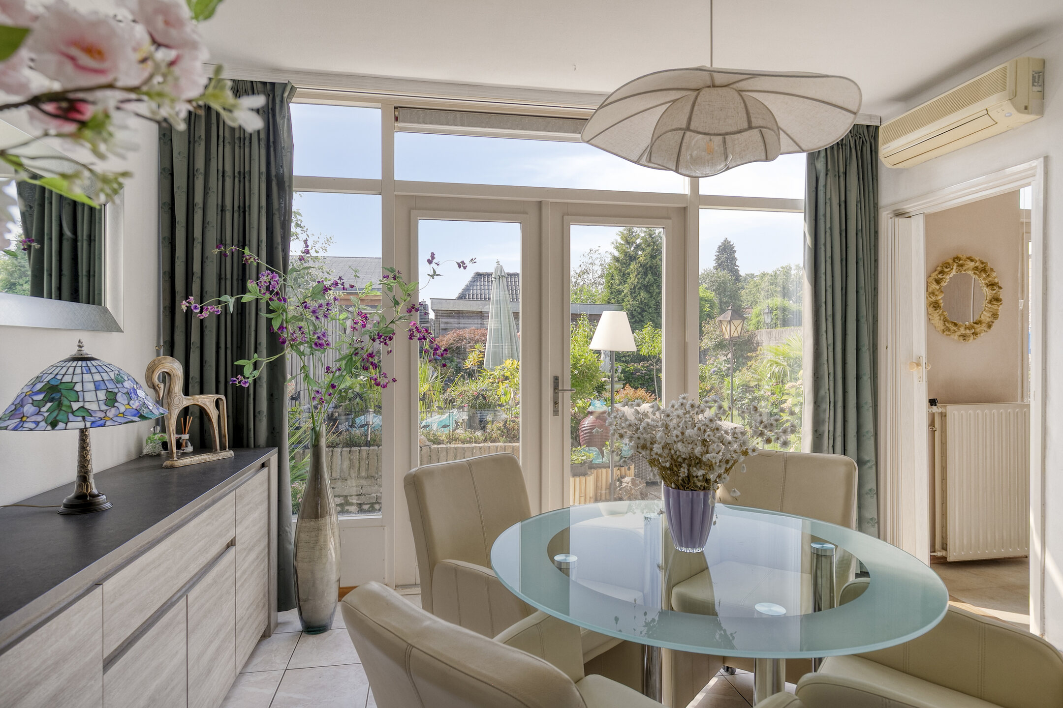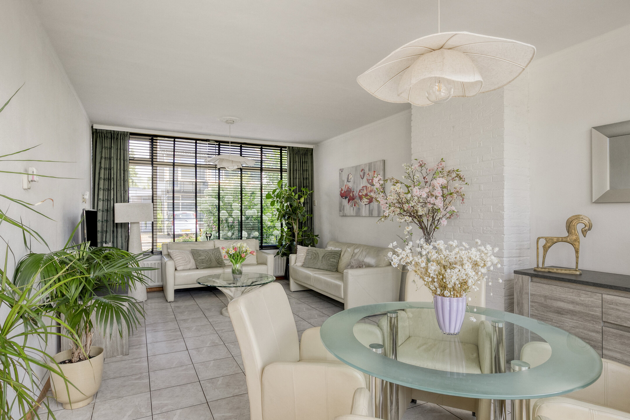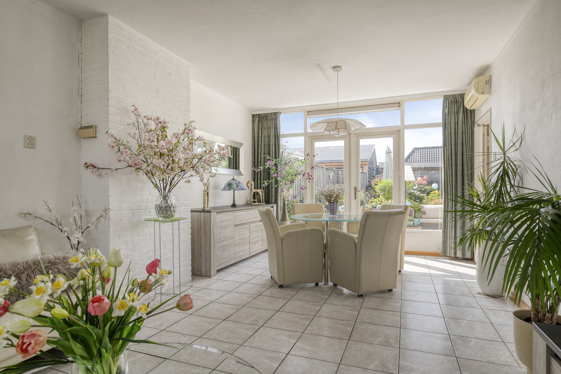 Via de oprit kom je binnen in de hal met toilet, meterkast en trapopgang. De keuken is functioneel ingericht en geeft toegang tot zowel de tuin als de lichte woonkamer met grote ramen en dubbele tuindeuren. De airconditioning zorgt voor extra comfort.