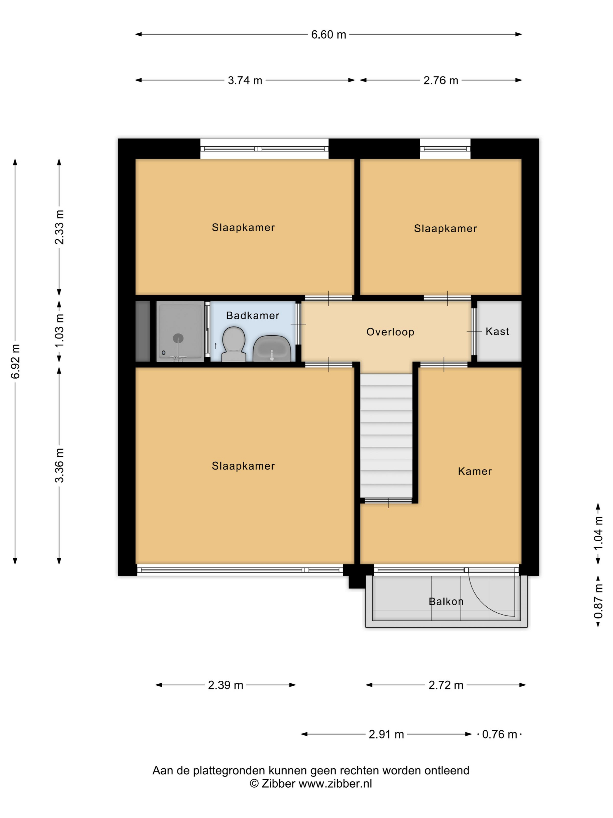 Hier bevinden zich drie slaapkamers, een badkamer, een doorloopkamer welke ook geschikt is als inloopkast en een bergkast.