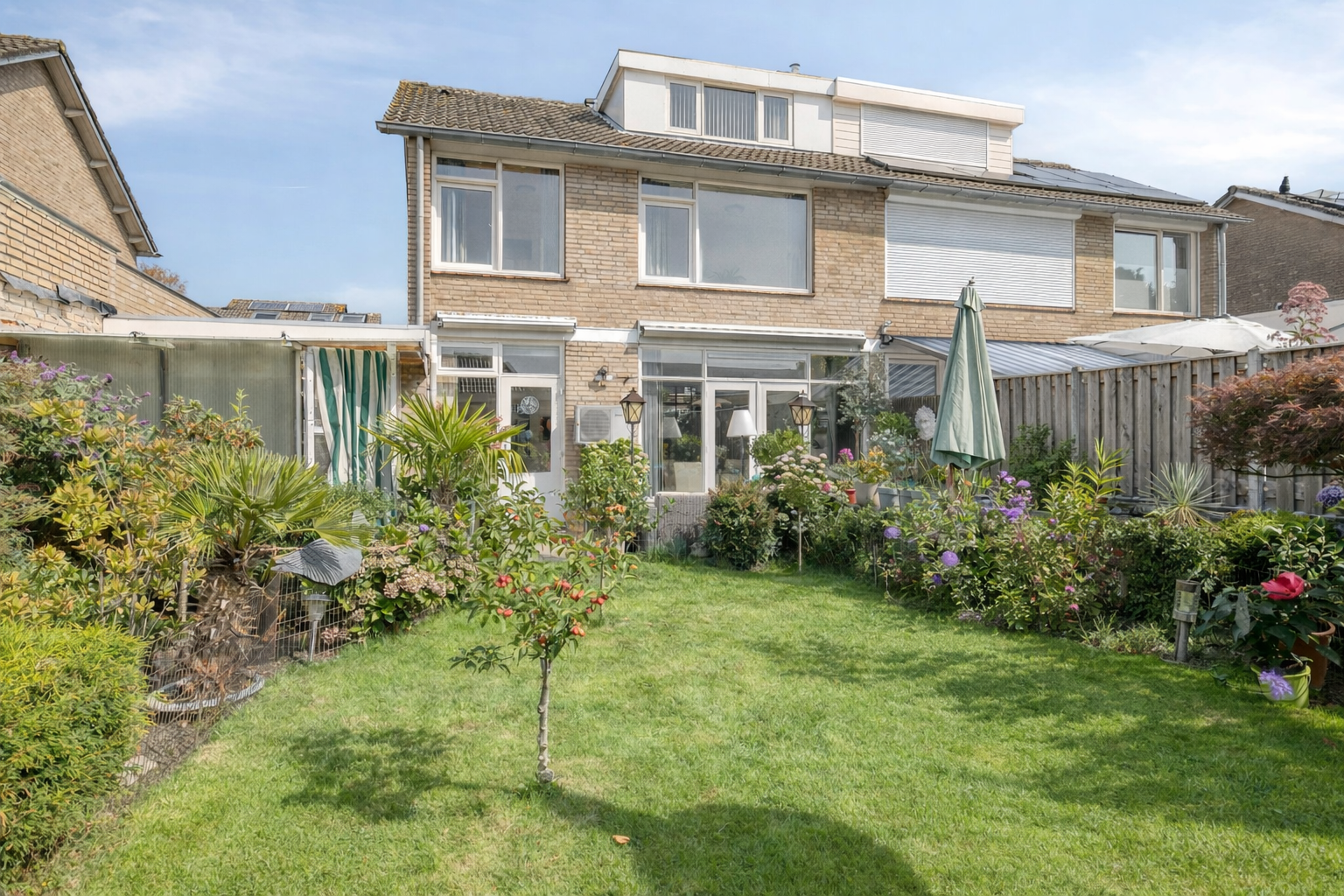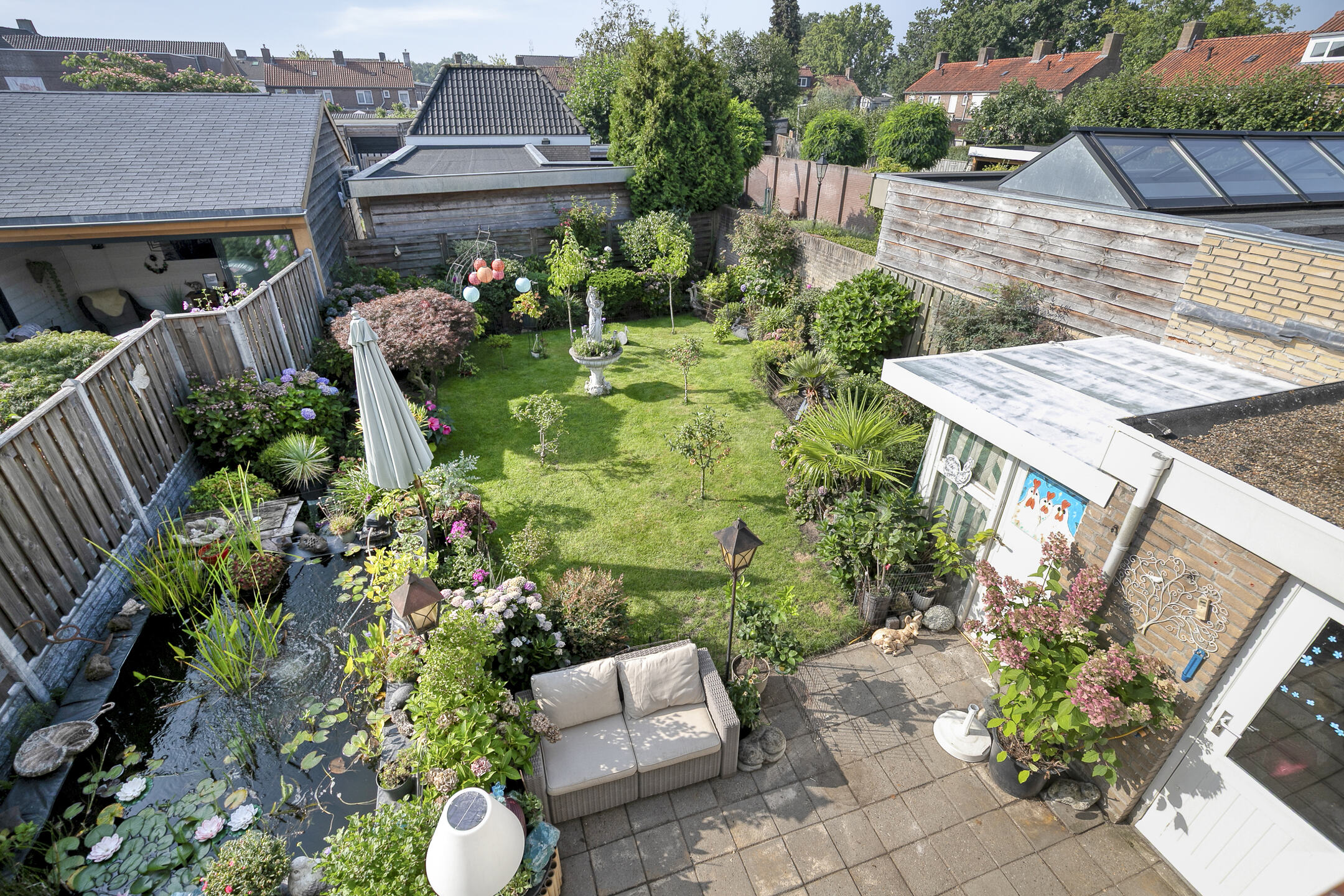 De zonnige, op het zuiden gelegen tuin is met veel zorg en liefde aangelegd en bijna 15 meter diep. Het groen is weelderig en perfect onderhouden, waardoor de tuin een rustgevende, natuurlijke sfeer uitstraalt. Dankzij de royale afmetingen is er volop ruimte voor meerdere zitplekken of een speelplek voor kinderen. De tuin biedt veel privacy en voelt als een verlengstuk van de woonkamer. Overal waar je kijkt, zie je groen, van bloeiende planten tot volgroeide struiken. Hier geniet je van ochtendzon tot avondlicht in een oase van rust. Een praktische berging zorgt voor extra gemak bij het opbergen van tuinspullen. Of je nu wilt loungen, tuinieren of buiten eten, deze tuin biedt alle mogelijkheden.