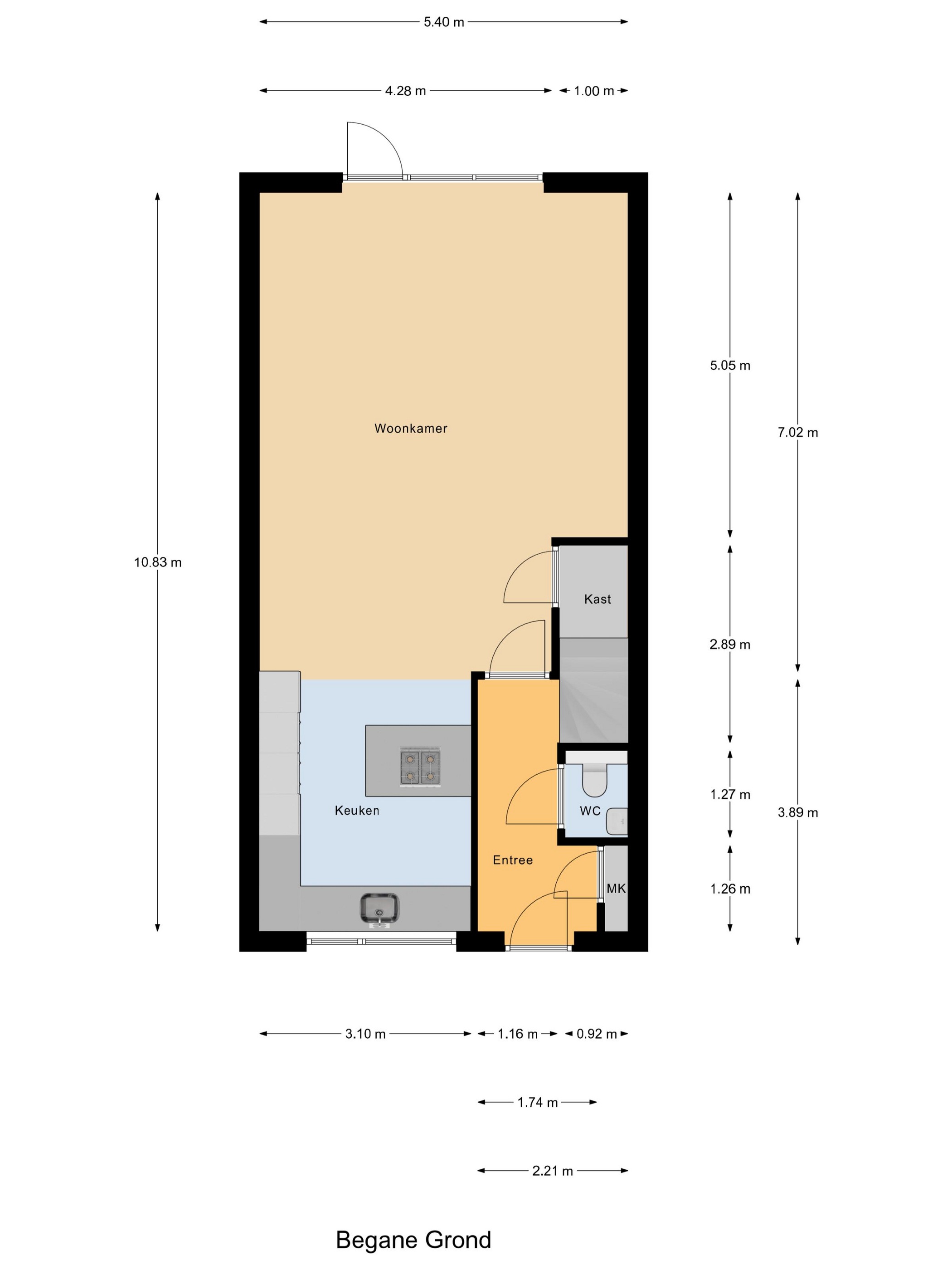 - 56 m² gelegen op het oosten met achterom