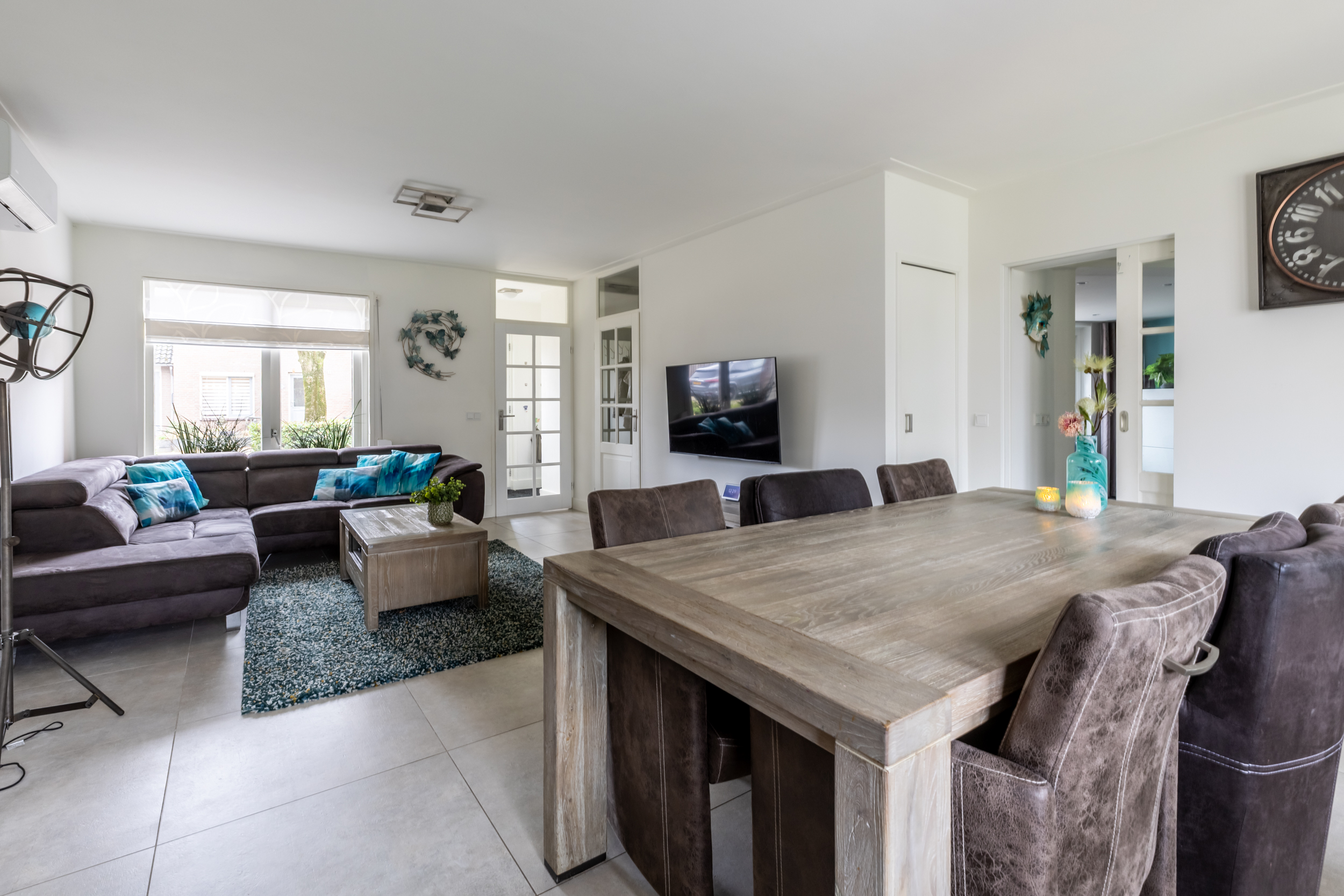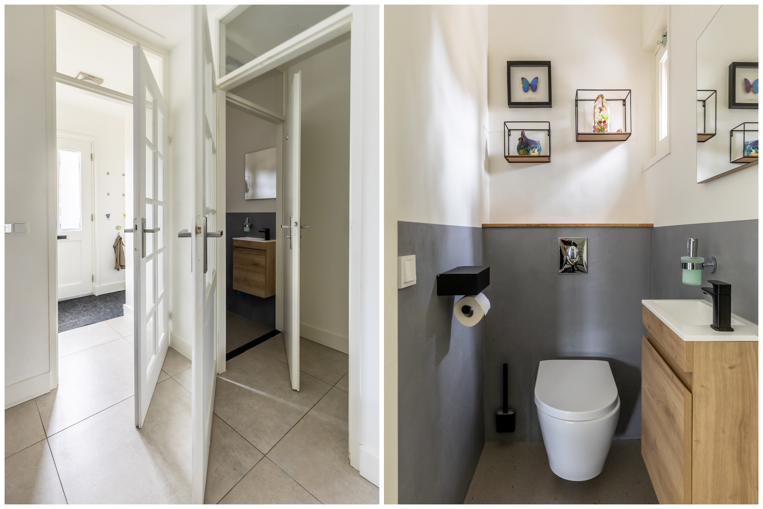 Vanuit de woonkamer bereikt u via een afgesloten portaal de vernieuwde toiletruimte en de trapopgang naar de eerste verdieping. Deze scheiding zorgt voor extra rust en privacy tussen het leefgedeelte en het slaapverdieping.