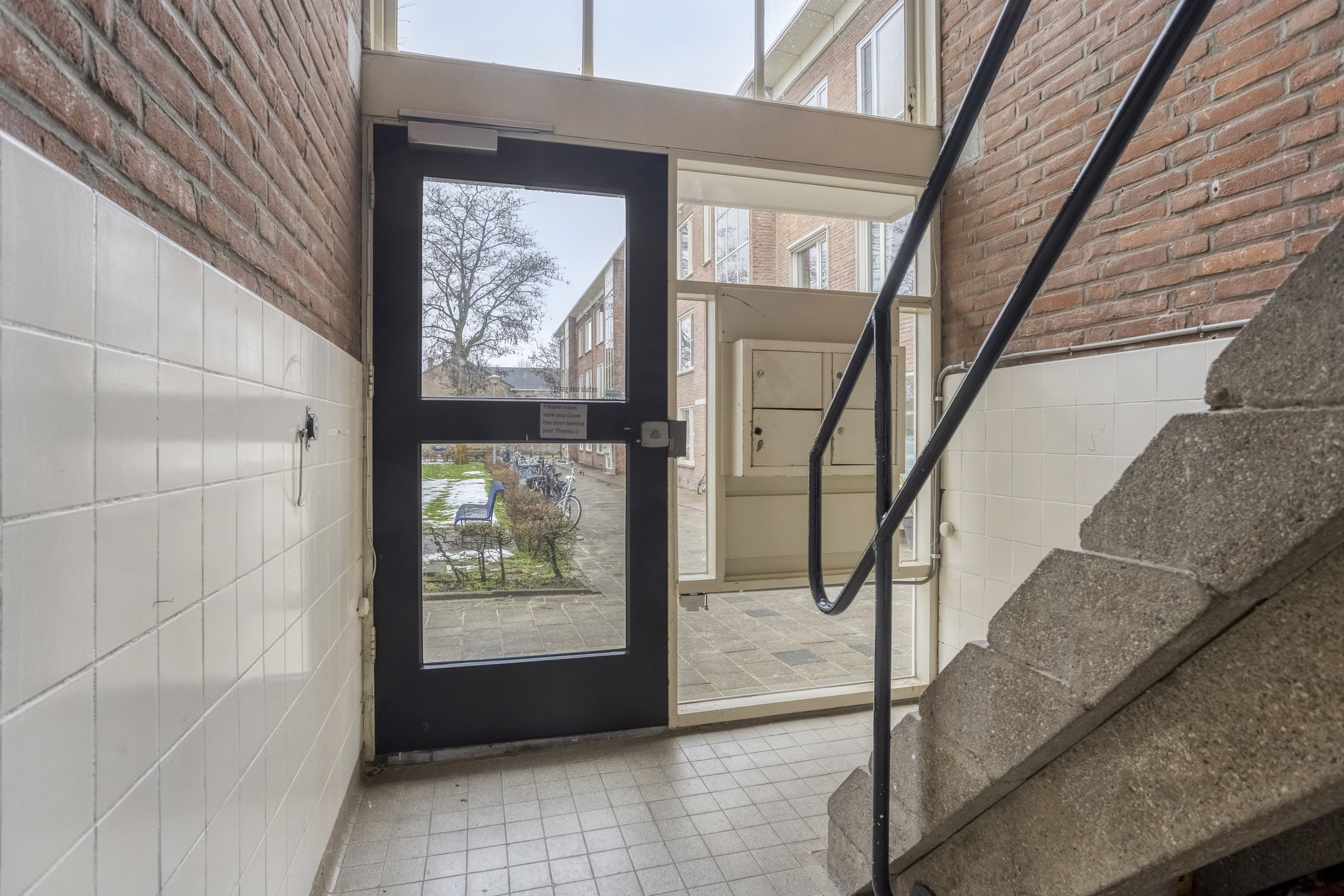 Via de algemene entree met brievenbussen en bellentableau stapt u het appartementencomplex binnen. Hier is het trappenhuis wat u naar de eerste verdieping brengt.