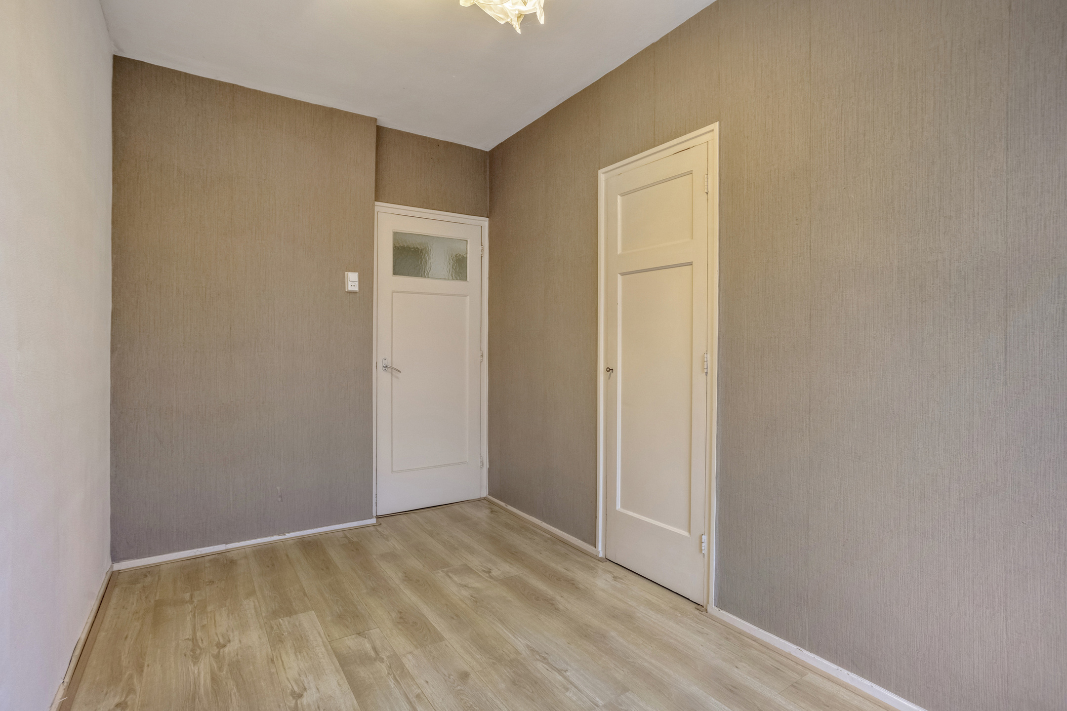 Via de hal komt u het appartement binnen. Vanuit de hal bereikt u alle leefruimten, net als de meterkast en het toilet. Het toilet is voorzien van neutraal tegelwerk. De slaapkamer aan de achterzijde heeft een vaste kast en uitzicht over de Zuid-Willemsvaart. De slaapkamer aan de voorzijde is ongeveer even groot en heeft een vaste kast en een grote kastenwand. Hierdoor is er veel extra bergruimte. Deze slaapkamer kijkt uit over het groene pleintje aan de voorzijde.