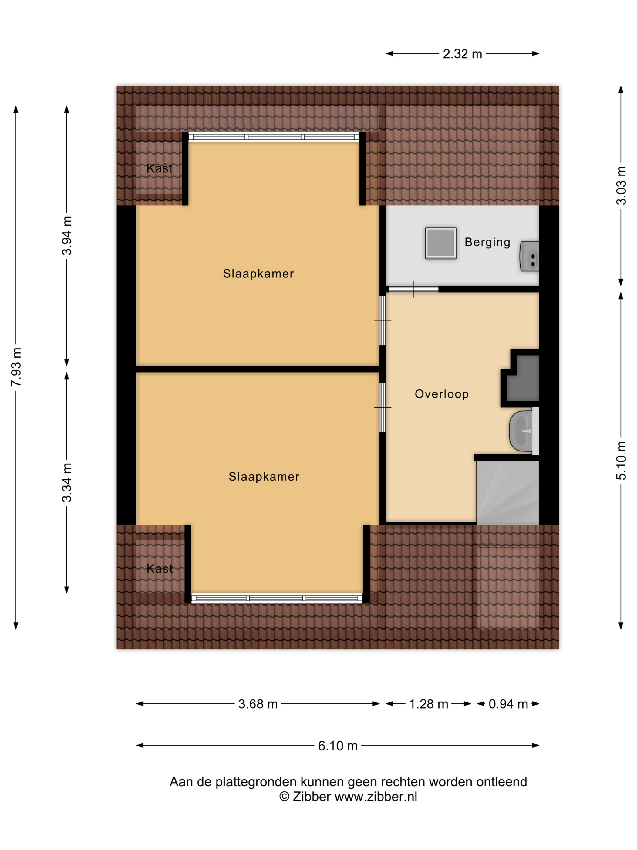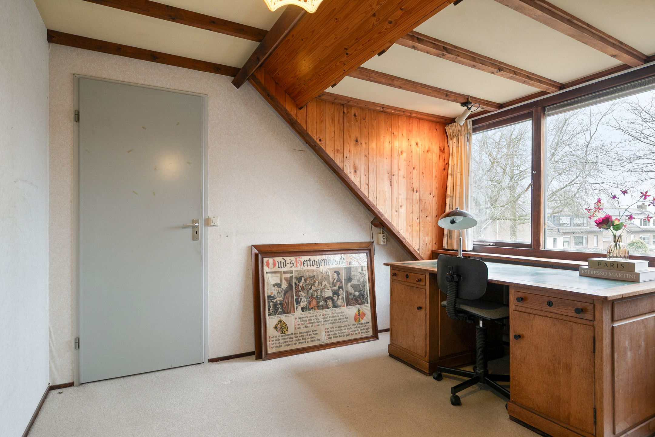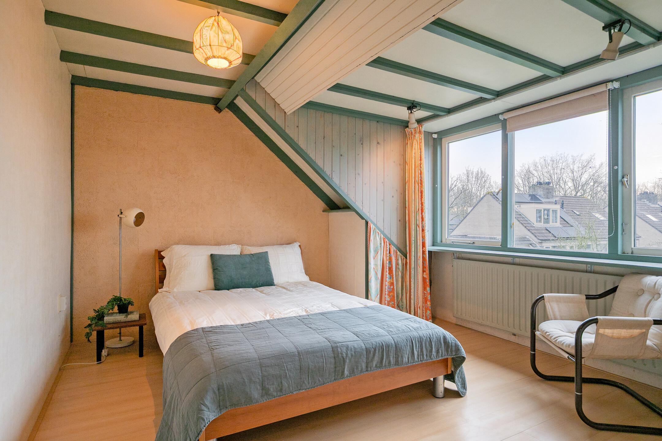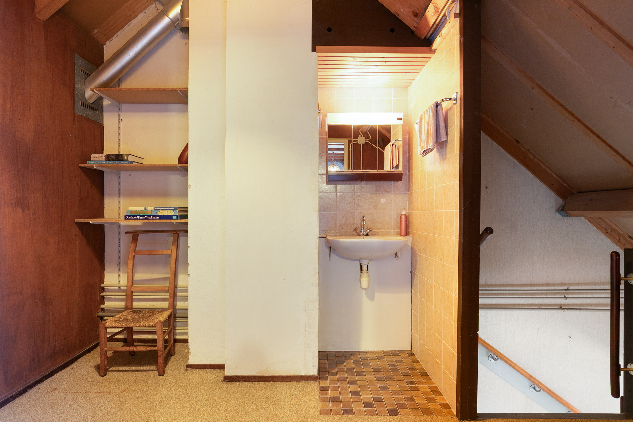 De zolderverdieping biedt nog eens twee volwaardige slaapkamers, beide voorzien van een dakkapel en radiatoren. De tuingerichte slaapkamer beschikt over laminaat; de andere kamer is momenteel ingericht als kantoor en voorzien van vloerbedekking. Er is een luik naar de bergzolder. Op de overloop bevindt zich een extra wastafel en een separate, afsluitbare ruimte voor de Cv-installatie. Tevens is vanaf de overloop een extra berging bereikbaar onder de dakschuinte.