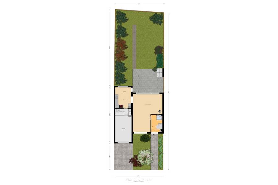 De woning beschikt over een ruime voortuin en een diepe, zonnige achtertuin op het zuiden. Deze tuin biedt volop mogelijkheden voor tuinliefhebbers en gezinnen die graag buiten leven. De aangebouwde garage en eigen oprit zorgen voor extra comfort en praktische bergruimte.