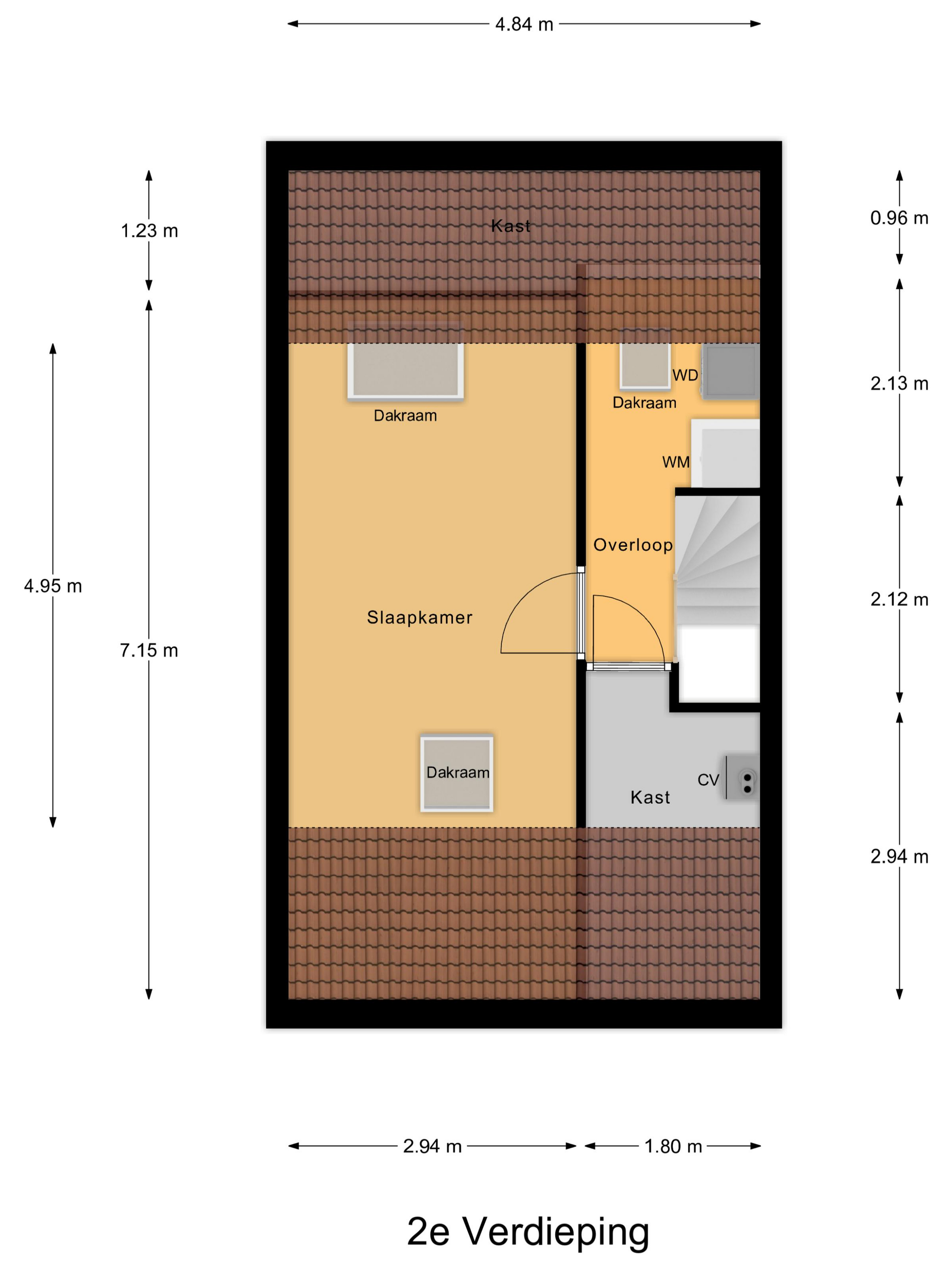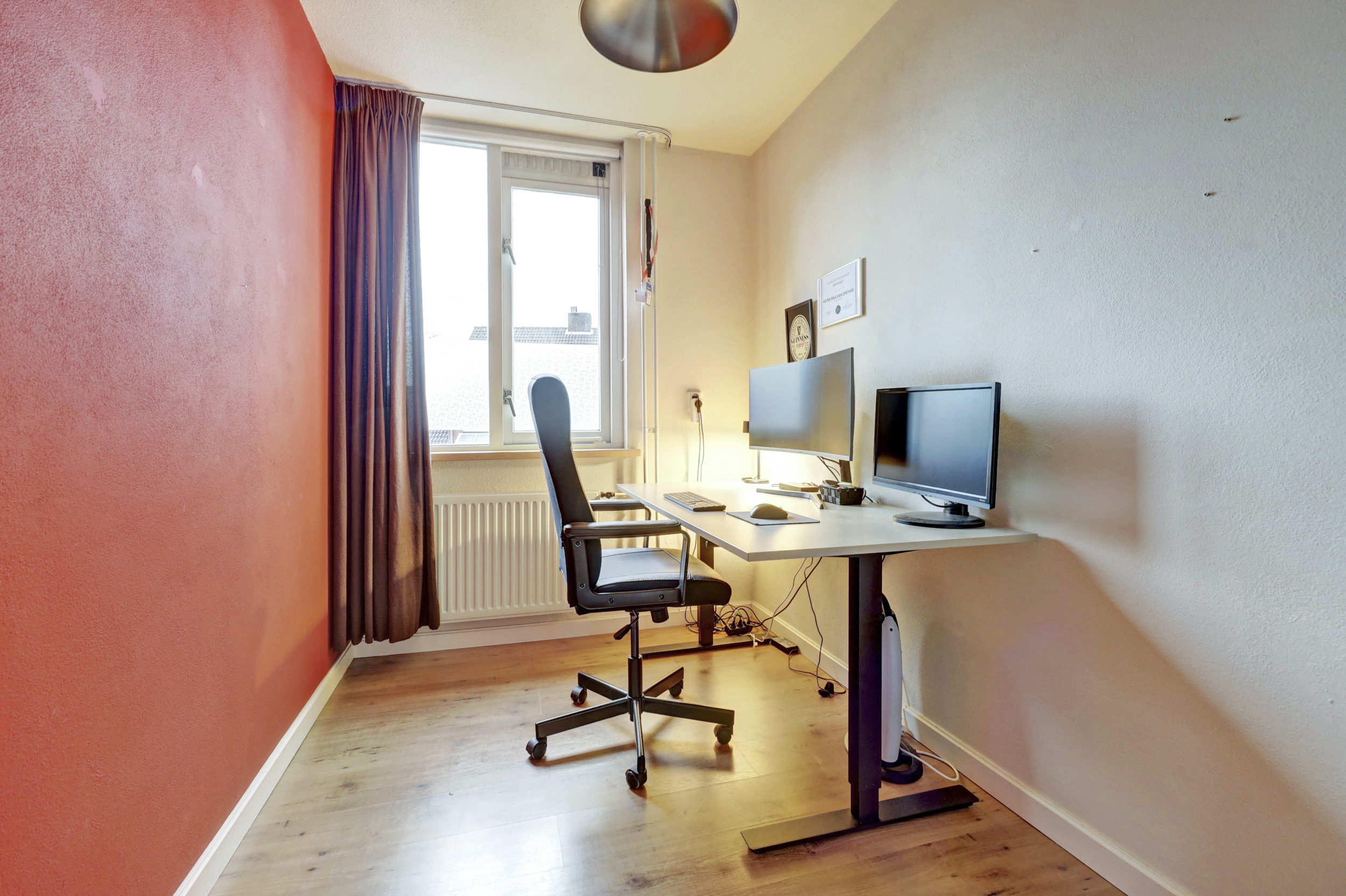 De tweede verdieping is bereikbaar via een vaste trap. Op de voorzolder vinden we de aansluitingen voor het witgoed. Daarnaast bevindt zich hier een vierde slaapkamer. Dankzij het dakraam geniet deze kamer van prettig daglicht. Deze ruimte is ideaal als extra slaapkamer, werk- of logeerkamer. Tot slot is er een aparte stookruimte met de opstelplaats van de cv-ketel.