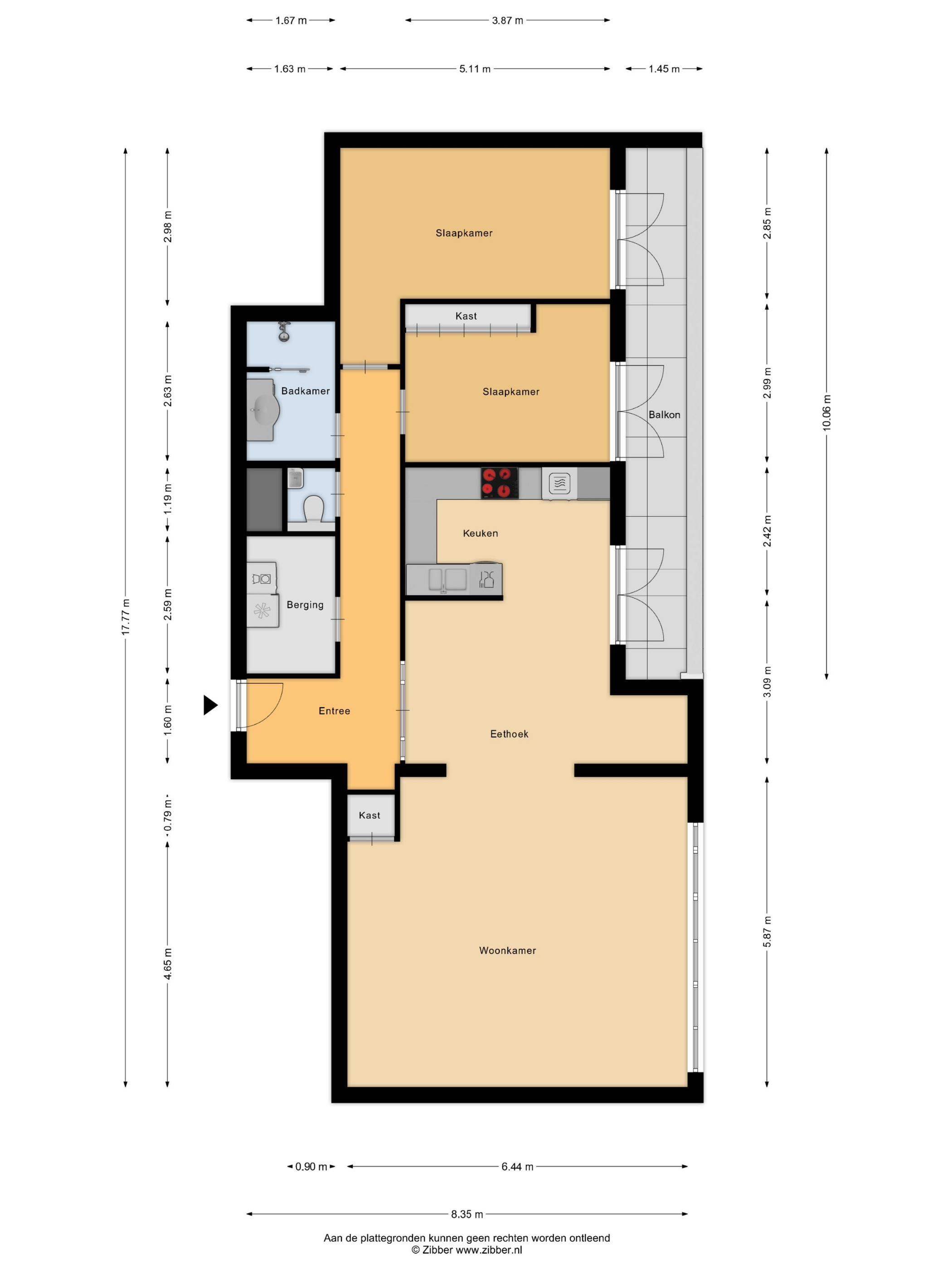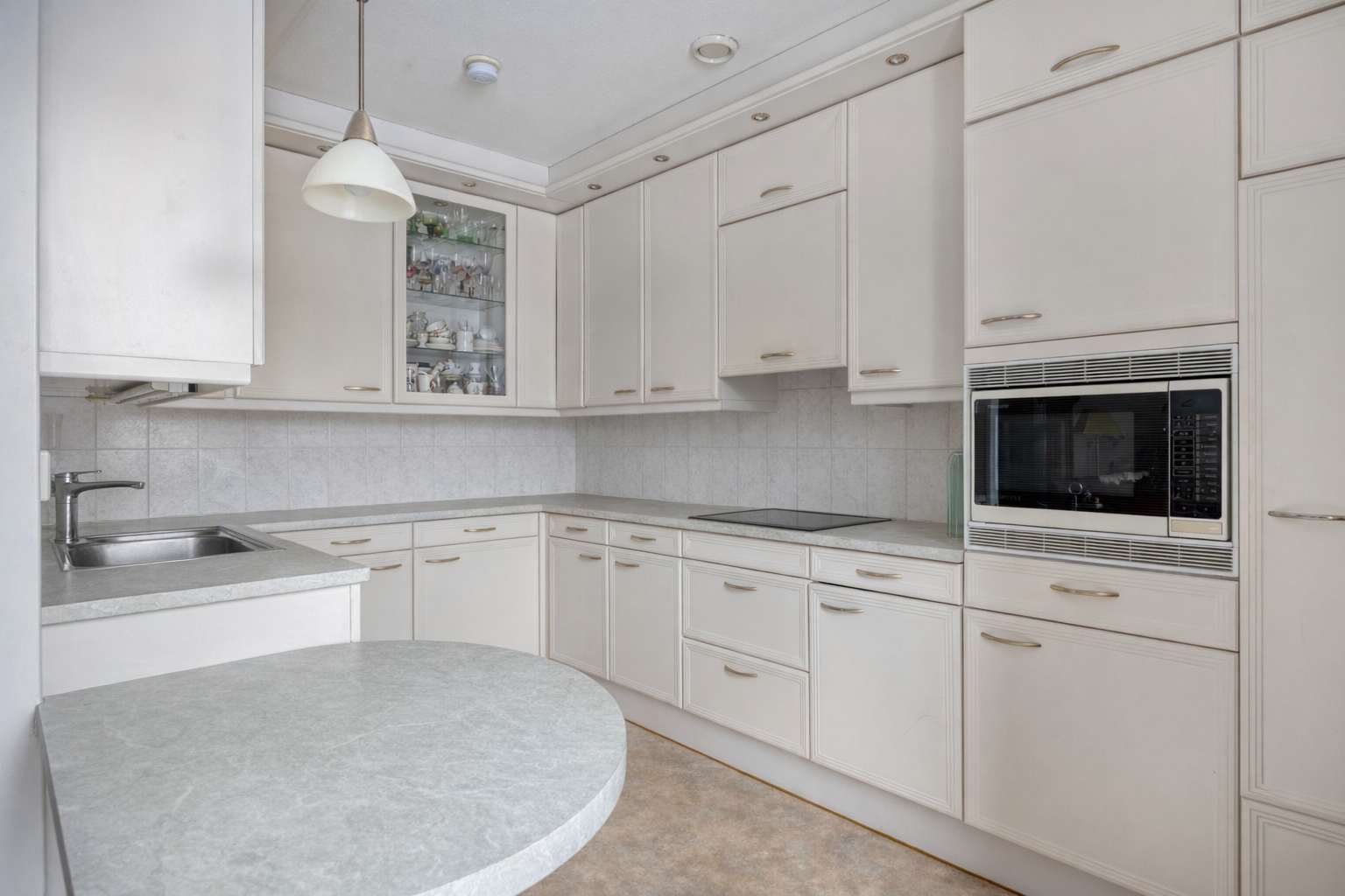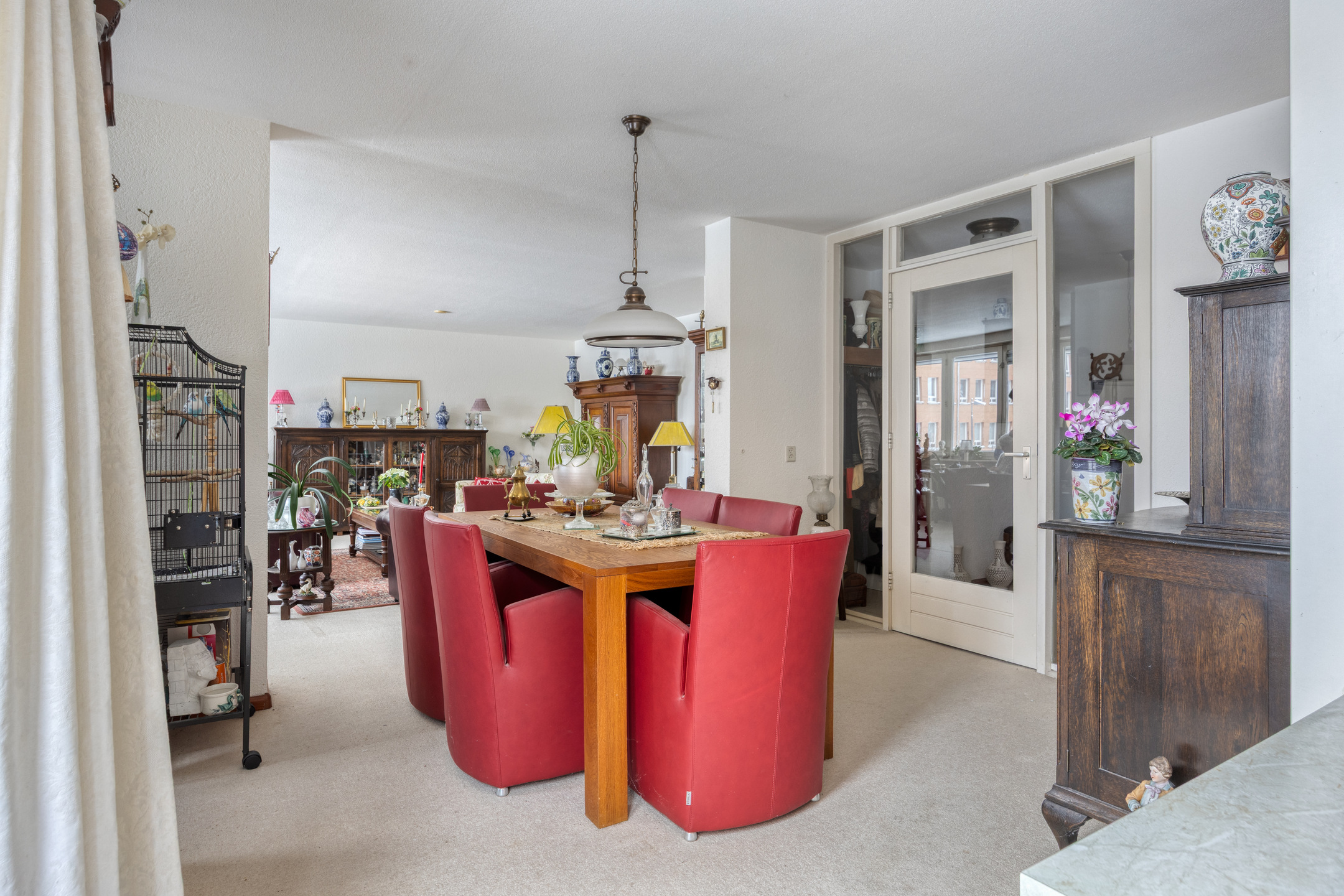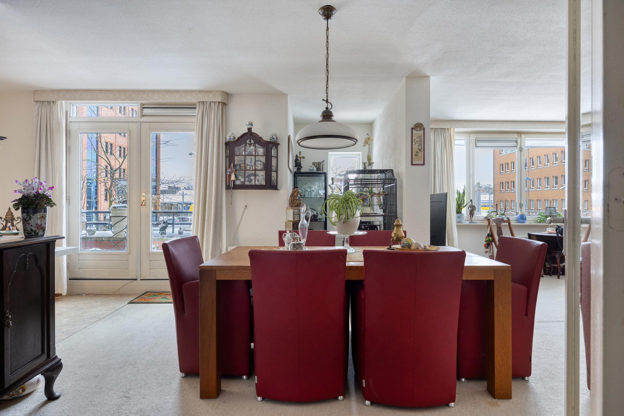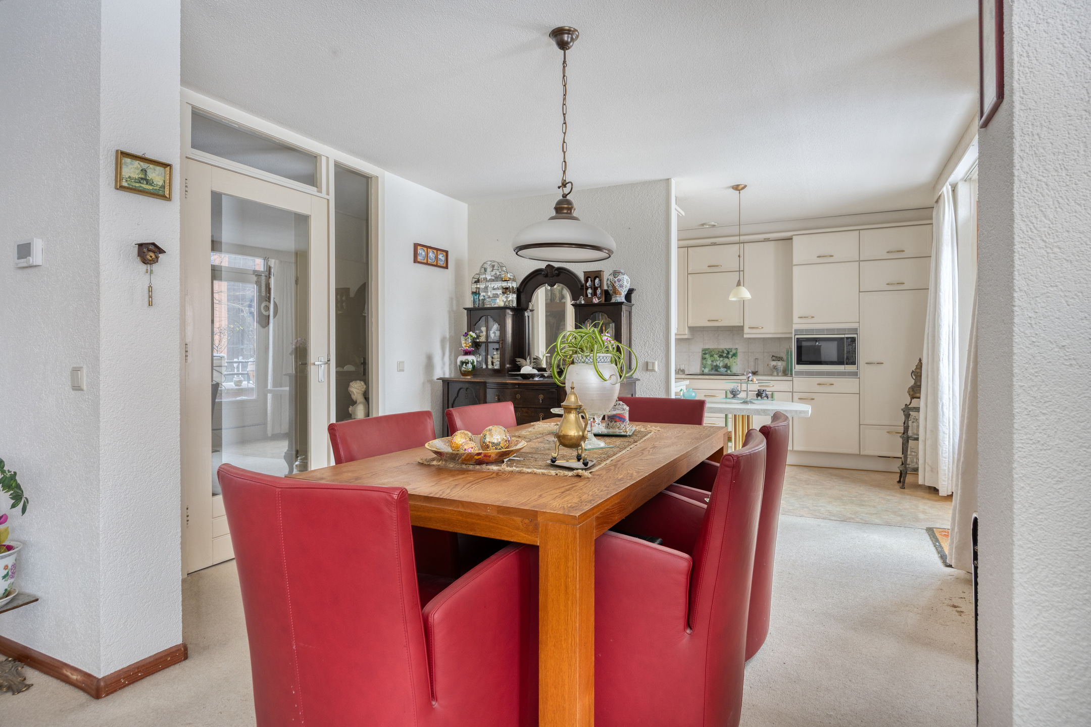 Via de voordeur betreedt u de ruime entree/hal, die toegang biedt tot alle vertrekken van het appartement. De royale woonkamer is een aangename leefruimte met grote raampartijen en een prettige indeling. Dankzij de open verbinding met de eetkamer ontstaat er een ruimtelijk geheel met mooie zichtlijnen richting de keuken. De halfopen keuken is praktisch en verzorgd uitgevoerd en geplaatst in een functionele opstelling. De keuken beschikt over diverse inbouwapparatuur en biedt voldoende werk- en bergruimte. Dankzij de ligging aan de eetkamer blijft u tijdens het koken altijd in contact met uw gezelschap.