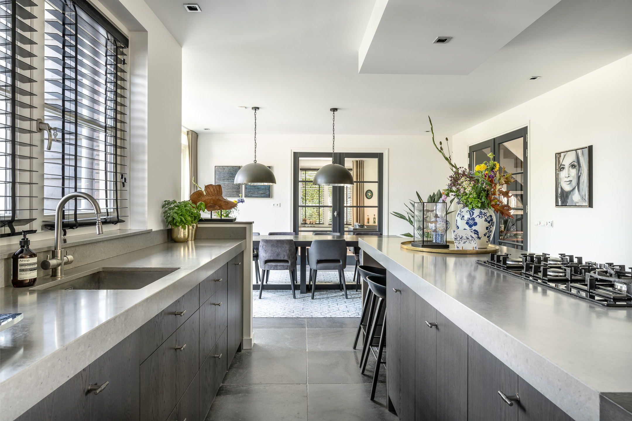 - Leefkeuken met natuurstenen werkbladen, kookeiland, bar, hoogwaardige inbouwapparatuur, Quooker en koffiehoek;