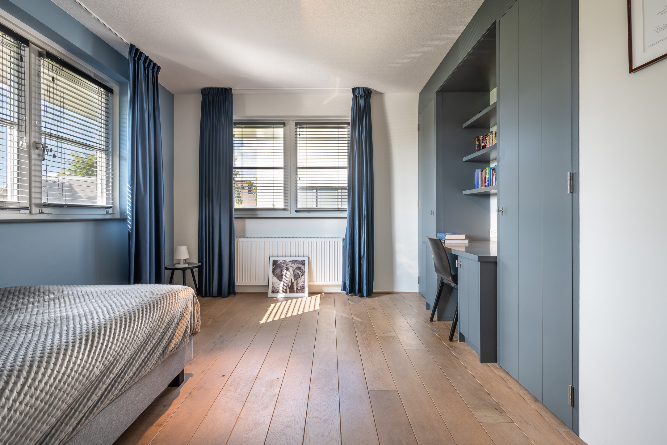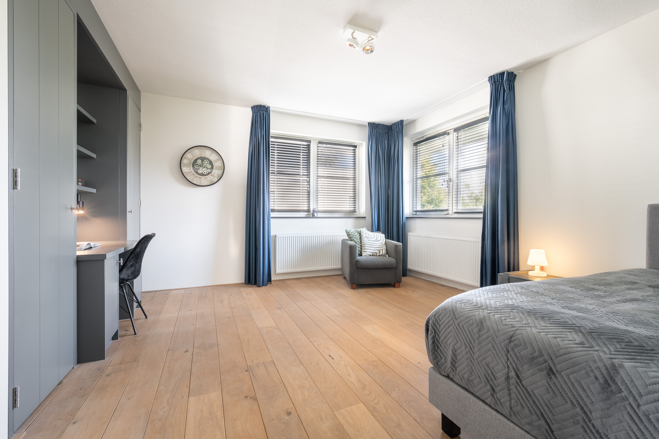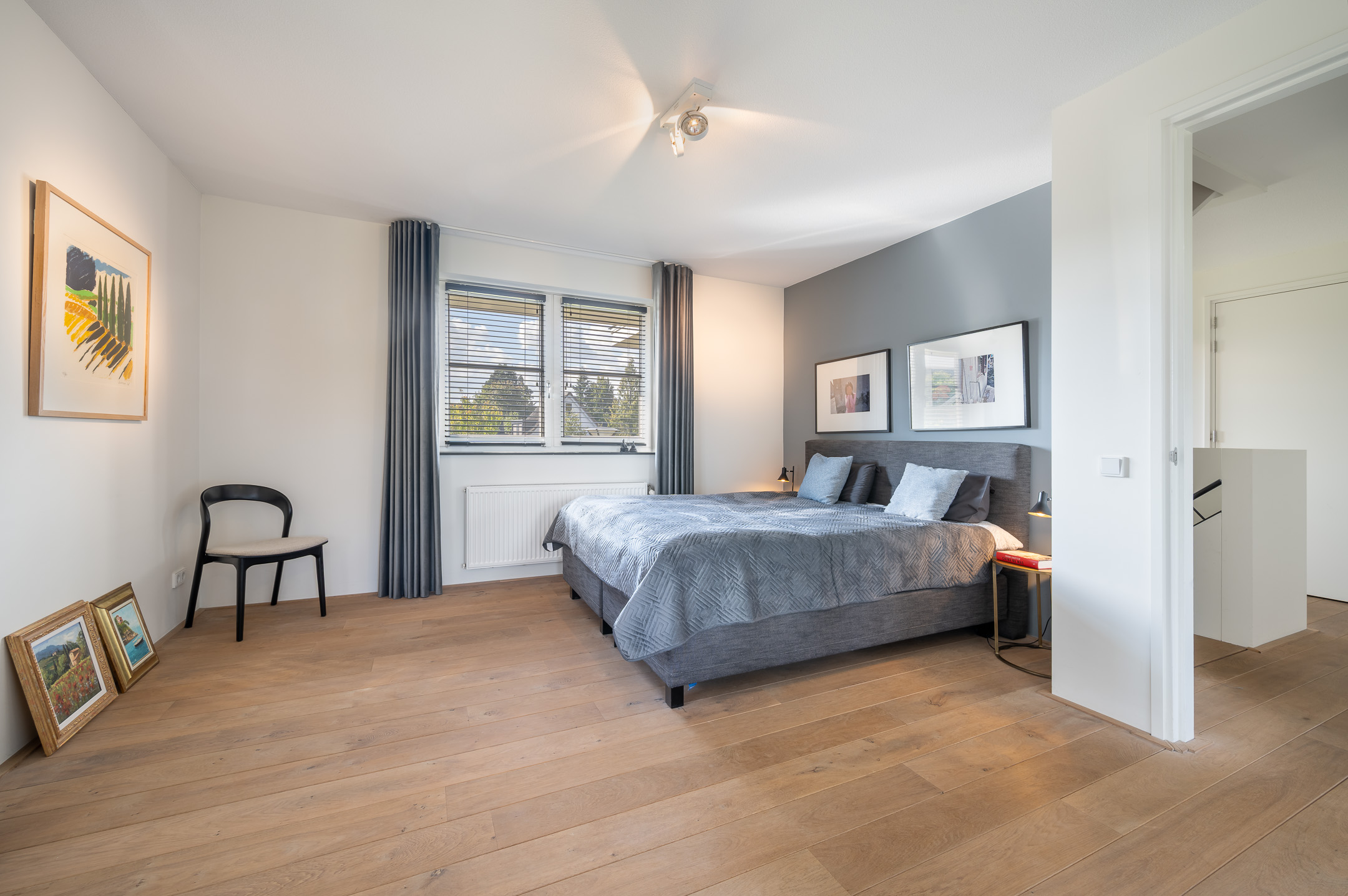 - Eerste verdieping: hoofdslaapkamer met grote raampartijen en aansluitende kledingkamer, luxe badkamer met ligbad, inloopdouche en dubbele wastafel, twee zeer ruime slaapkamers, aparte toiletruimte.