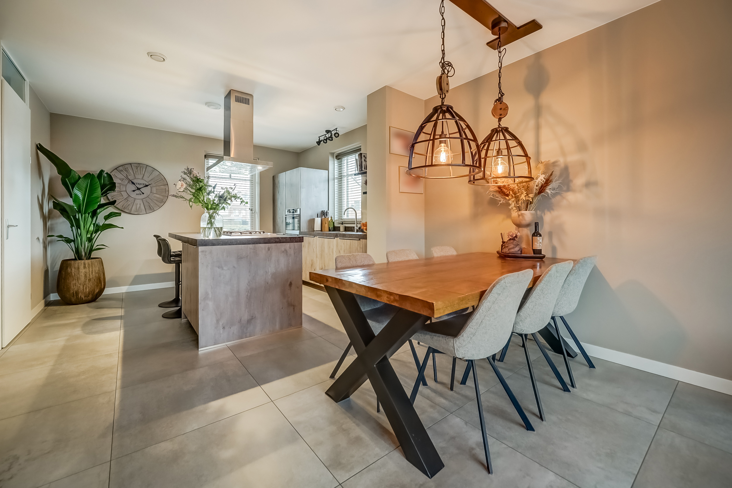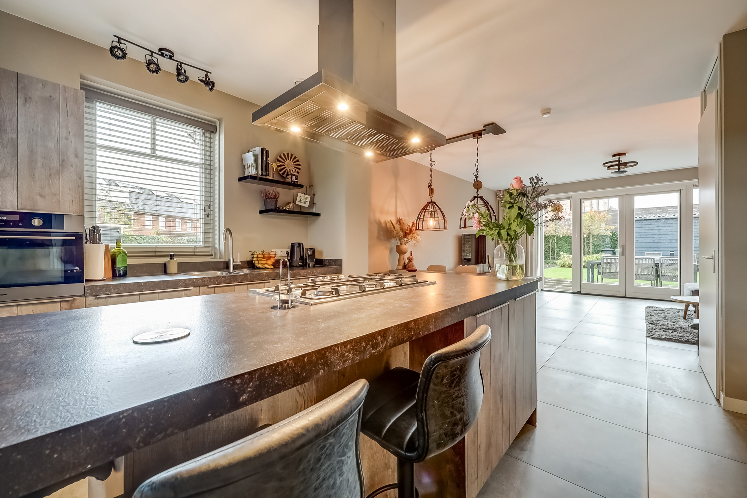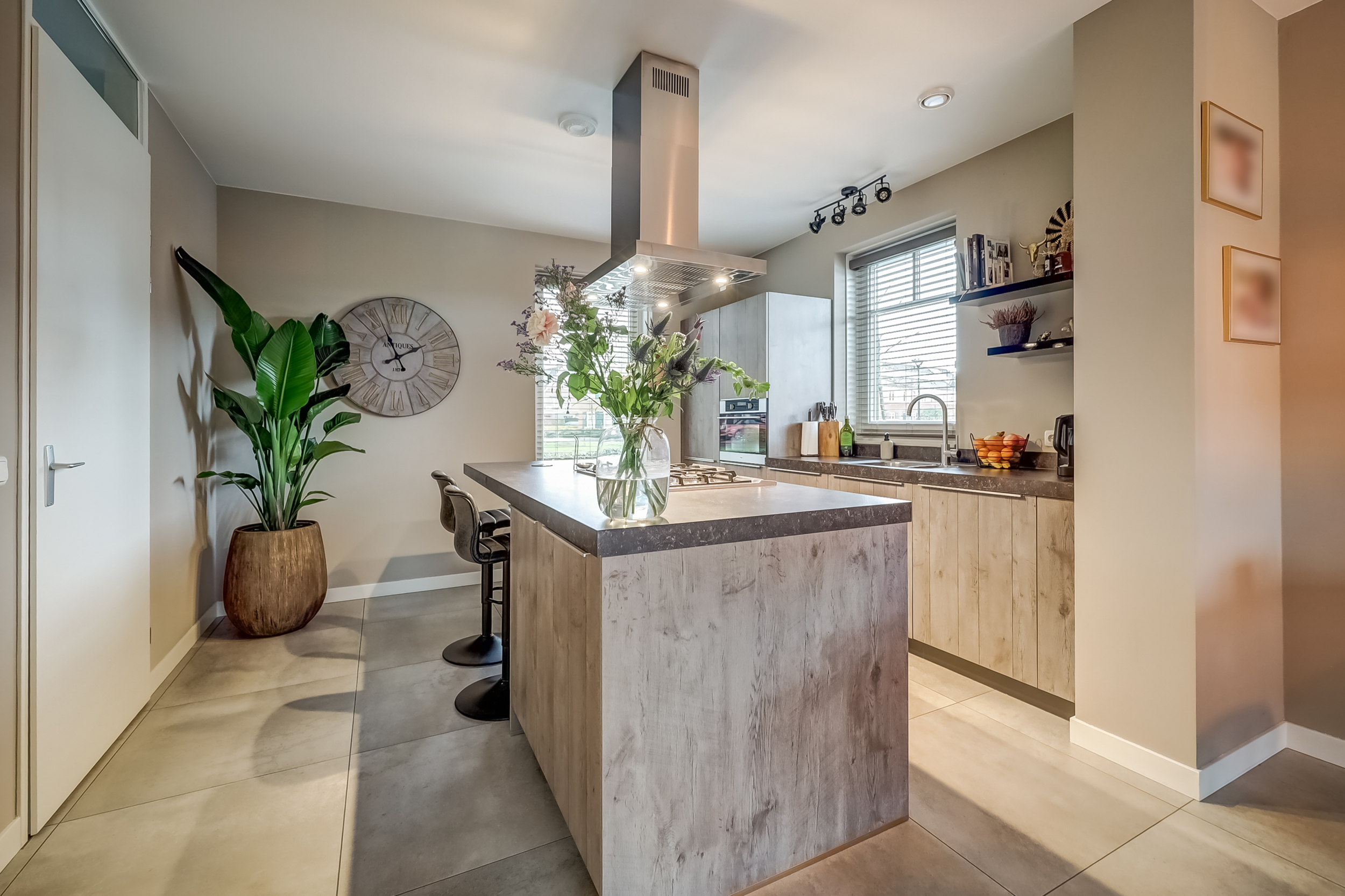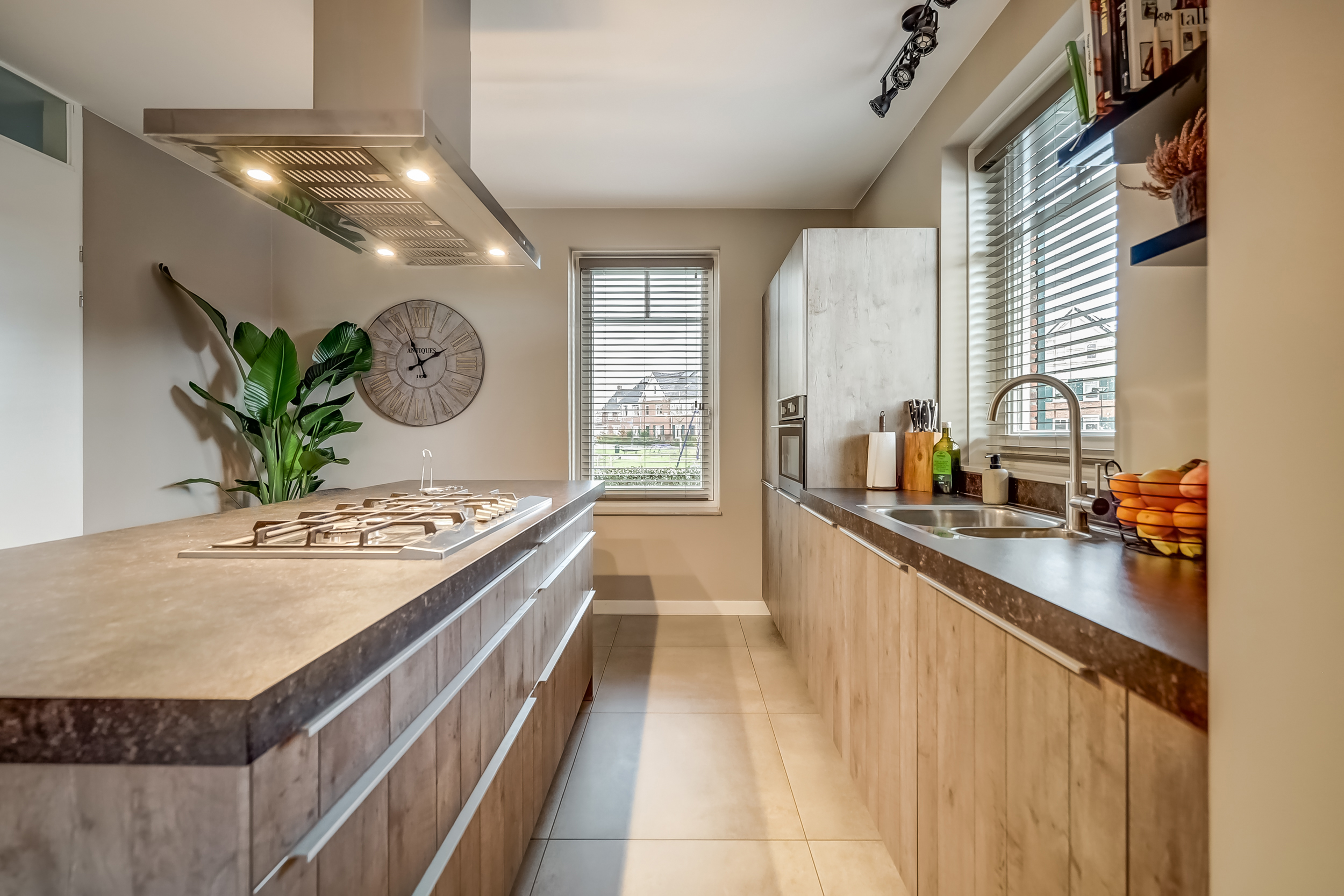 Betreed de woning via de voordeur en kom binnen in de entreehal met toegang tot de meterkast, het toilet en de open keuken. De keuken is heerlijk ruim opgezet en voorzien van een fraai kookeiland. Daarnaast beschikt de keuken over diverse inbouwapparatuur, waaronder een vaatwasser, koelkast en combi-oven. Via de keuken loop je rechtstreeks de sfeervolle woonkamer in. Hier is meer dan genoeg plaats voor een gezellige zithoek en een royale eettafel. Dankzij de grote pui in de achtergevel komt er bijzonder veel daglicht de woonkamer binnen. De dubbele tuindeuren creëren een directe verbinding met de heerlijke achtertuin. Tot slot vind je in de woonkamer een praktische trapkast en de toegang tot de trapopgang.