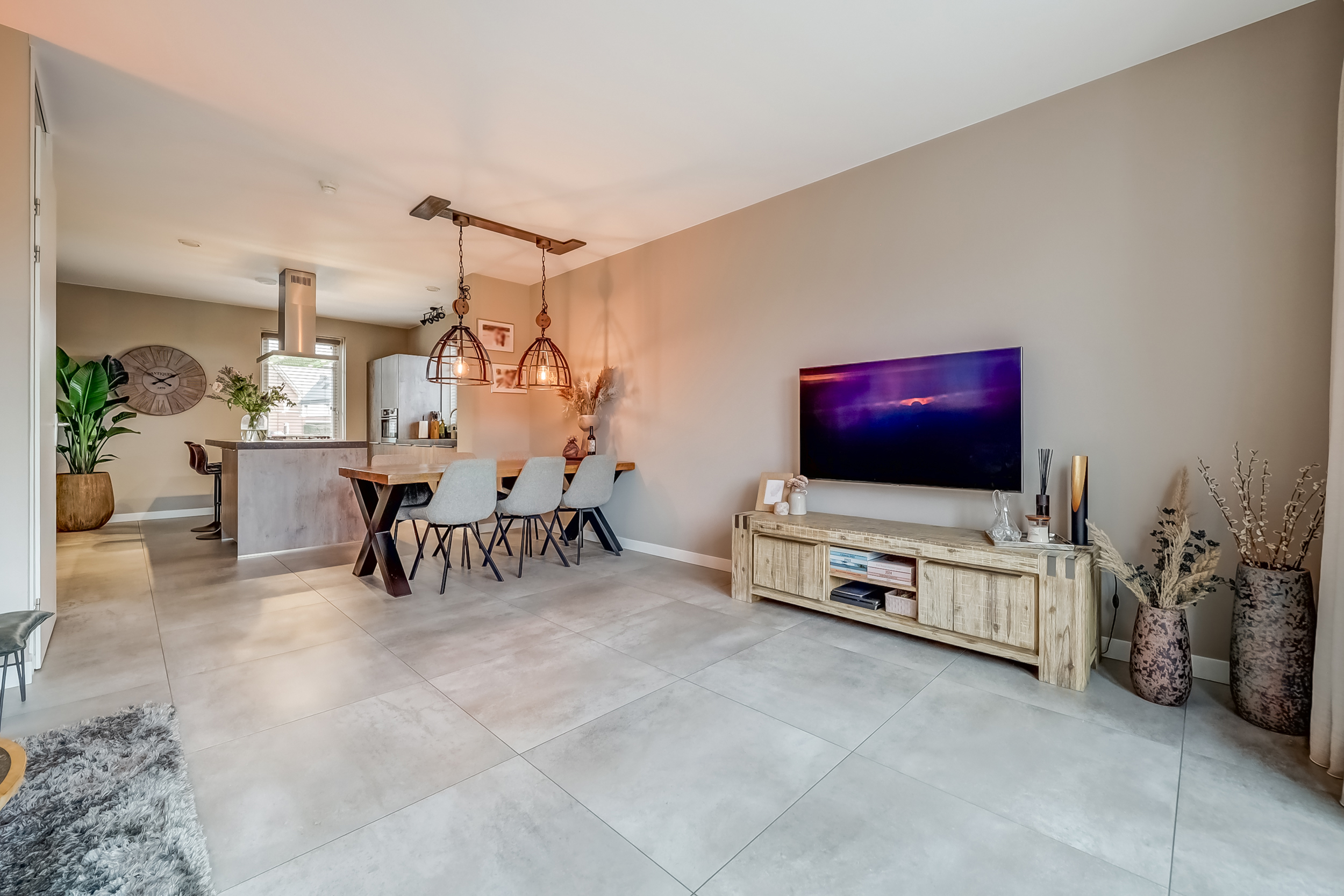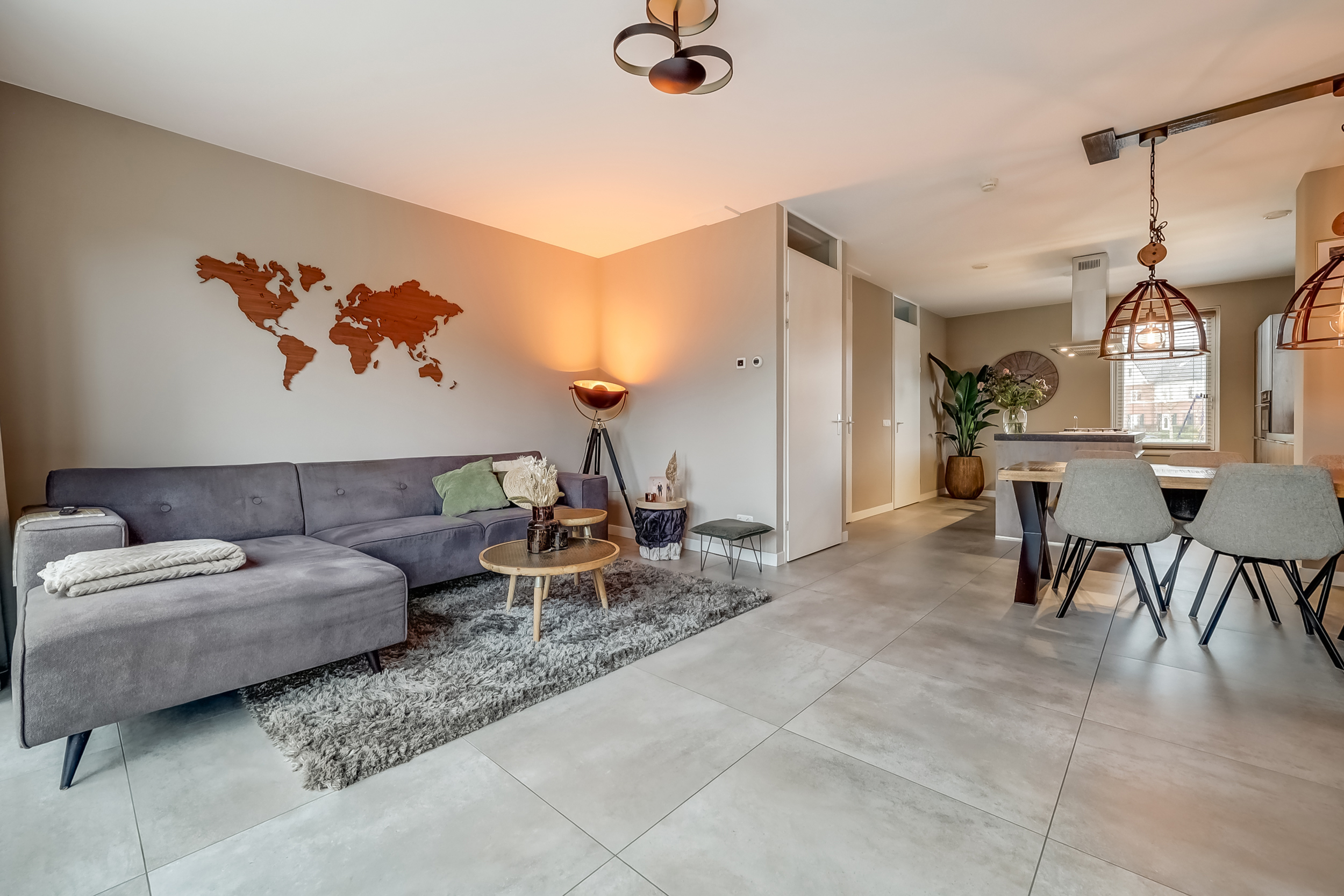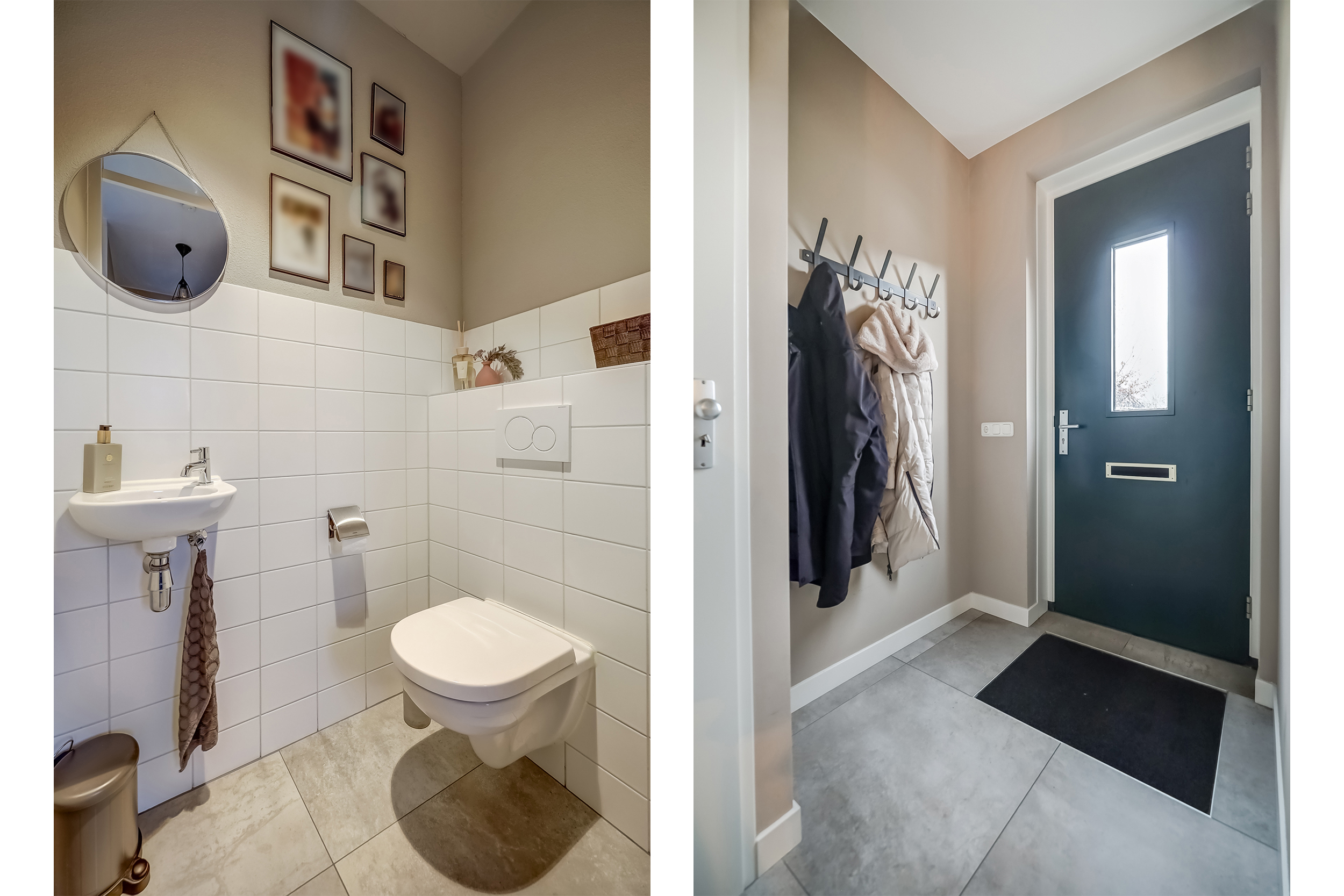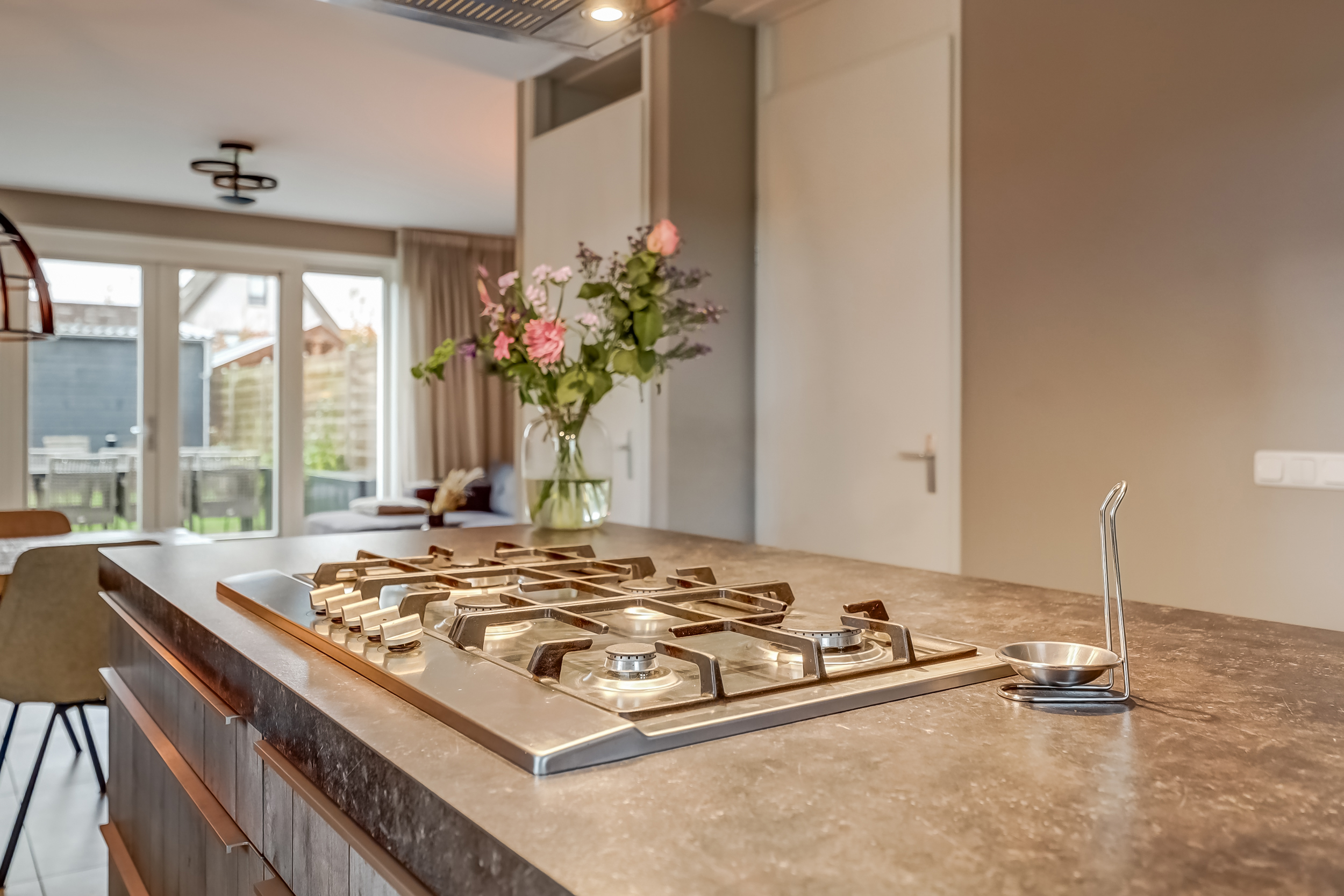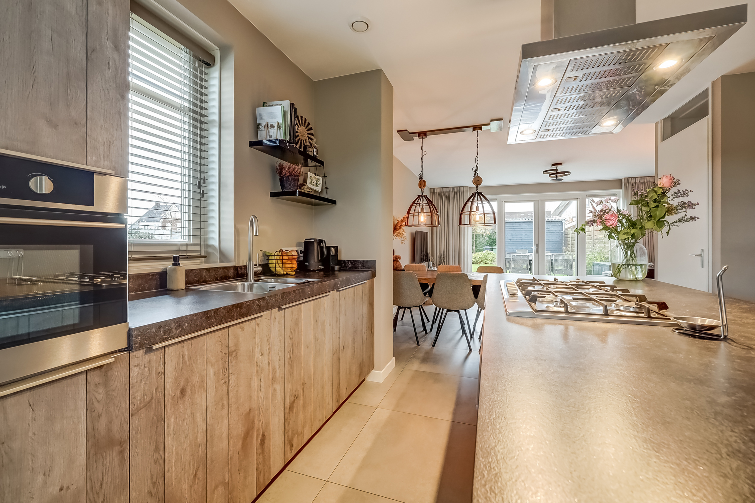 Betreed de woning via de voordeur en kom binnen in de entreehal met toegang tot de meterkast, het toilet en de open keuken. De keuken is heerlijk ruim opgezet en voorzien van een fraai kookeiland. Daarnaast beschikt de keuken over diverse inbouwapparatuur, waaronder een vaatwasser, koelkast en combi-oven. Via de keuken loop je rechtstreeks de sfeervolle woonkamer in. Hier is meer dan genoeg plaats voor een gezellige zithoek en een royale eettafel. Dankzij de grote pui in de achtergevel komt er bijzonder veel daglicht de woonkamer binnen. De dubbele tuindeuren creëren een directe verbinding met de heerlijke achtertuin. Tot slot vind je in de woonkamer een praktische trapkast en de toegang tot de trapopgang.