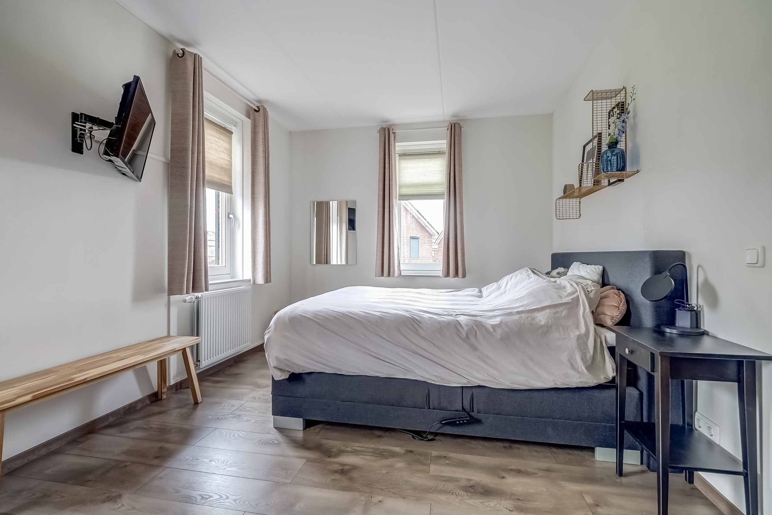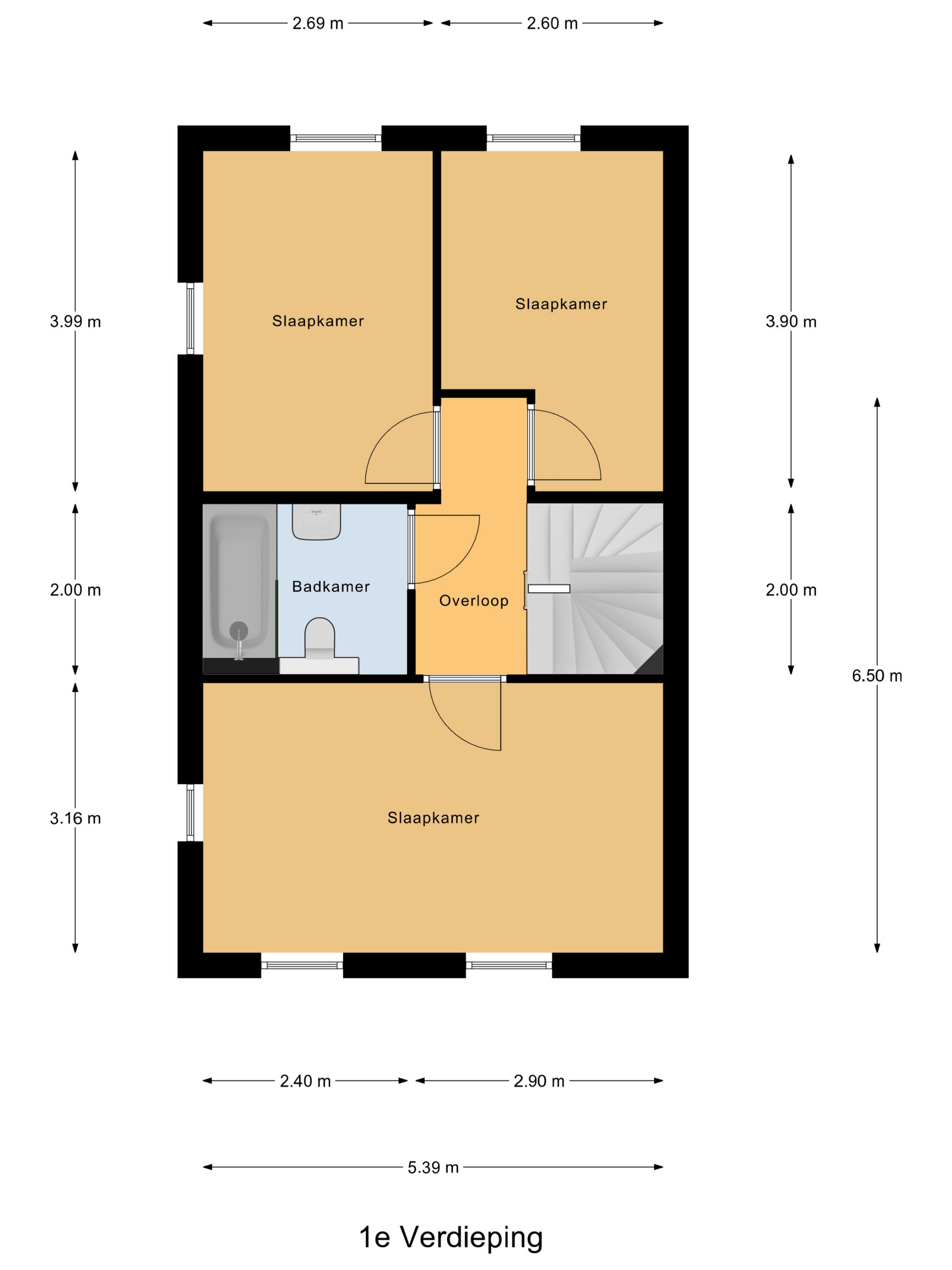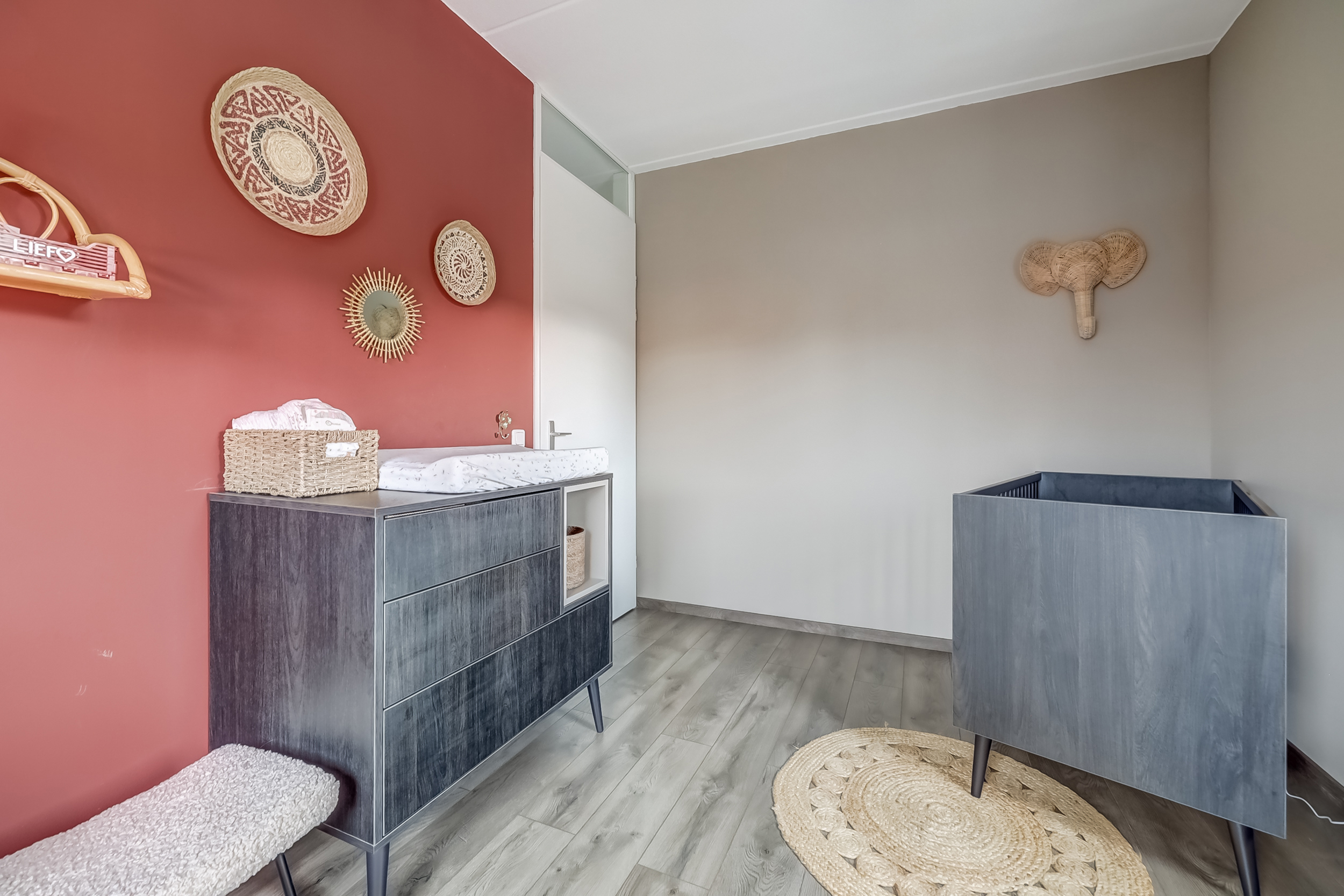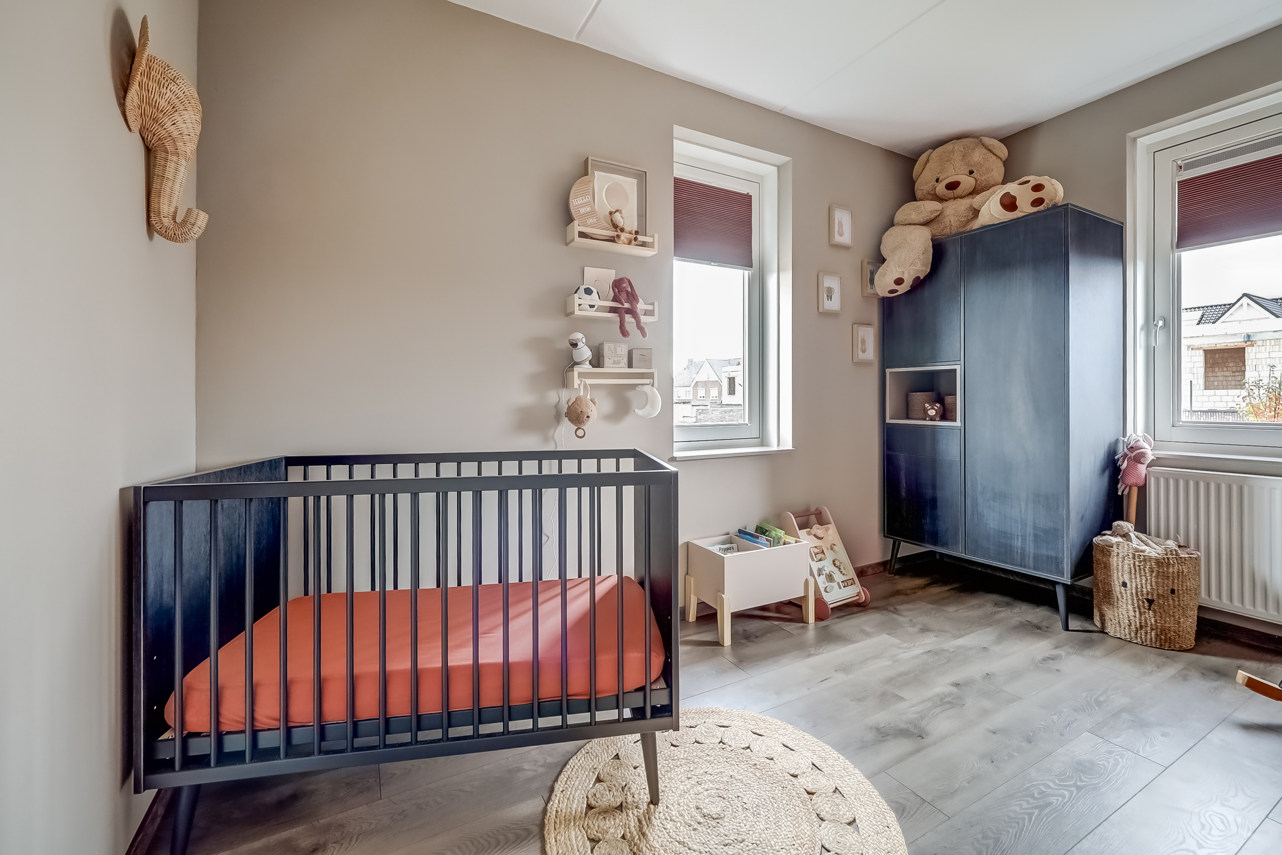 De overloop biedt toegang tot drie slaapkamers en de badkamer. De hoofdslaapkamer aan de voorzijde is royaal en zeer geschikt voor een tweepersoonsbed en een ruime kledingkast. De andere twee slaapkamers zijn ideaal te gebruiken als kinderkamer, werkkamer of hobbyruimte. In beide kamers past met gemak een groot bed én een bureau. De badkamer is praktisch ingericht en voorzien van een toilet, een bad/douchecombinatie en een wastafel. Hiermee biedt deze verdieping alles wat een gezin nodig heeft.