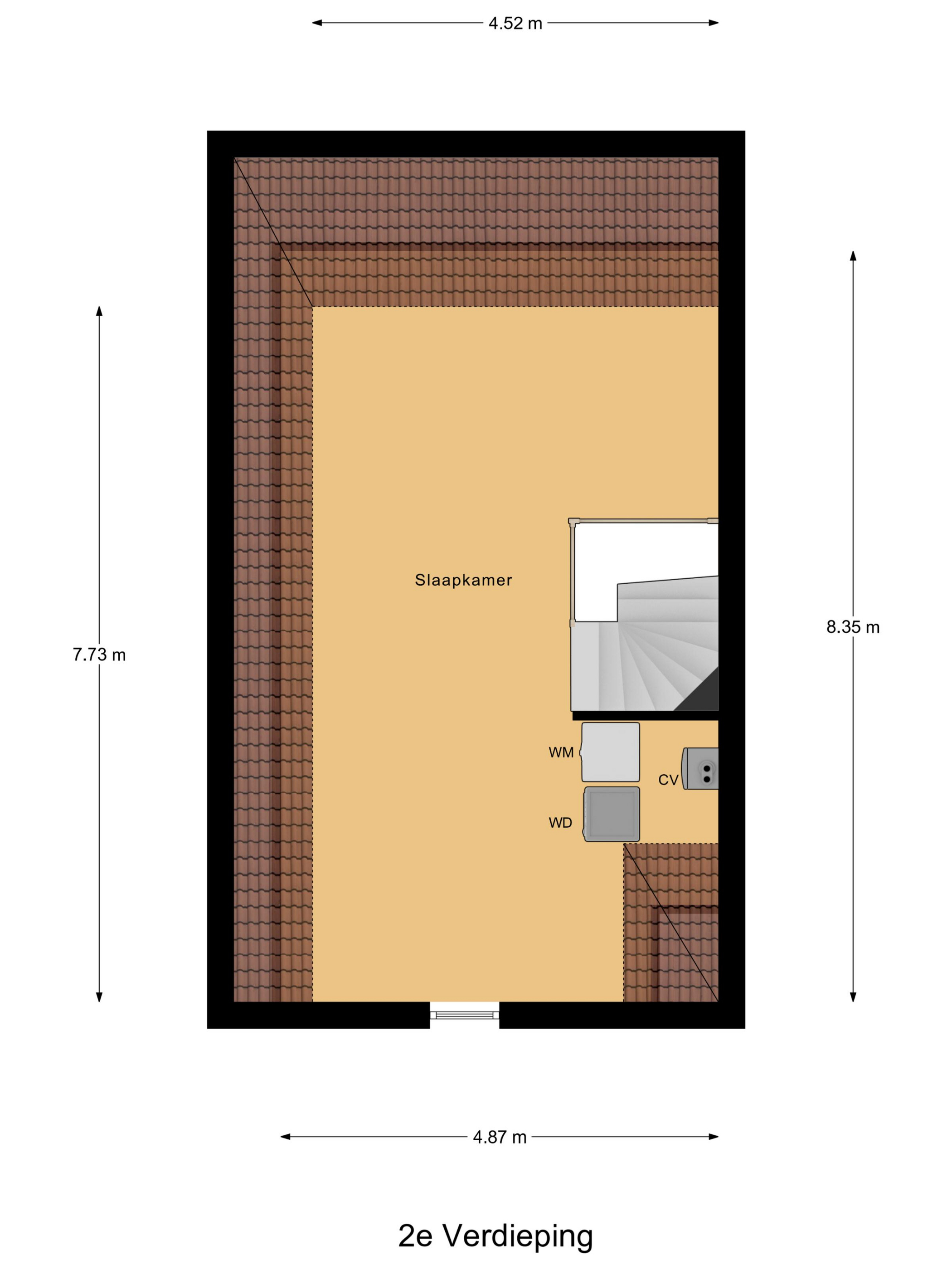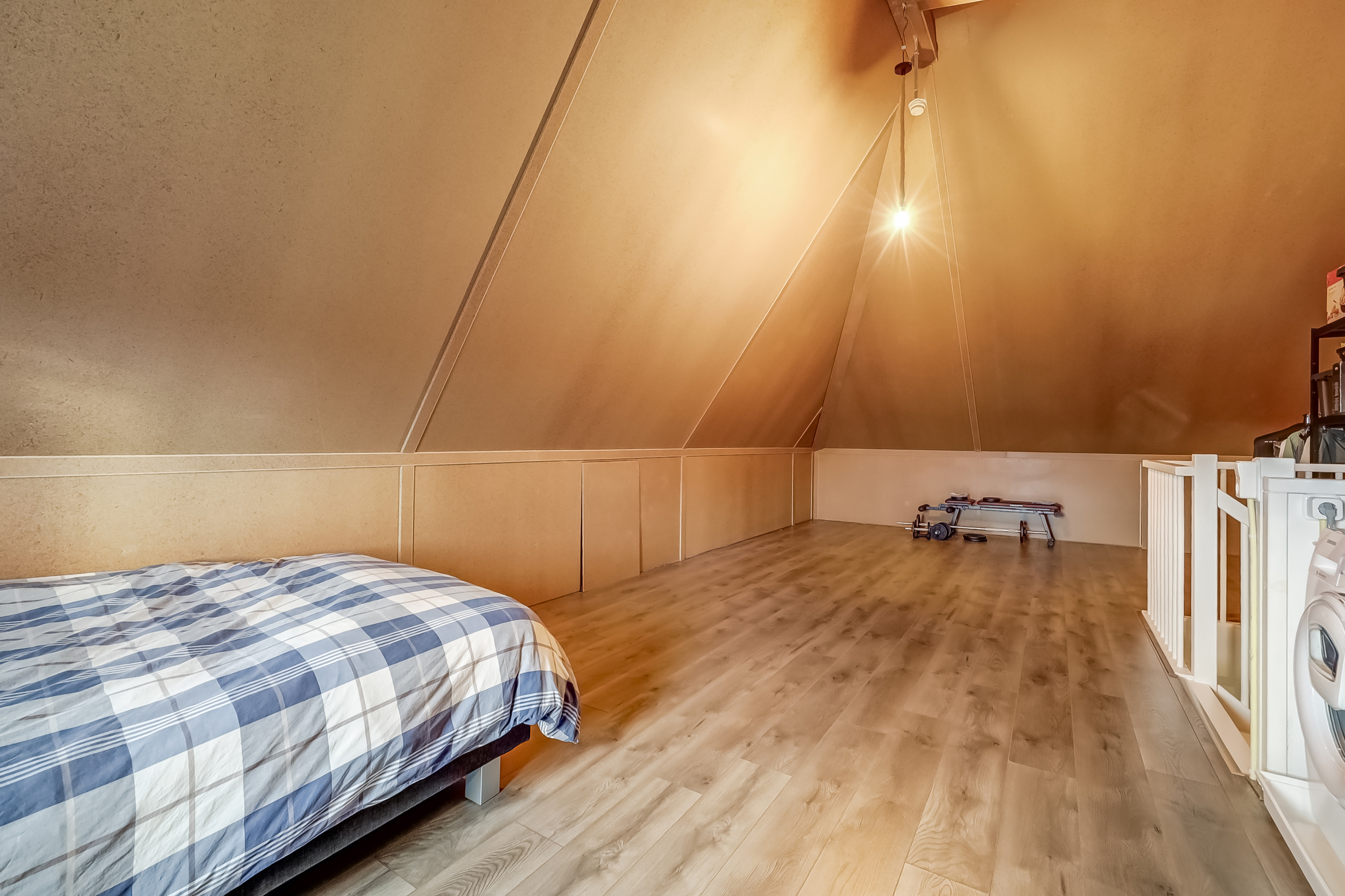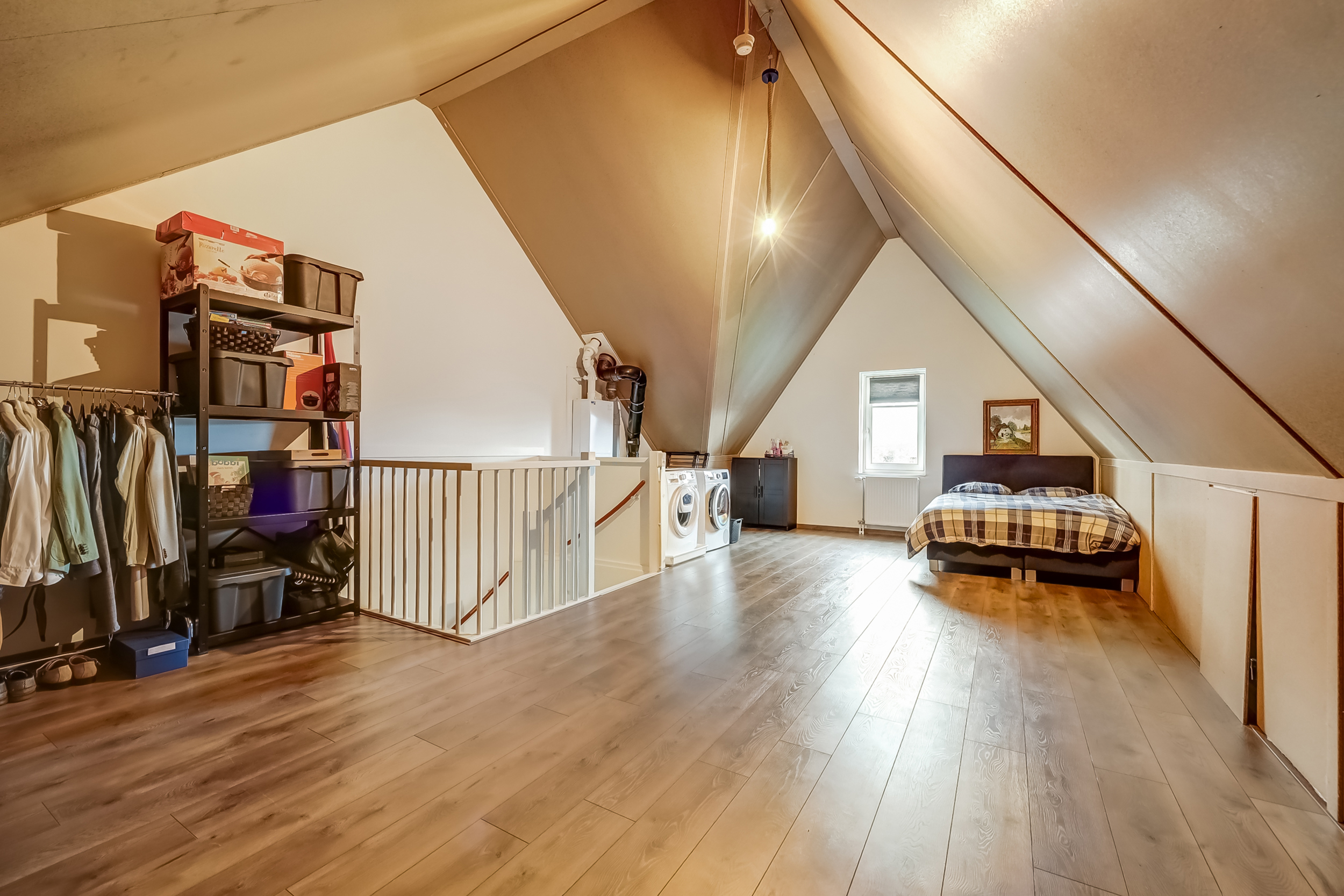 De tweede verdieping is te bereiken via een vaste trap. Hier kom je in een grote open ruimte die perfect is voor iedereen die extra leefruimte zoekt. Op deze verdieping bevinden zich tevens de cv-ketel en de aansluitingen voor de wasmachine en droger. Dankzij de royale oppervlakte biedt deze verdieping talloze mogelijkheden om één grote slaapkamer te realiseren. Ook het creëren van twee aparte kamers behoort tot de opties. De flexibiliteit van deze etage is een groot pluspunt.