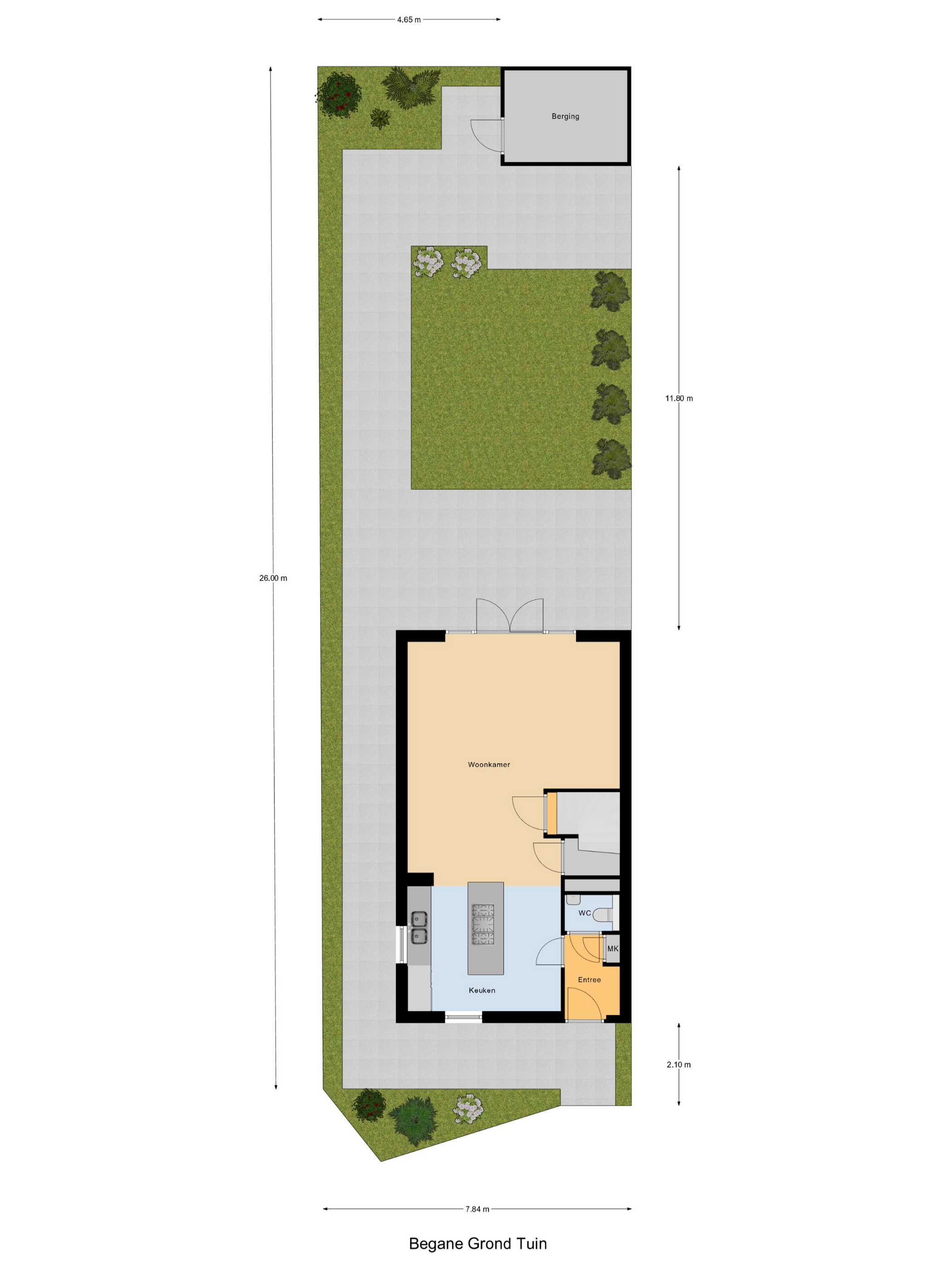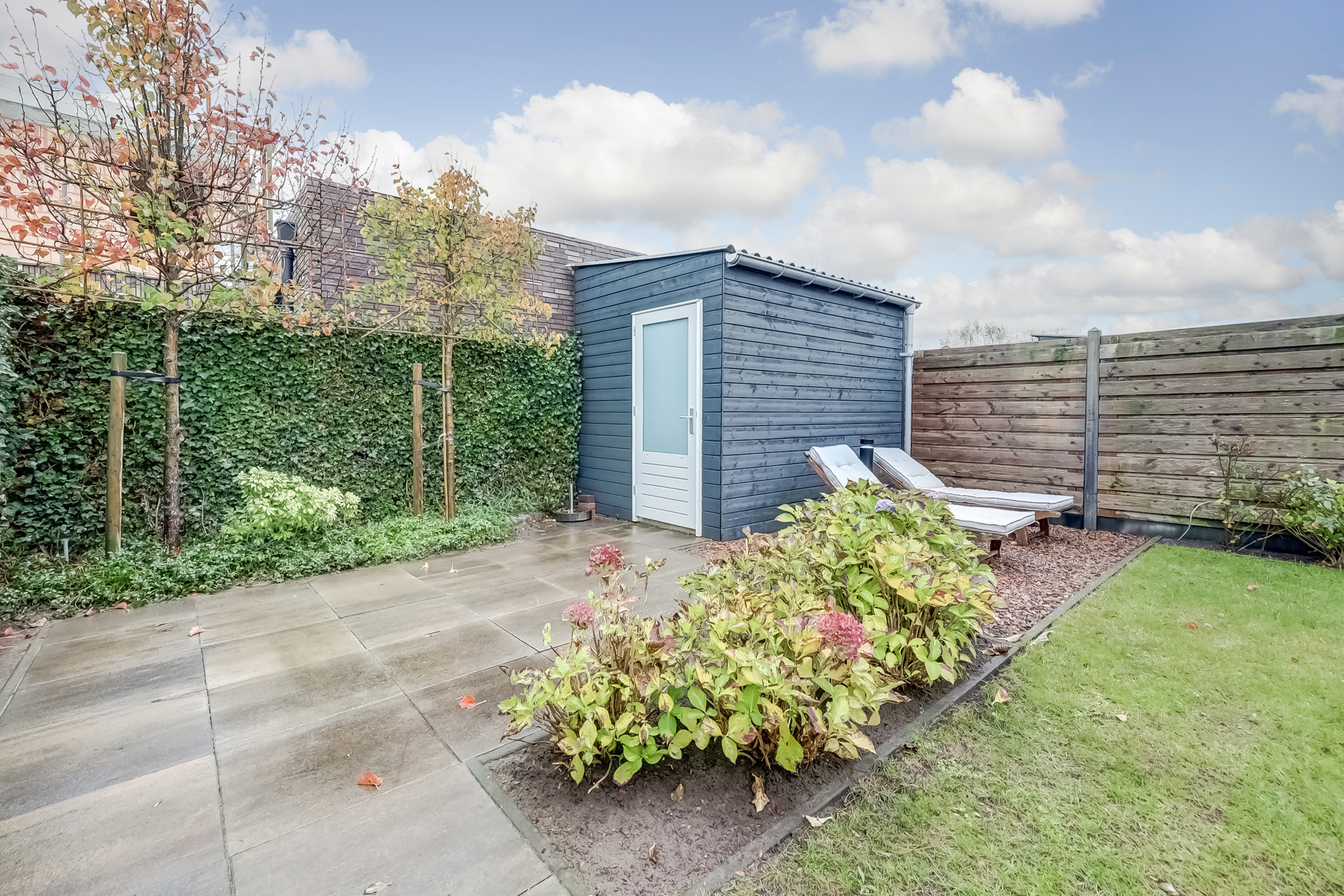 De achtertuin is heerlijk ruim en gunstig gelegen op het oosten. Met een diepte van bijna 14 meter is er meer dan genoeg ruimte voor een comfortabele zithoek. De tuin is geheel naar eigen smaak in te delen, of je nu graag tuiniert of juist een fijne speelplek voor de kinderen wilt creëren. Achter in de tuin staat een praktische berging, ideaal voor fietsen en tuingereedschap. Via de zijkant van het huis beschik je bovendien over een handige achterom. Dit maakt de tuin zowel praktisch als veelzijdig.