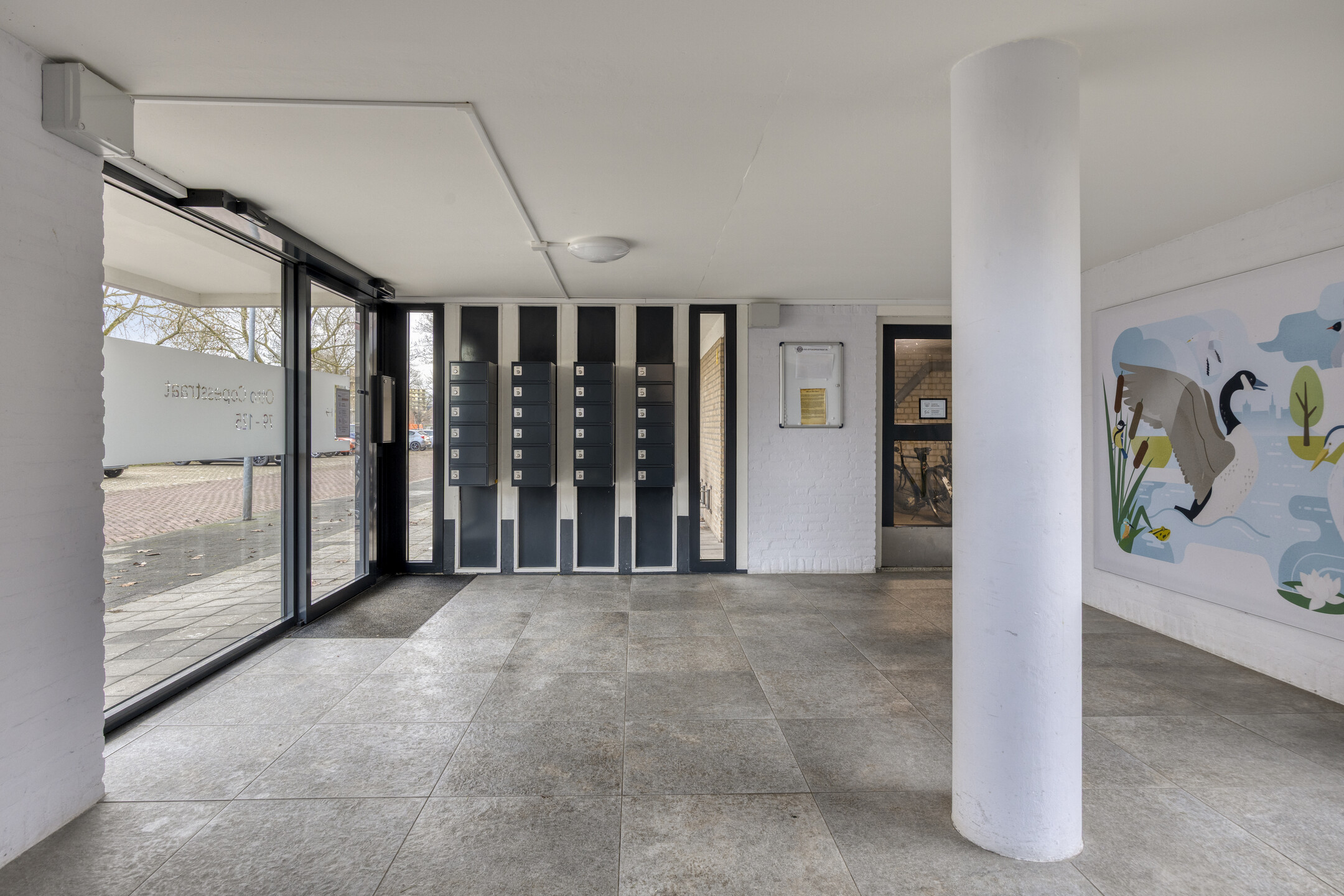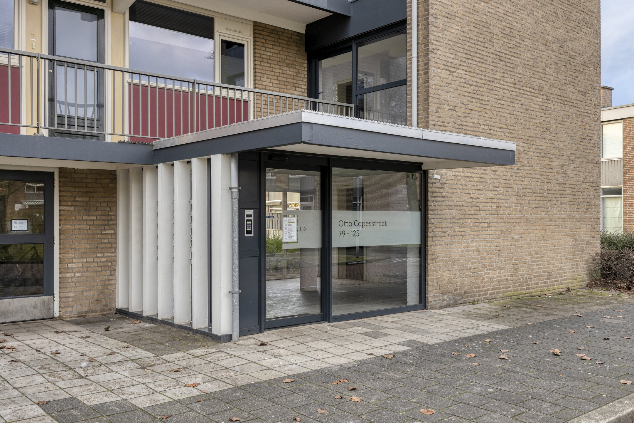 Aan de straatzijde bevindt zich de gezamenlijke entree van het appartementencomplex. De entree is voorzien van postbussen en een bellentableau met videofooninstallatie. Vanuit hier heeft u toegang tot het trappenhuis en de lift, waarmee de verdiepingen eenvoudig bereikbaar zijn.