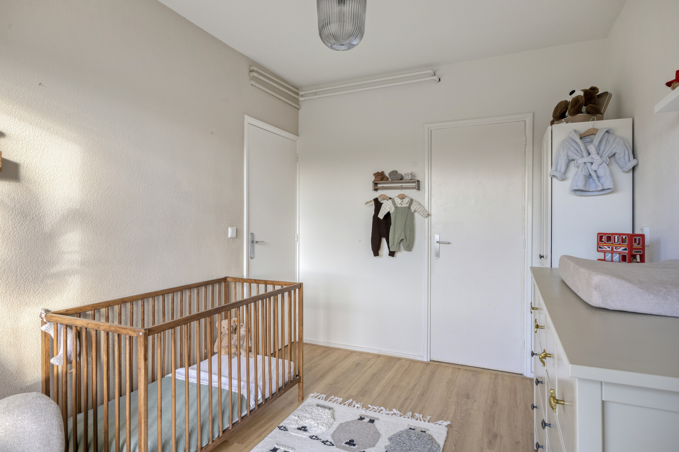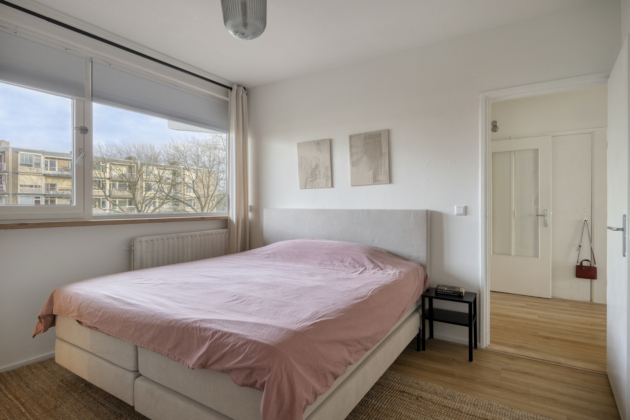 Het appartement beschikt over twee slaapkamers, beide van goed formaat en flexibel in te richten als slaap-, werk- of logeerkamer. Eén van de slaapkamers biedt eveneens directe toegang tot het balkon, wat zorgt voor een prettige verbinding tussen binnen en buiten. De separate toiletruimte is vanuit de hal bereikbaar.
