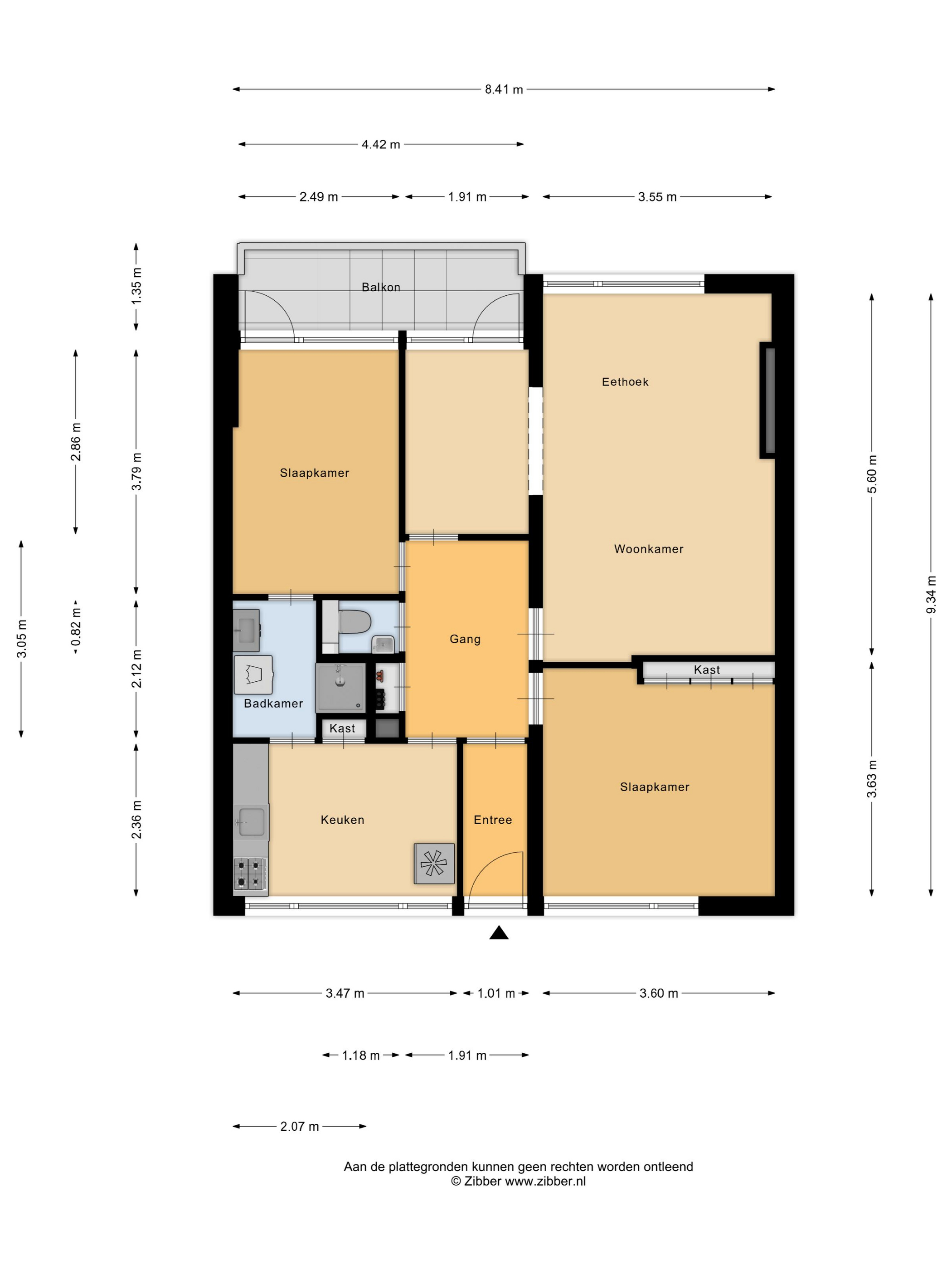 Via de voordeur betreedt u de entree/hal, die toegang biedt tot vrijwel alle vertrekken van het appartement. Vanuit de hal bereikt u de woonkamer, keuken, twee slaapkamers, de badkamer en de separate toiletruimte.