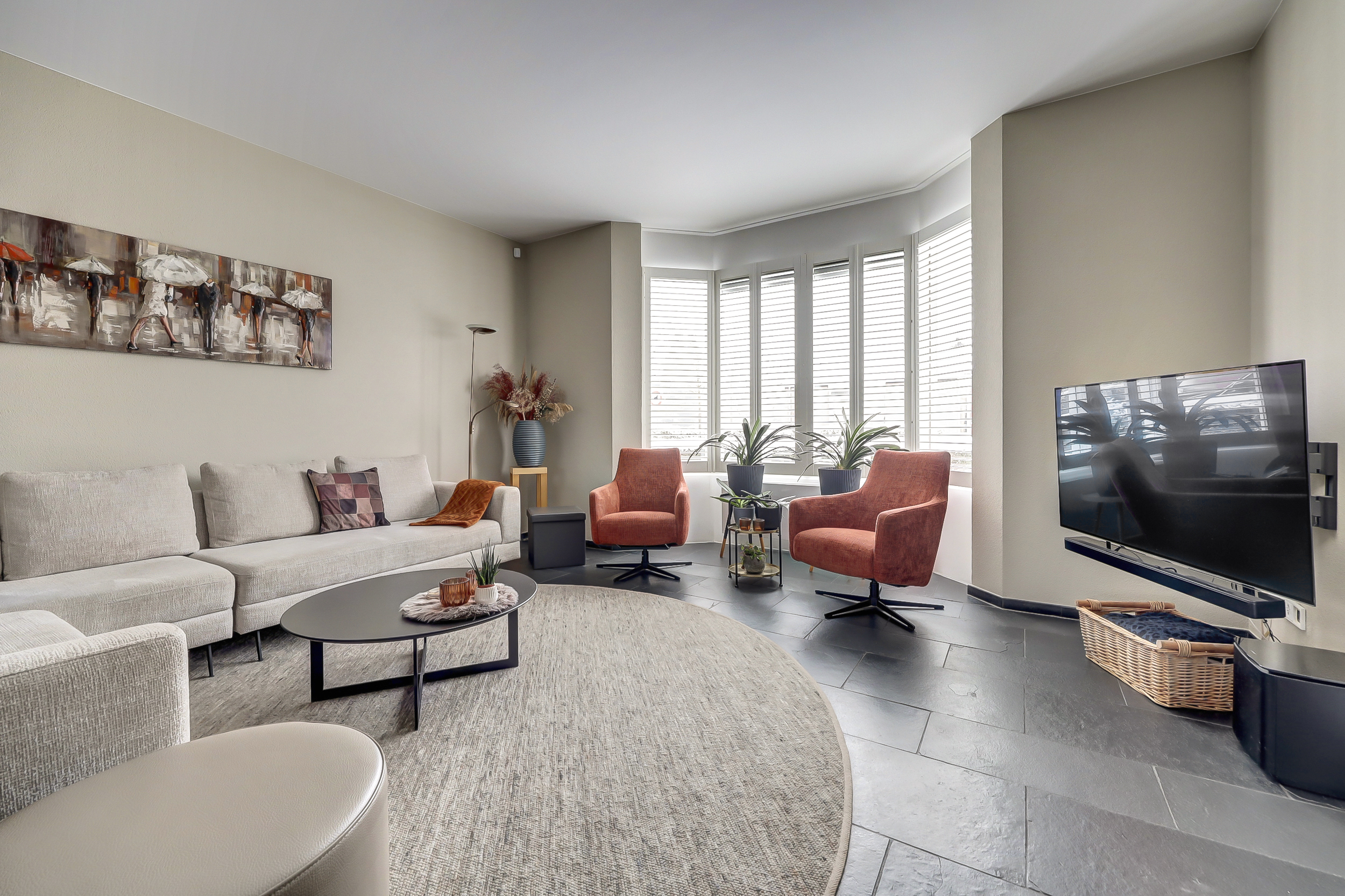 - Lichte, royale living met erkers, openslaande tuindeuren en vloerverwarming;