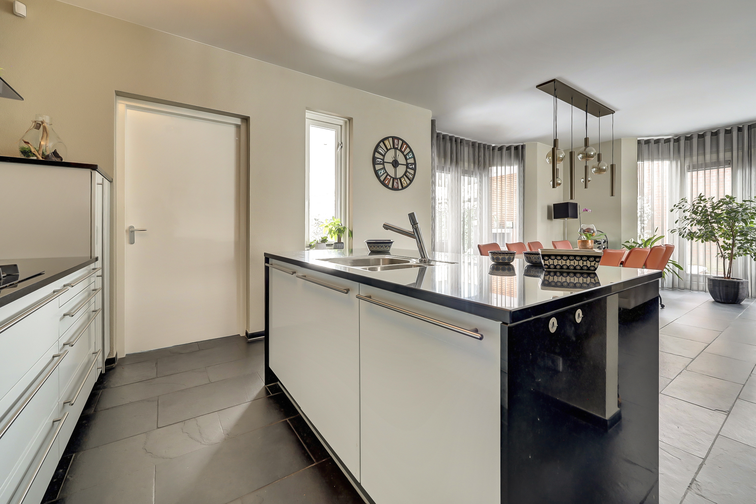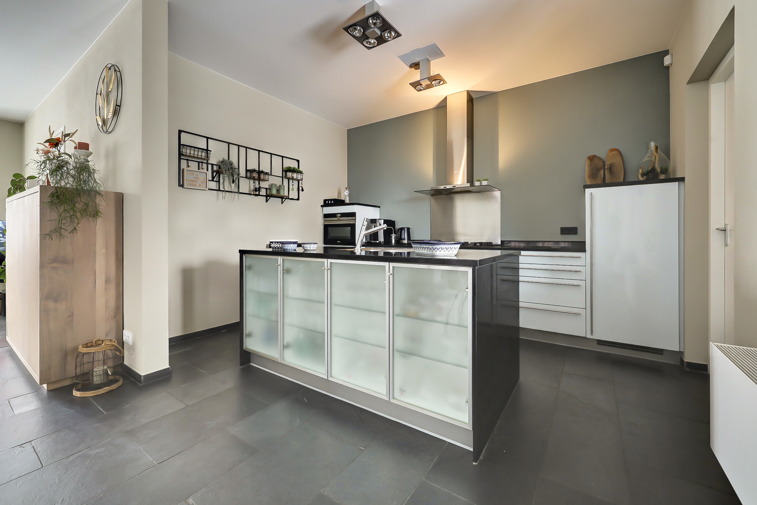 - Luxe open woonkeuken met spoeleiland en granieten werkblad;