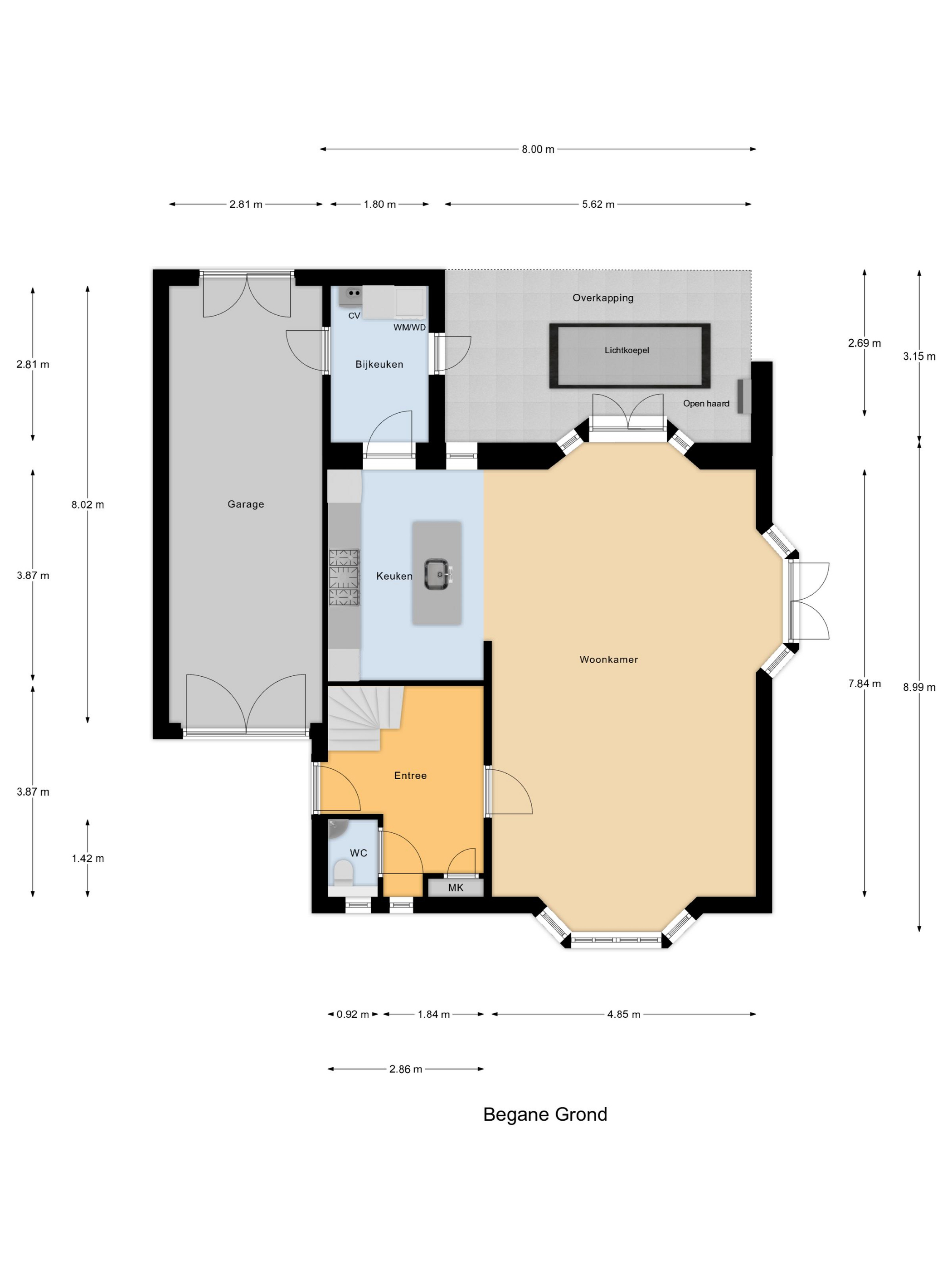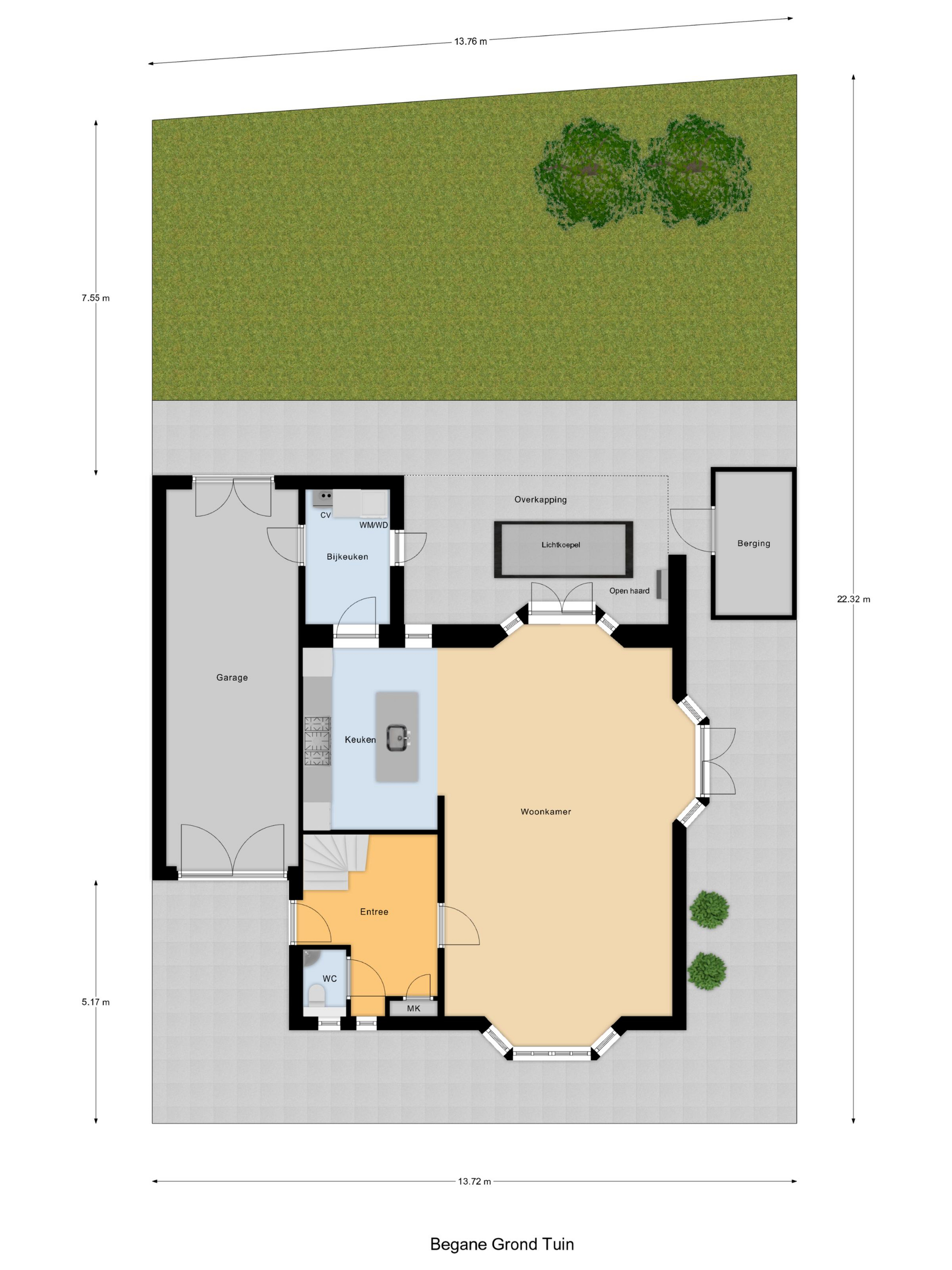 - Buitenberging met achterom en inpandig bereikbare garage.
