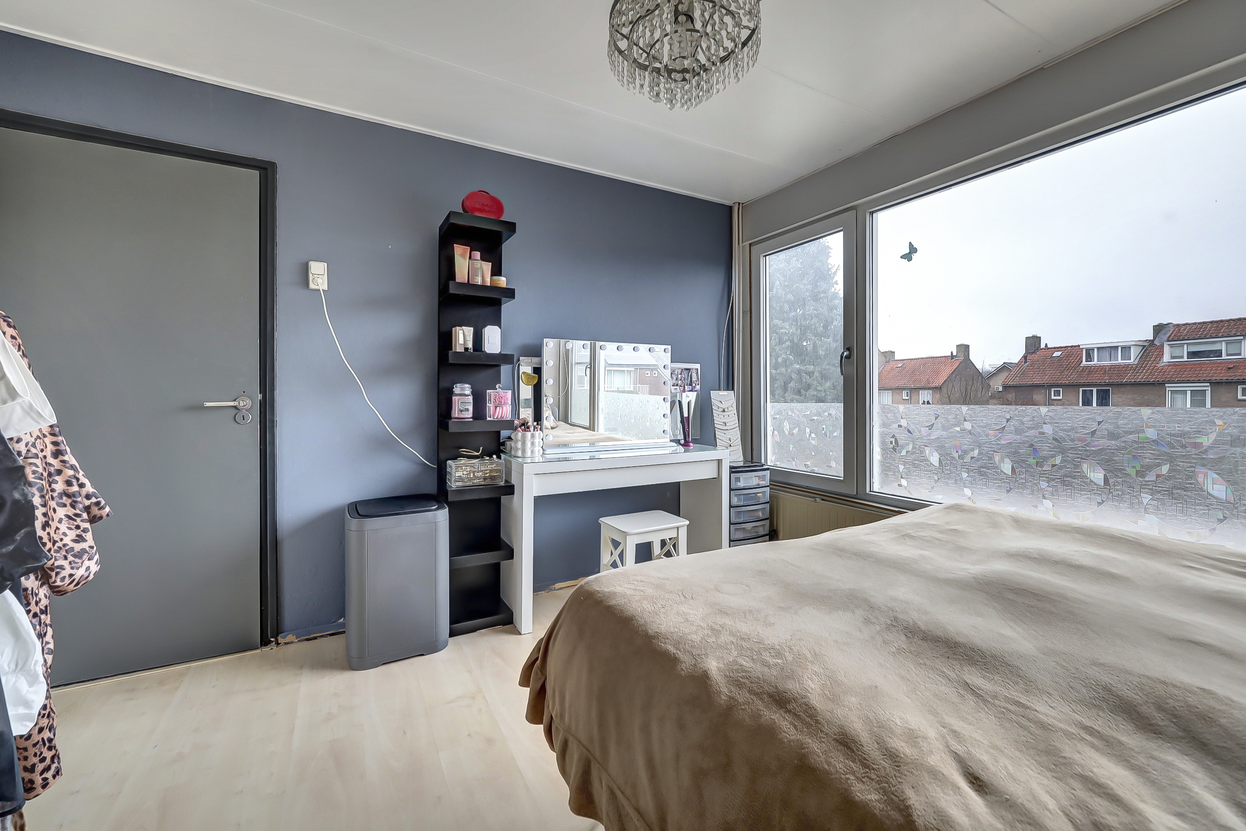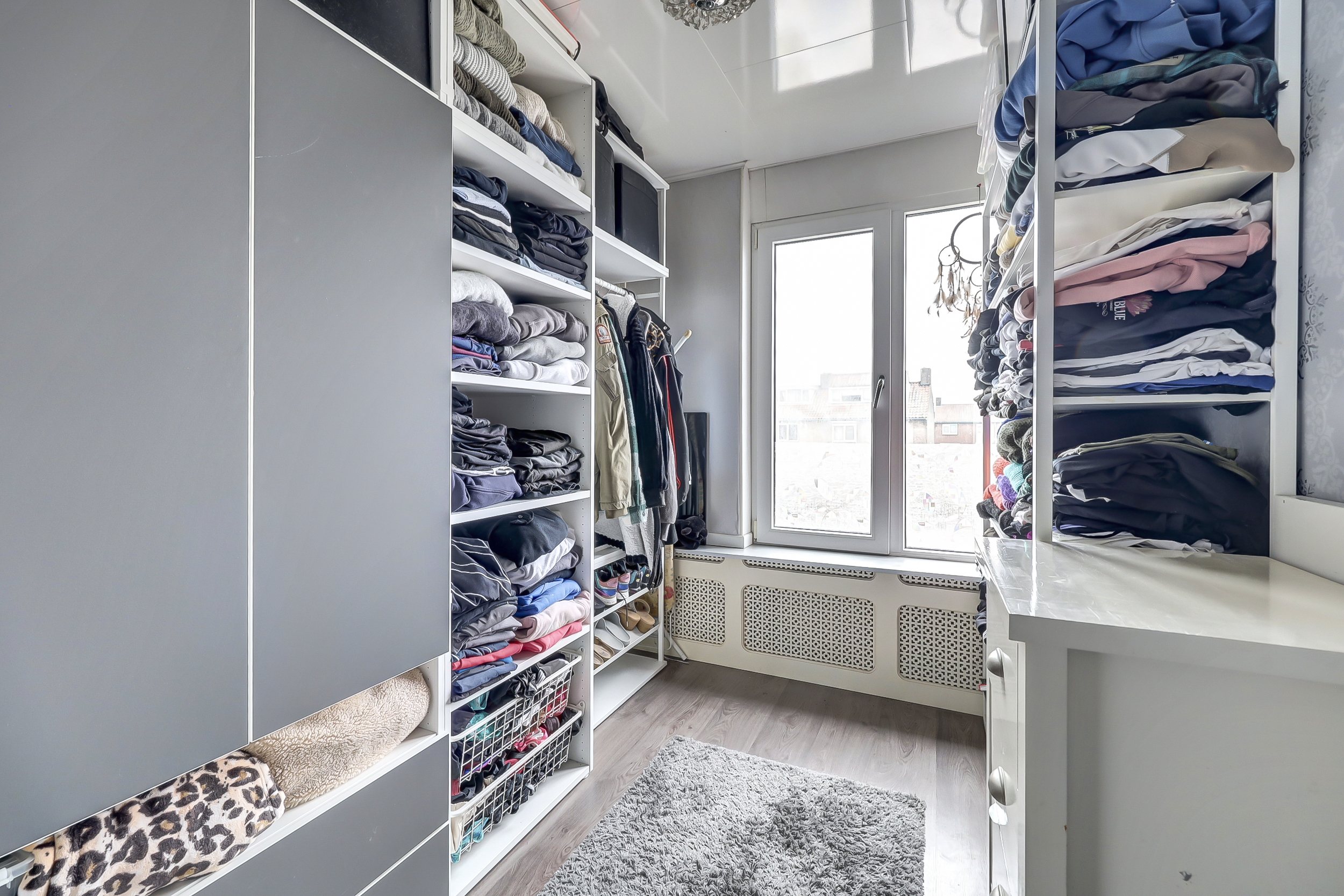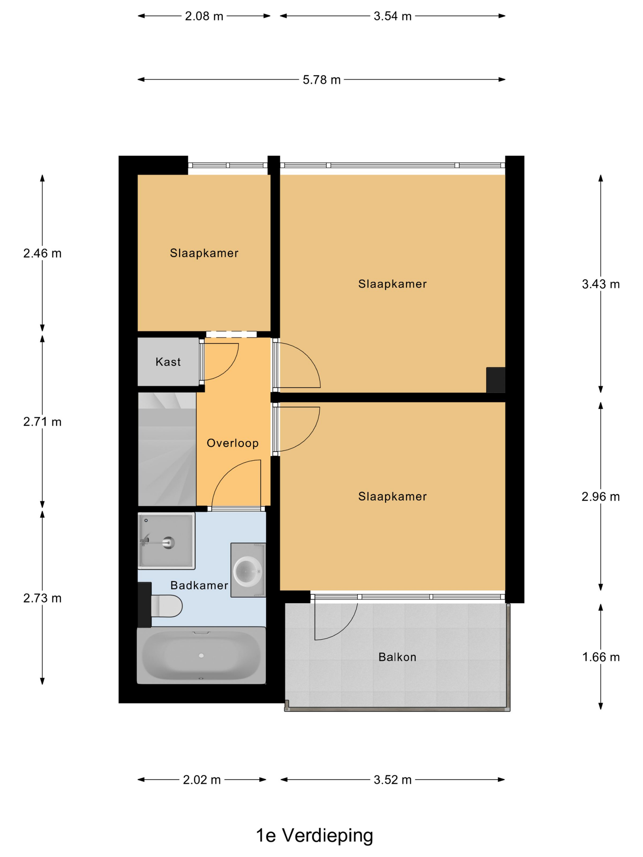 Op de eerste verdieping bevinden zich drie slaapkamers, die stuk voor stuk praktisch en goed van formaat zijn. De twee grootste slaapkamers bieden ruim voldoende plaats voor een tweepersoonsbed en een kastenwand, waardoor ze uitstekend geschikt zijn als volwaardige hoofdslaapkamers. Eén van deze slaapkamers beschikt bovendien over toegang tot het balkon aan de voorzijde van de woning. Een fijne extra buitenruimte waar je even buiten kunt zitten en uitkijkt over de straat. De derde slaapkamer is momenteel ingericht als inloopkast, maar leent zich net zo goed als kinder-, werk- of logeerkamer. Dankzij het formaat en de prettige indeling is deze ruimte eenvoudig aan te passen aan andere woonwensen. De badkamer is in 2023 volledig vernieuwd en heeft een luxe, eigentijdse uitstraling. De ruimte is slim ingedeeld en voorzien van zowel een ligbad als een moderne inloopdouche met sunshower, waardoor comfort en ontspanning hier centraal staan. Daarnaast beschikt de badkamer over een strak wastafelmeubel met opbergruimte, een toilet én elektrische vloerverwarming, wat zorgt voor extra comfort. Het aanwezige dakraam zorgt voor prettig daglicht en natuurlijke ventilatie.