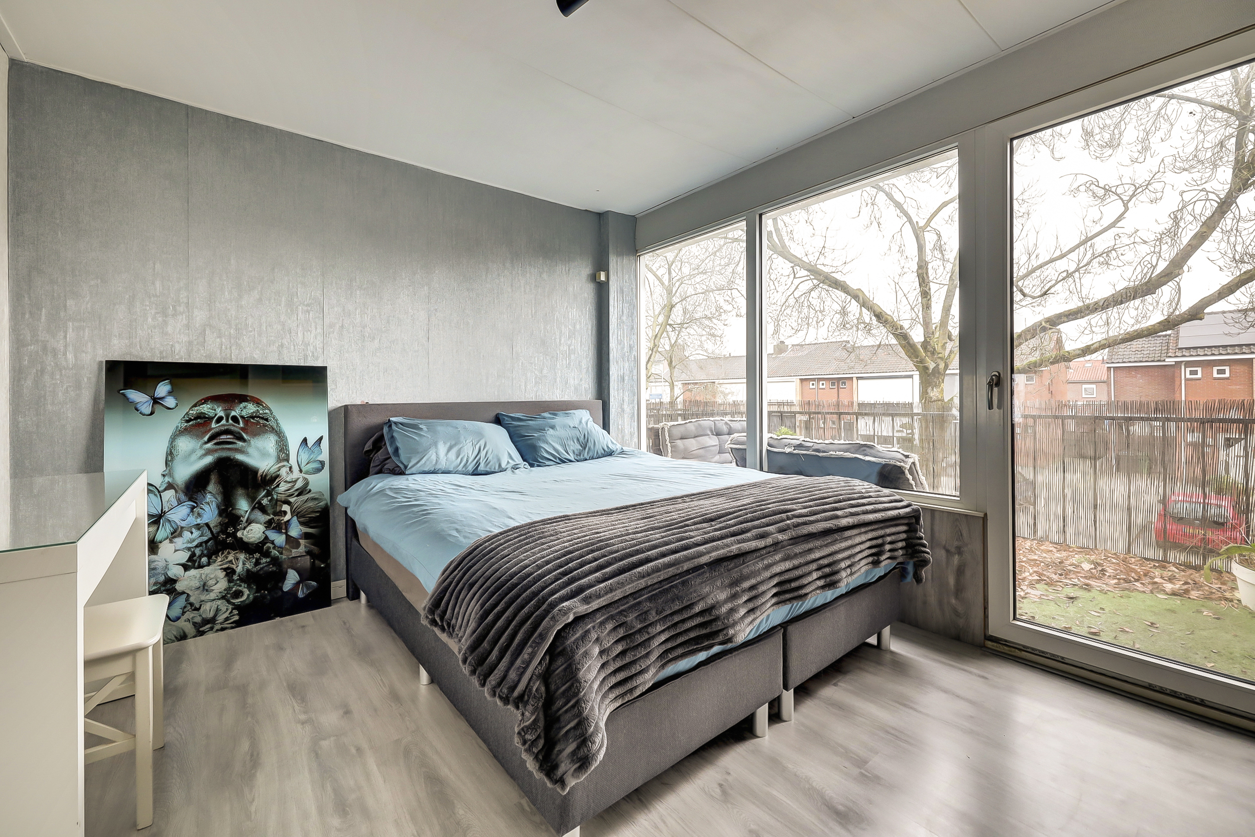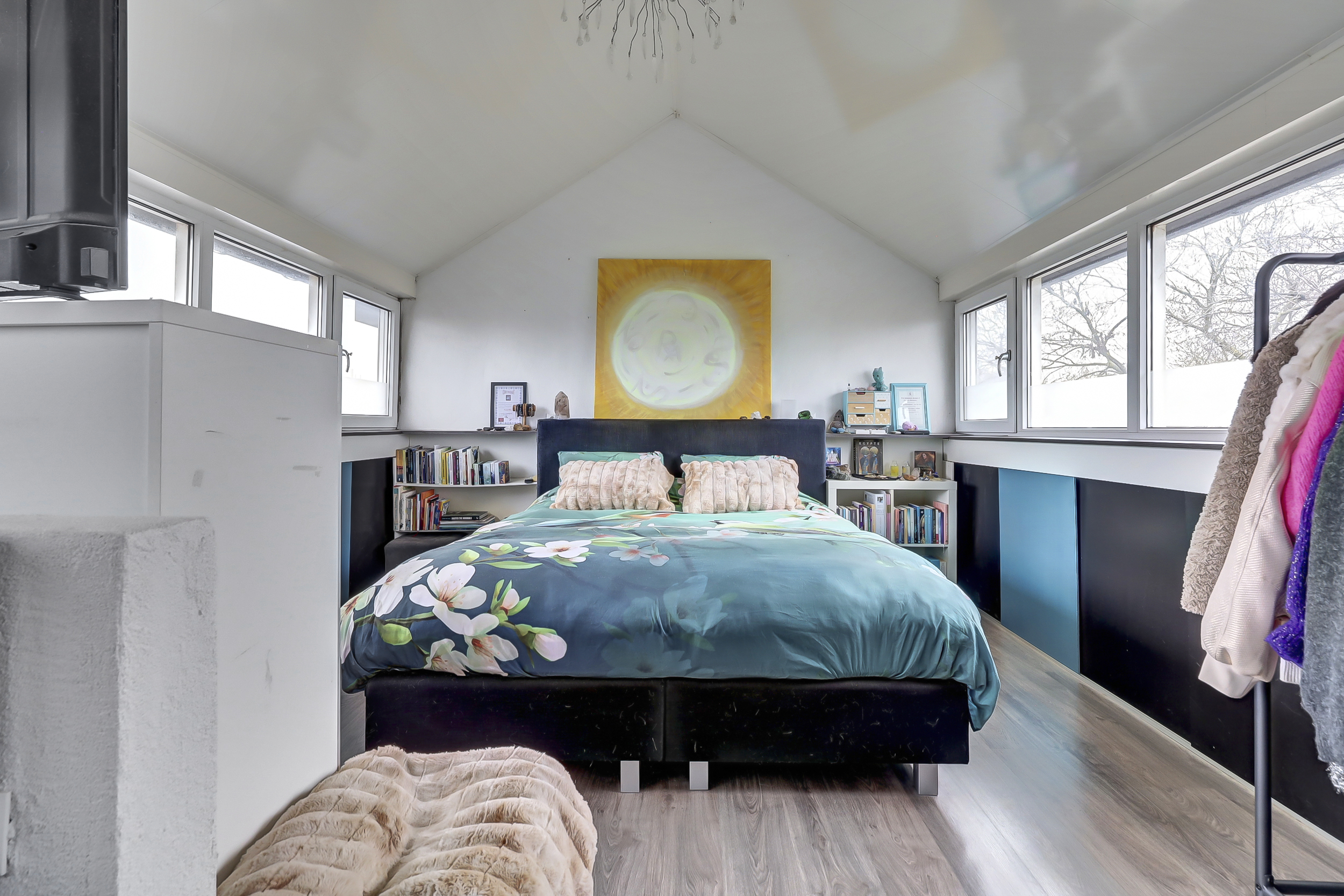 Via een vaste trap bereik je de tweede verdieping. Dankzij de nokverhoging is hier een volwaardige en verrassend lichte verdieping ontstaan. De ruimte is ingericht als ruime vierde slaapkamer en voelt comfortabel aan door de goede hoogte en lichtinval. Op deze verdieping bevinden zich tevens de aansluitingen voor de wasmachine en droger, evenals de cv-ketel (bouwjaar 2014), netjes opgesteld. De combinatie van wonen en praktische voorzieningen maakt deze verdieping bijzonder functioneel.