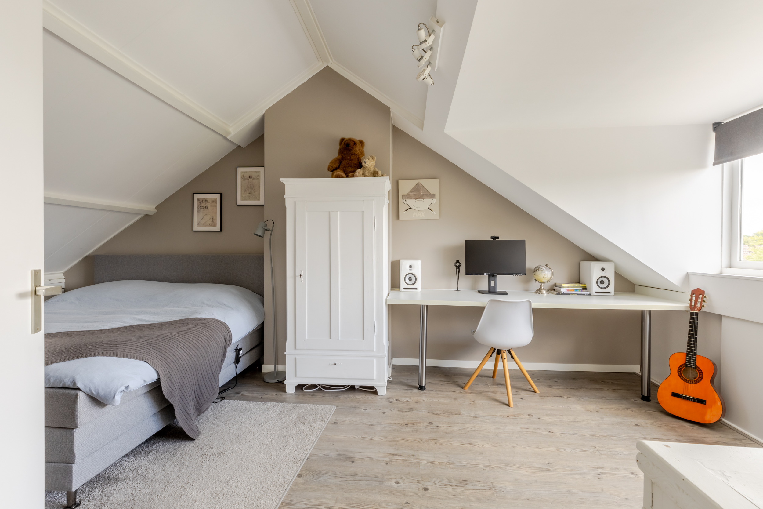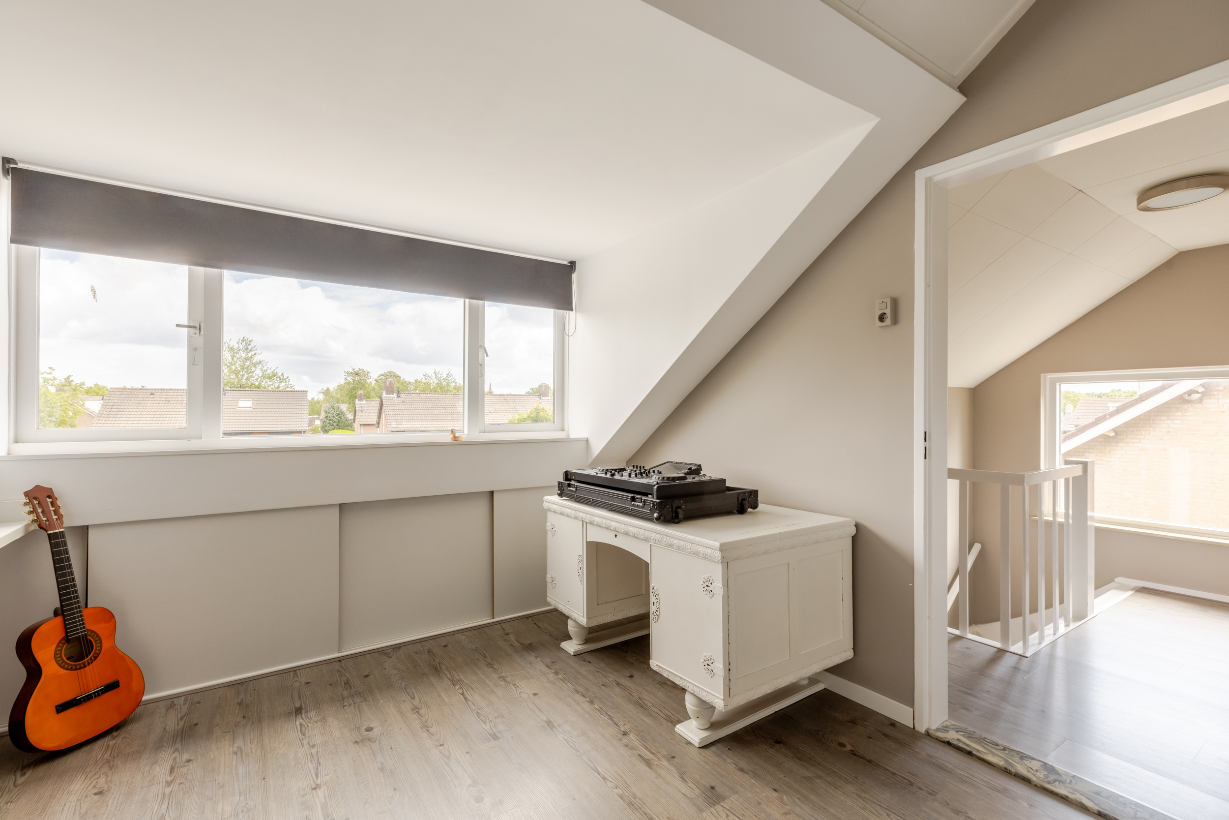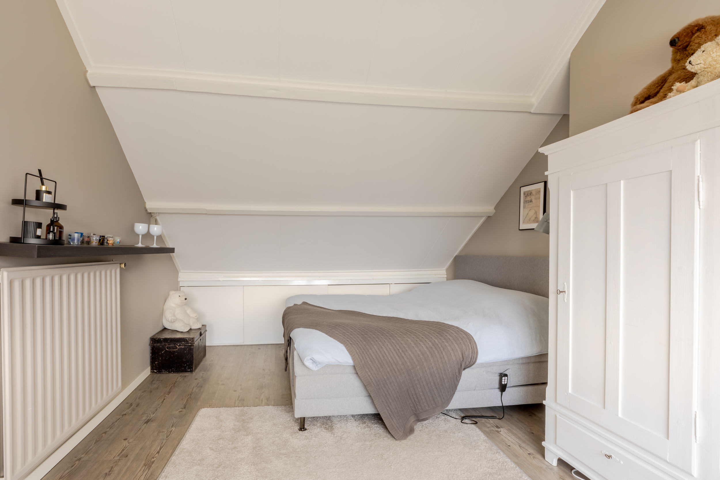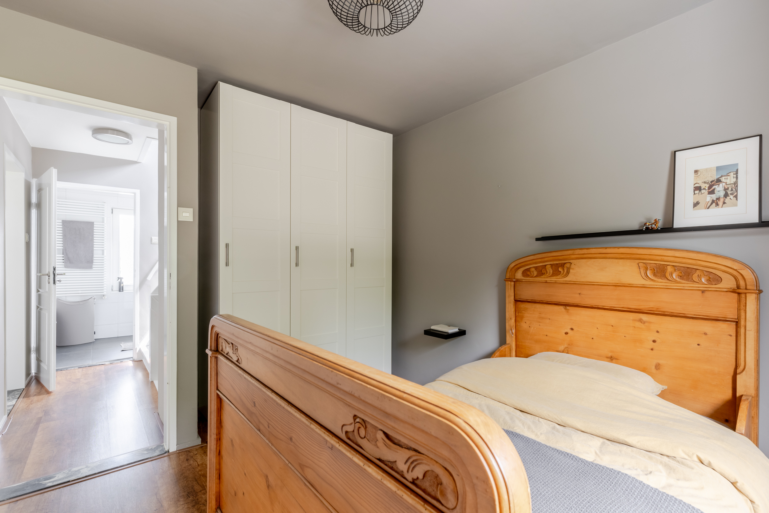 De tweede verdieping bereik je via een vaste trap die je brengt op een nette overloop met toegang tot de vierde slaapkamer. De slaapkamer is ruim opgezet en dankzij de dakkapel heerlijk licht. Er is meer dan genoeg ruimte voor een tweepersoonsbed, kledingkast en eventueel een bureau.