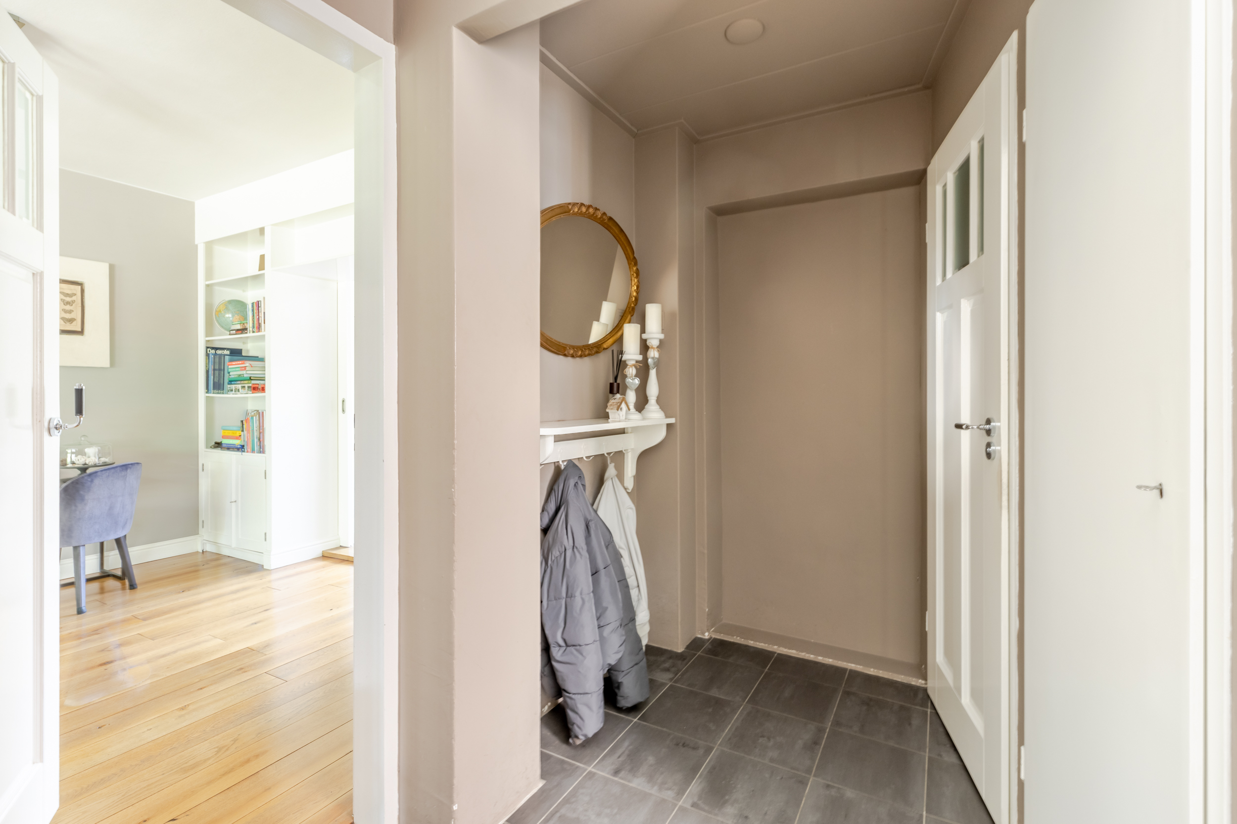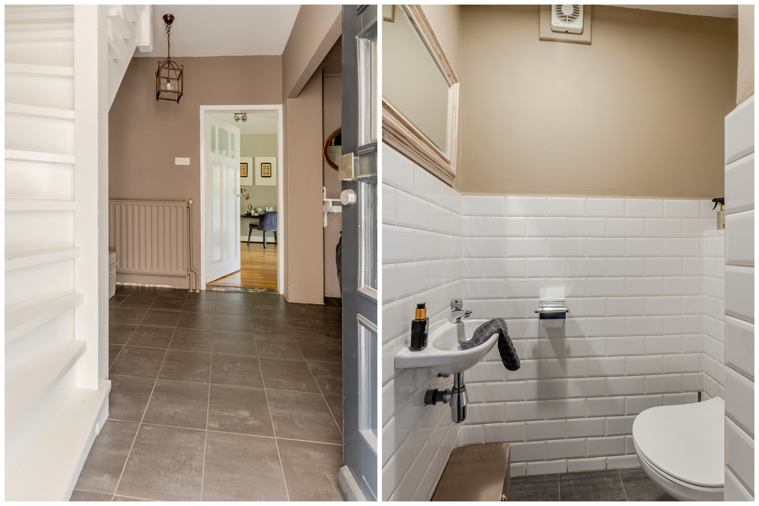 Parkeer moeiteloos de auto op de ruime oprit of voor de woning, waar genoeg ruimte is voor meerdere voertuigen. Via de voordeur stap je binnen in een ruime en uitnodigende entreehal. Hier vind je de meterkast, een toilet met fonteintje, een garderobe, de trap naar de eerste verdieping en de deur naar de woonkamer.