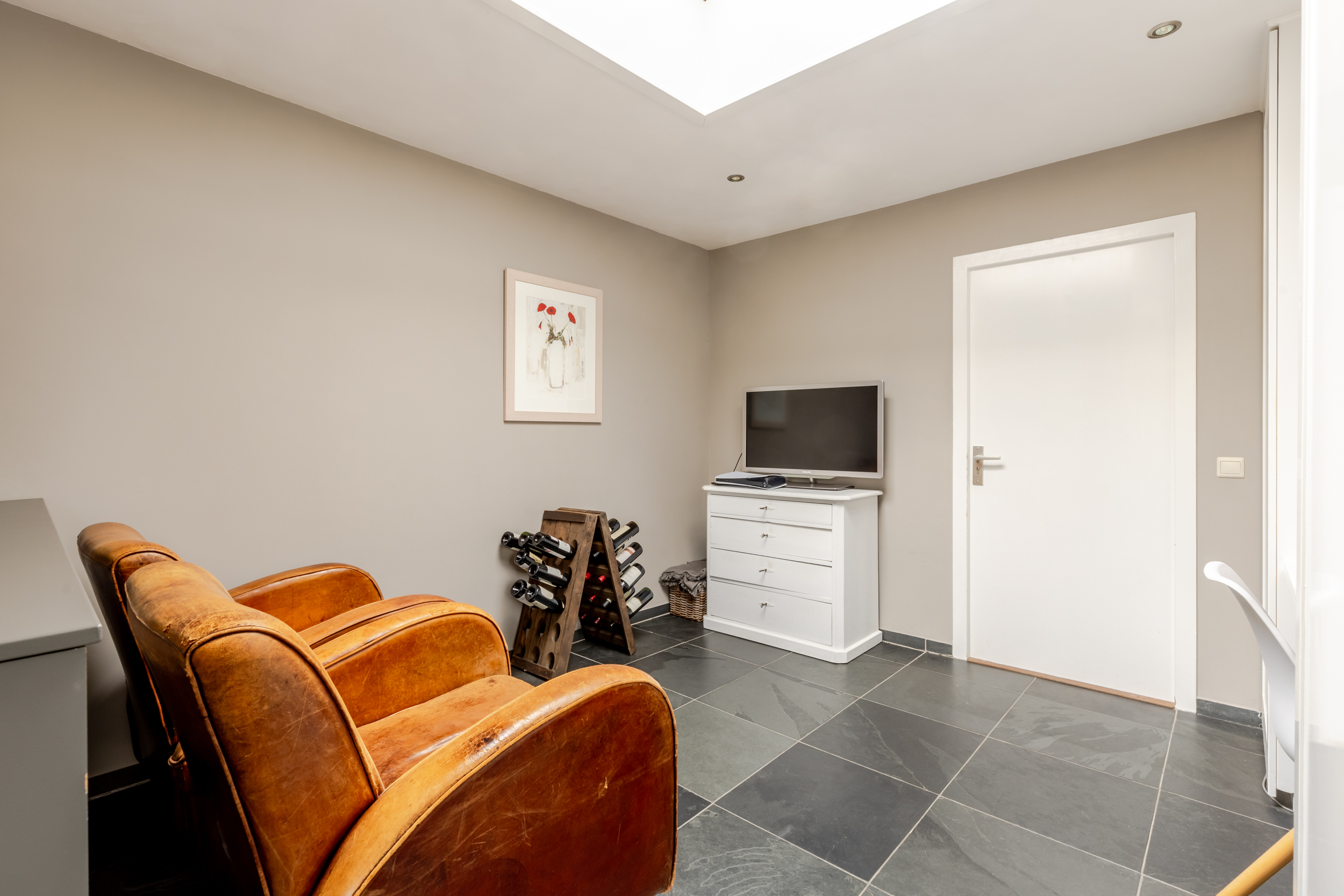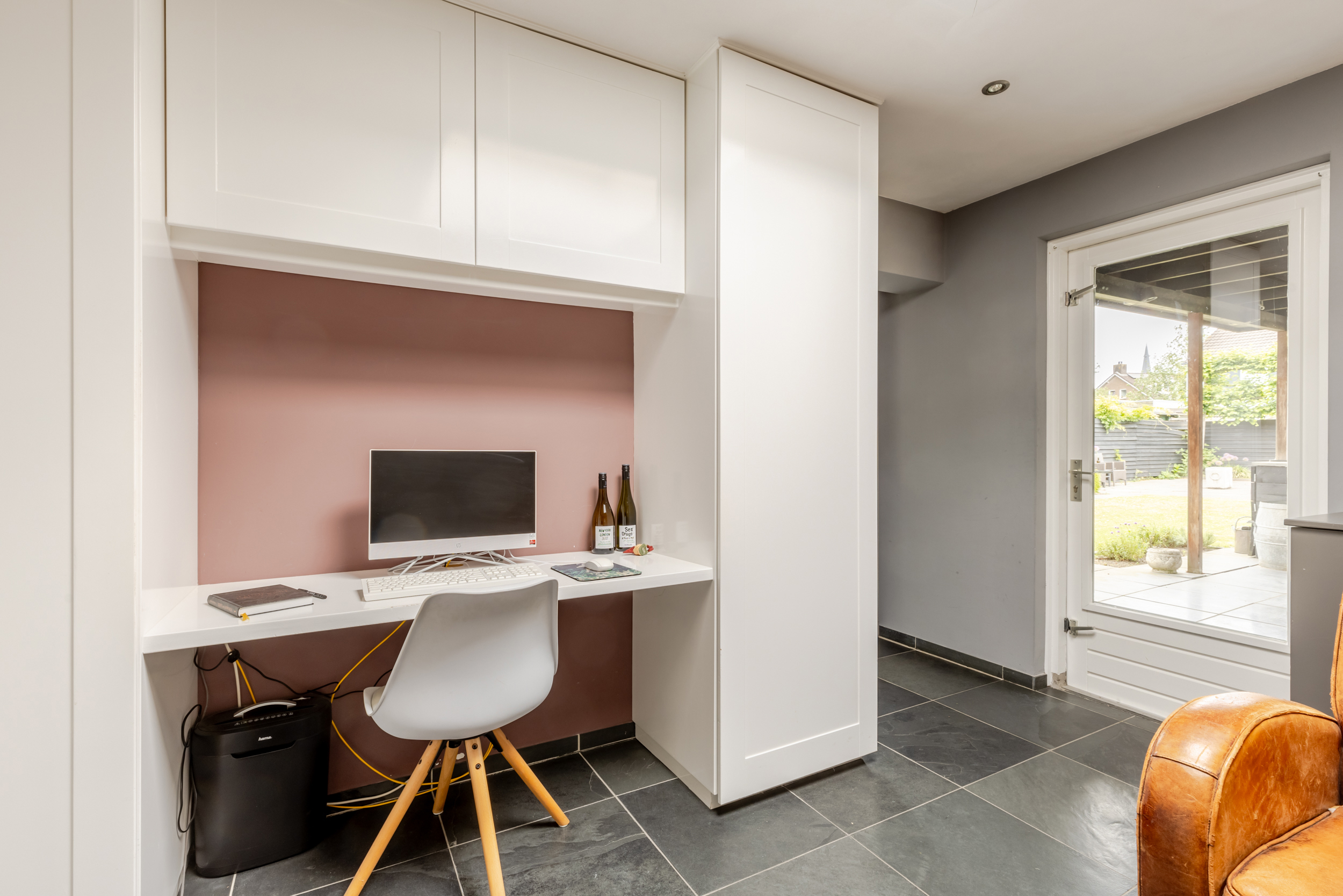 De woonkeuken is een heerlijke plek om samen te komen. Er is voldoende ruimte voor een royale eettafel en de tegelvloer is voorzien van comfortabele vloerverwarming. De keuken zelf is uitgerust met een gaskookplaat, afzuigkap, oven, koelkast en vaatwasser. Via de openslaande deuren stap je direct de tuin in wat het binnen-buitenleven een vanzelfsprekend onderdeel van je dag maakt. Tot slot is er nog een extra kamer grenzend aan de keuken die ook voorzien is van vloerverwarming. Ideaal als rustige thuiswerkplek, hobbyruimte of slaapkamer. Vanuit deze ruimte heb je toegang tot enerzijds de berging die eveneens vanaf de oprit toegankelijk is en anderzijds de fijne overkapping.