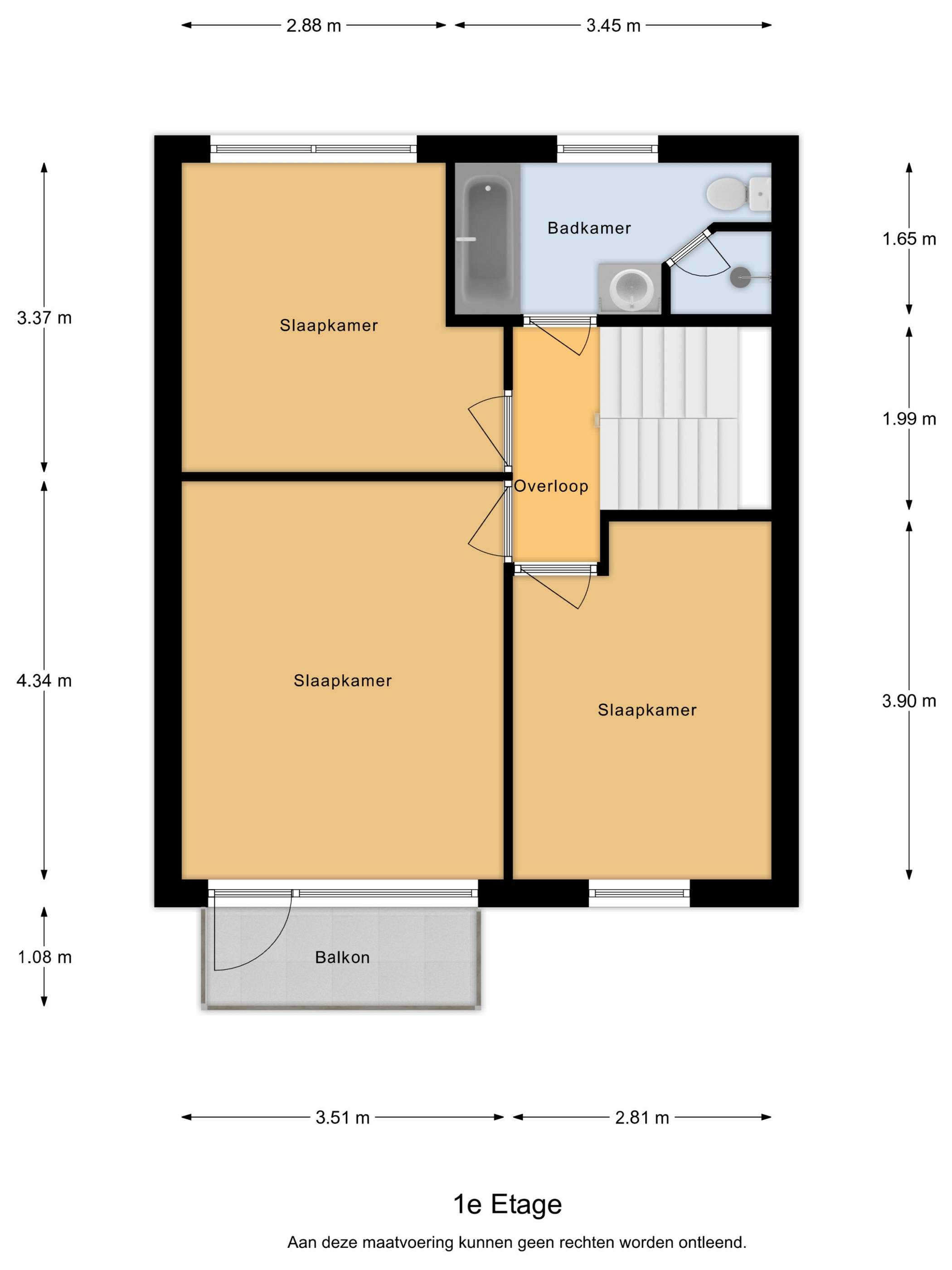 Eenmaal boven kom je uit op de overloop die toegang biedt tot drie ruime slaapkamers en de badkamer. De kamer zijn ruim genoeg voor een tweepersoonsbed en een kledingkast. De hoofdslaapkamer heeft nog iets extra's en dat is een breed balkon waar je 's ochtends de deur openzet en de frisse buitenlucht naar binnen laat komen. De badkamer is modern en is voorzien van een heerlijk ligbad, een douche met regendouche, een toilet en een wastafel met strak wastafelmeubel.