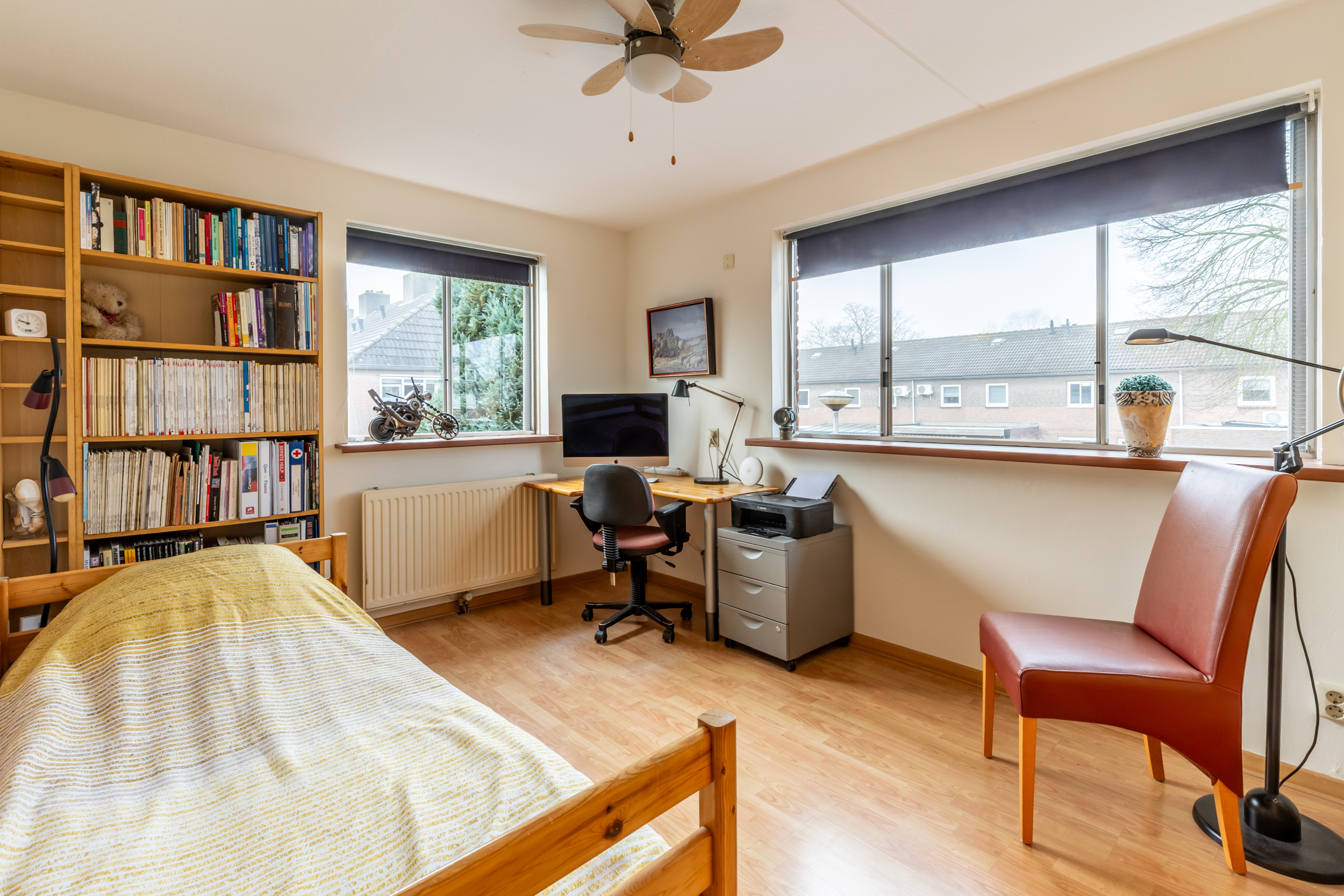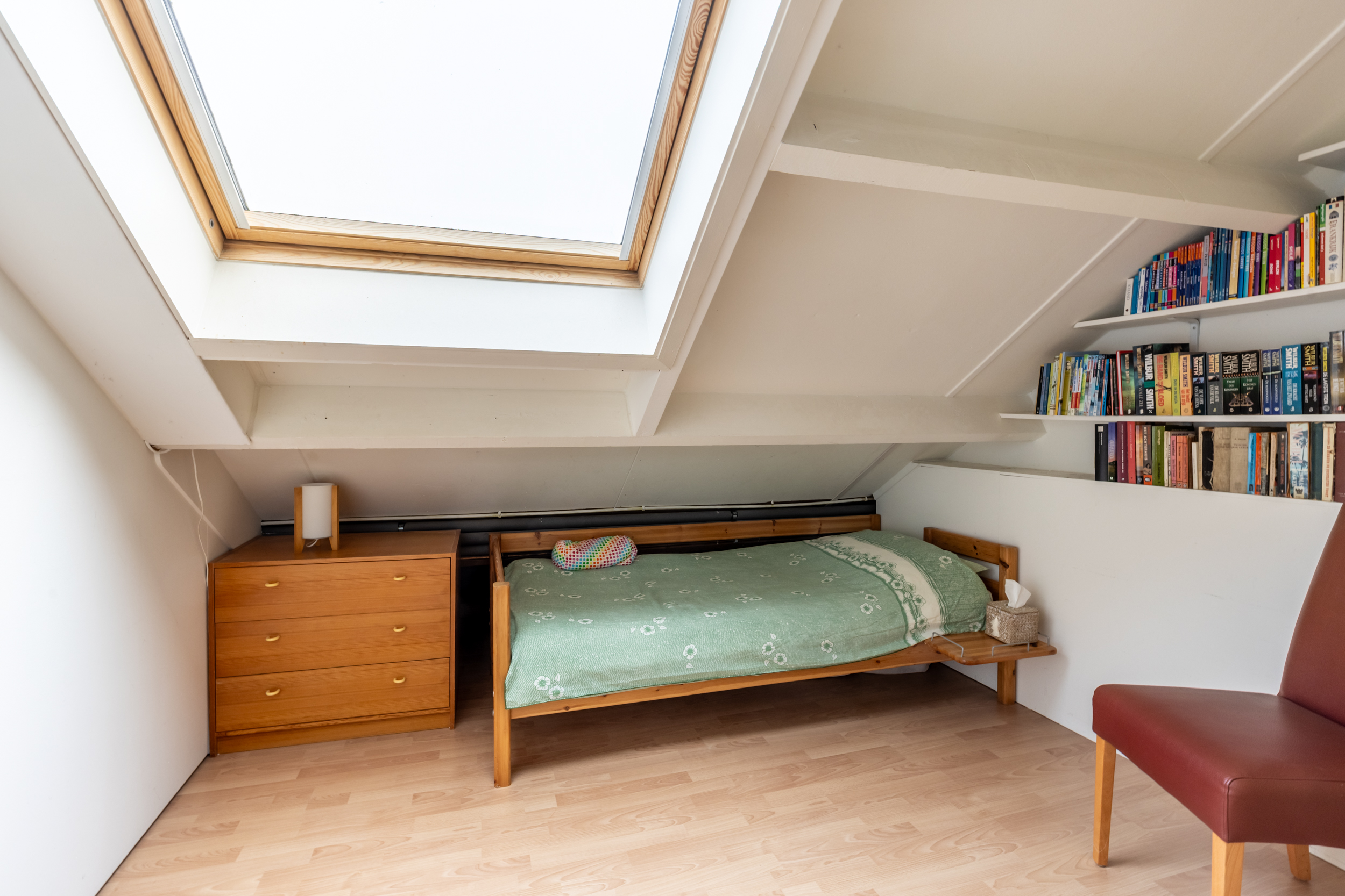 De tweede verdieping is bereikbaar via een vaste trap. Op de overloop is veel bergruimte aanwezig. Tevens vindt u hier de opstelplaats voor de wasmachine en droger, evenals de cv-ketel. Op deze verdieping bevindt zich ook de vierde slaapkamer. Deze kamer is ideaal voor een thuiswonend kind, logeerkamer of extra werkruimte.