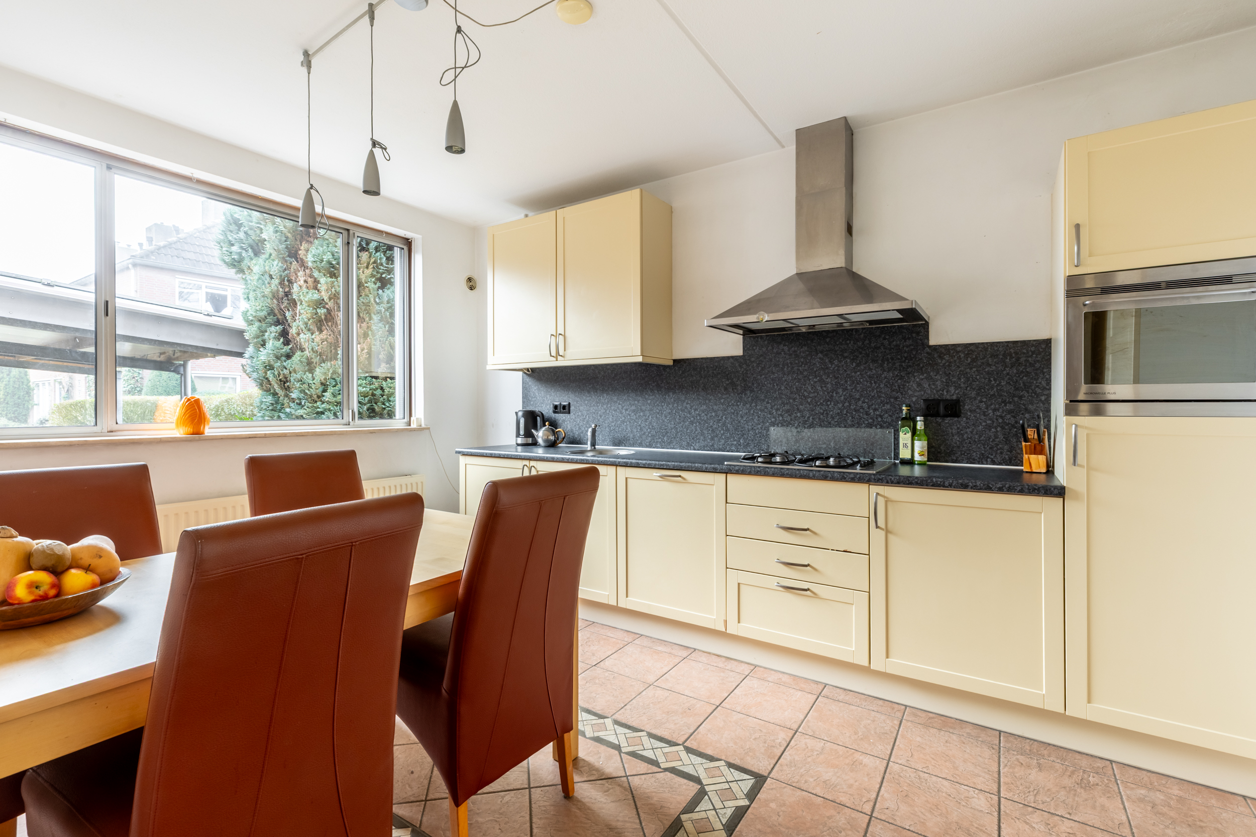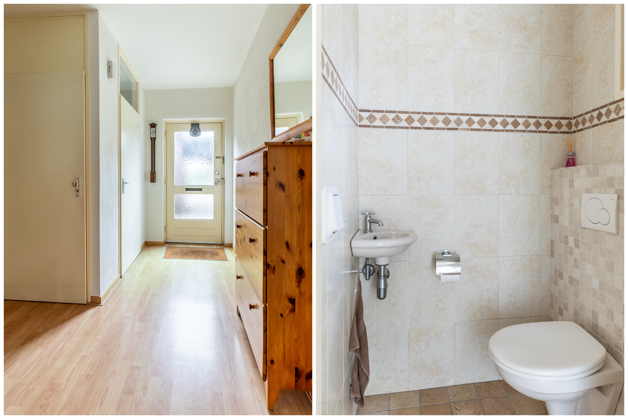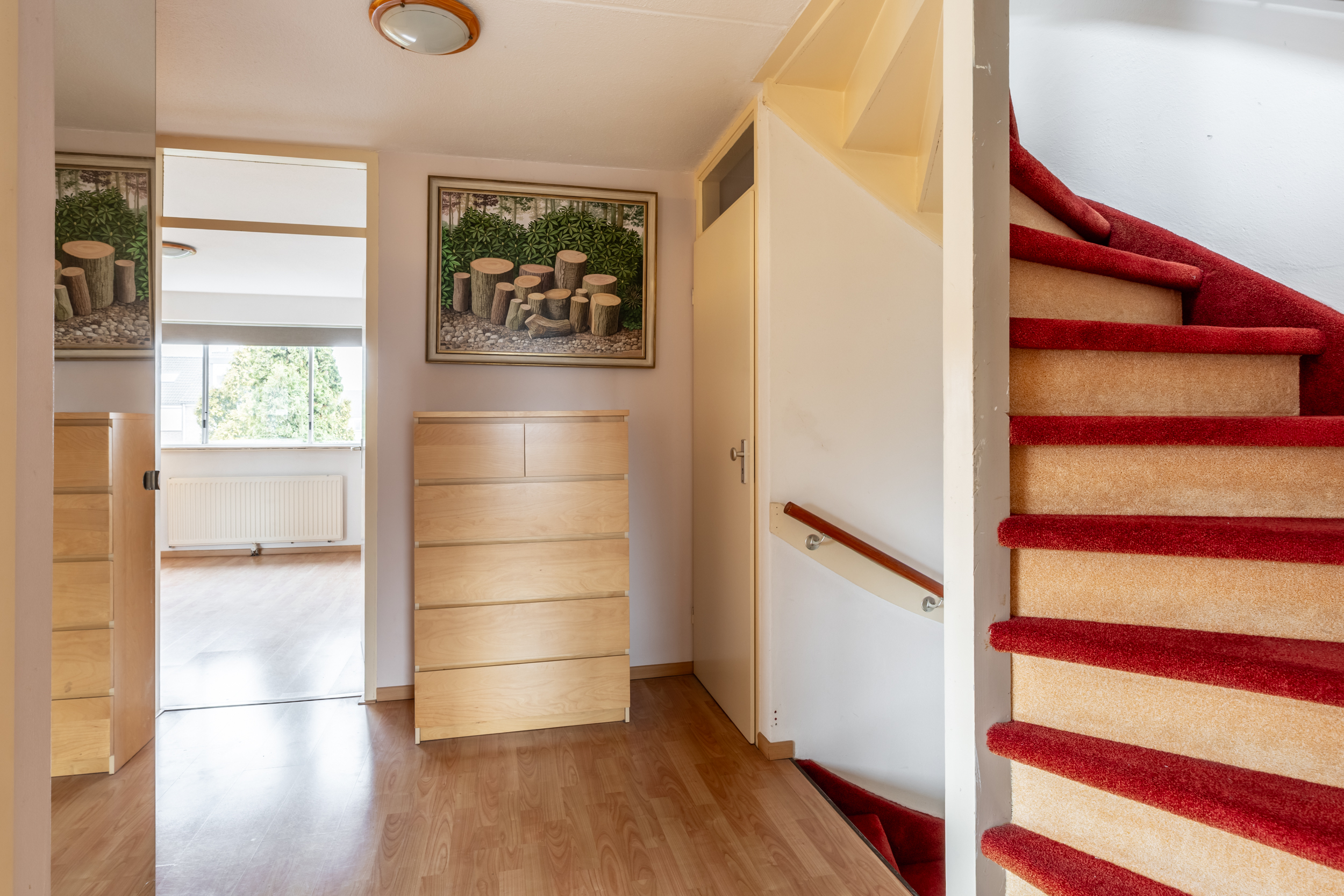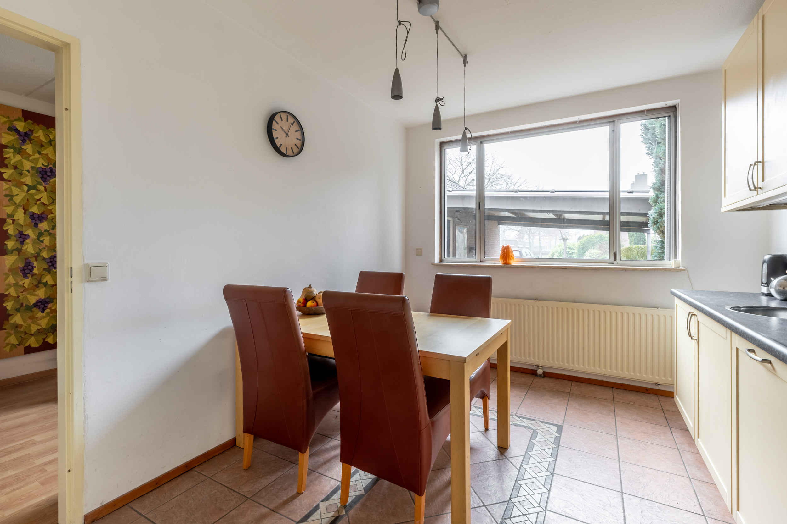 U parkeert de auto gemakkelijk onder de eigen carport, waarop de 17 zonnepanelen zijn geplaatst. Via de voordeur komt u in de entreehal, die toegang biedt tot het toilet, de meterkast, de trapopgang, de keuken en de woonkamer. De keuken aan de voorzijde is een fijne plek om in de middagzon te zitten en biedt voldoende ruimte voor een eettafel. De keuken is uitgerust met een gaskookplaat, oven, vaatwasser en koelkast. Aan de achterzijde bevindt zich de ruime woonkamer, waar door de vele raampartijen veel natuurlijk licht binnenvalt. Dit maakt de woonkamer tot een prettige en lichte leefruimte. Daarnaast is er een handige trapkast en een deur naar de achtertuin, waardoor binnen en buiten mooi met elkaar verbonden zijn.