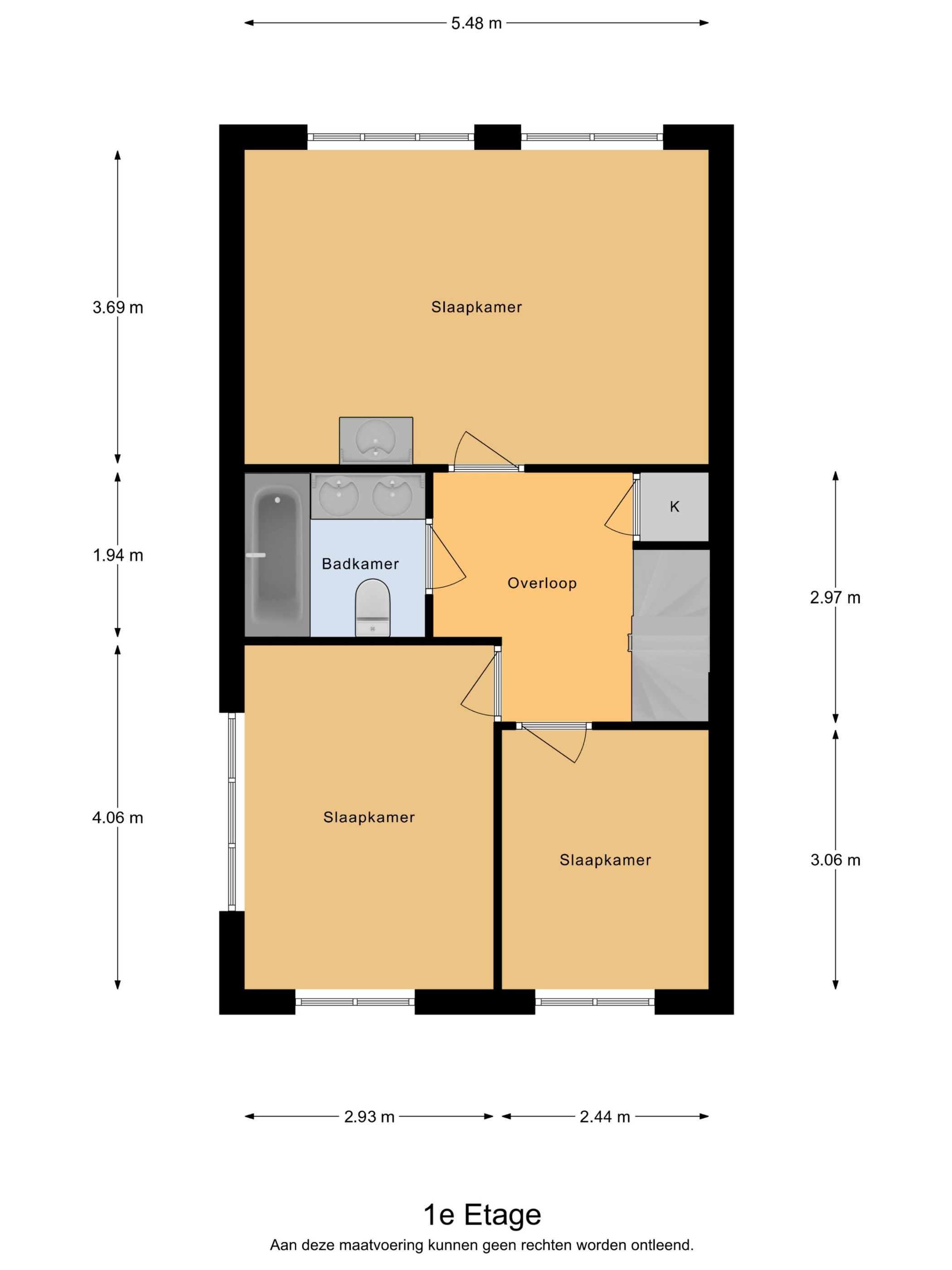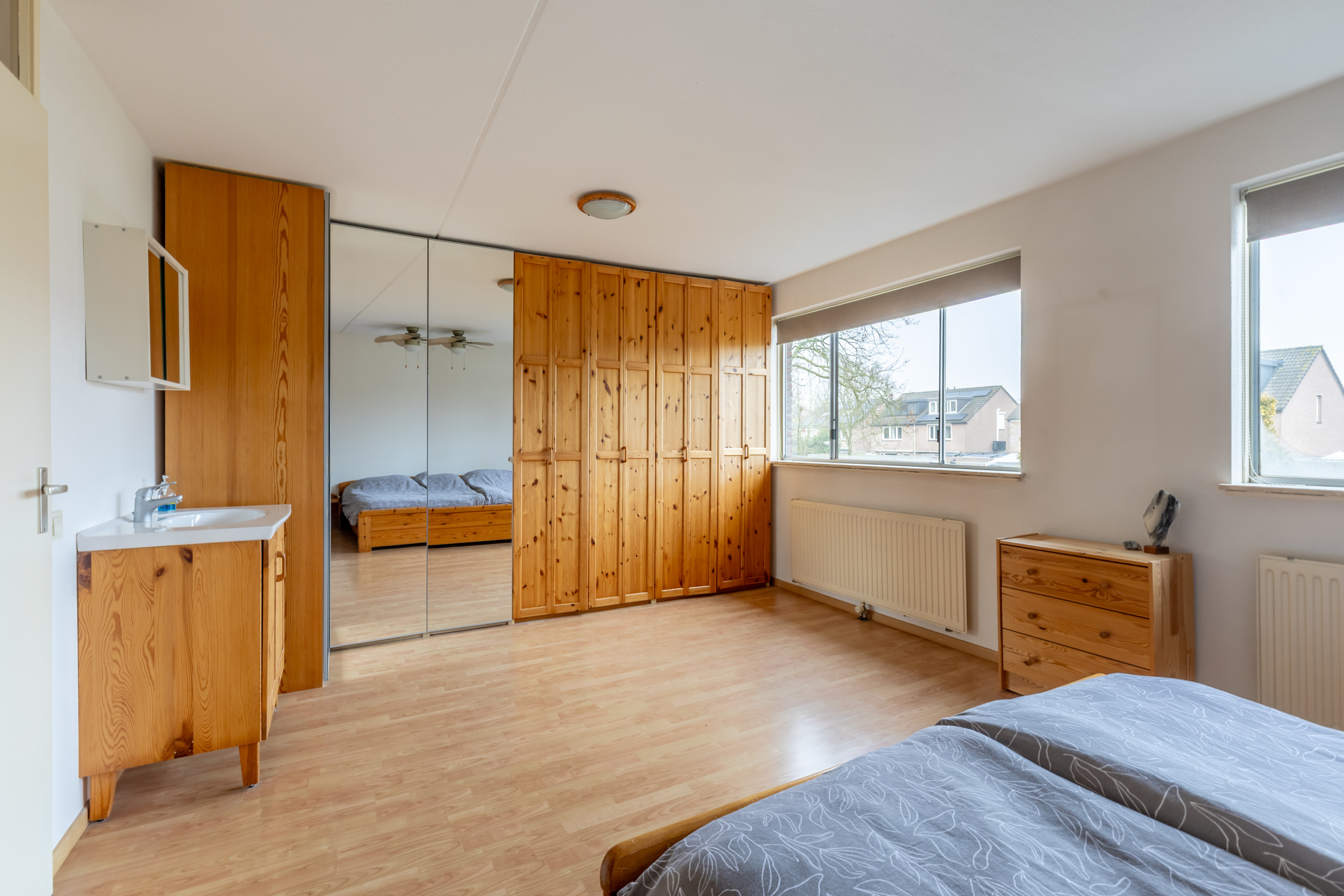 Via de trapopgang bereikt u de overloop op de eerste verdieping. Hier heeft u toegang tot drie ruime slaapkamers, de badkamer en een bergingskast. De hoofdslaapkamer is royaal opgezet en biedt meer dan voldoende ruimte voor een tweepersoonsbed en een grote kledingkast. Ook de tweede slaapkamer is heerlijk ruim en geschikt voor een tweepersoonsbed. De derde slaapkamer is ideaal als kinderkamer, maar kan ook uitstekend dienstdoen als kantoor of hobbyruimte. De badkamer is voorzien van een douche-/badcombinatie, een dubbele wastafel met meubel en een toilet.