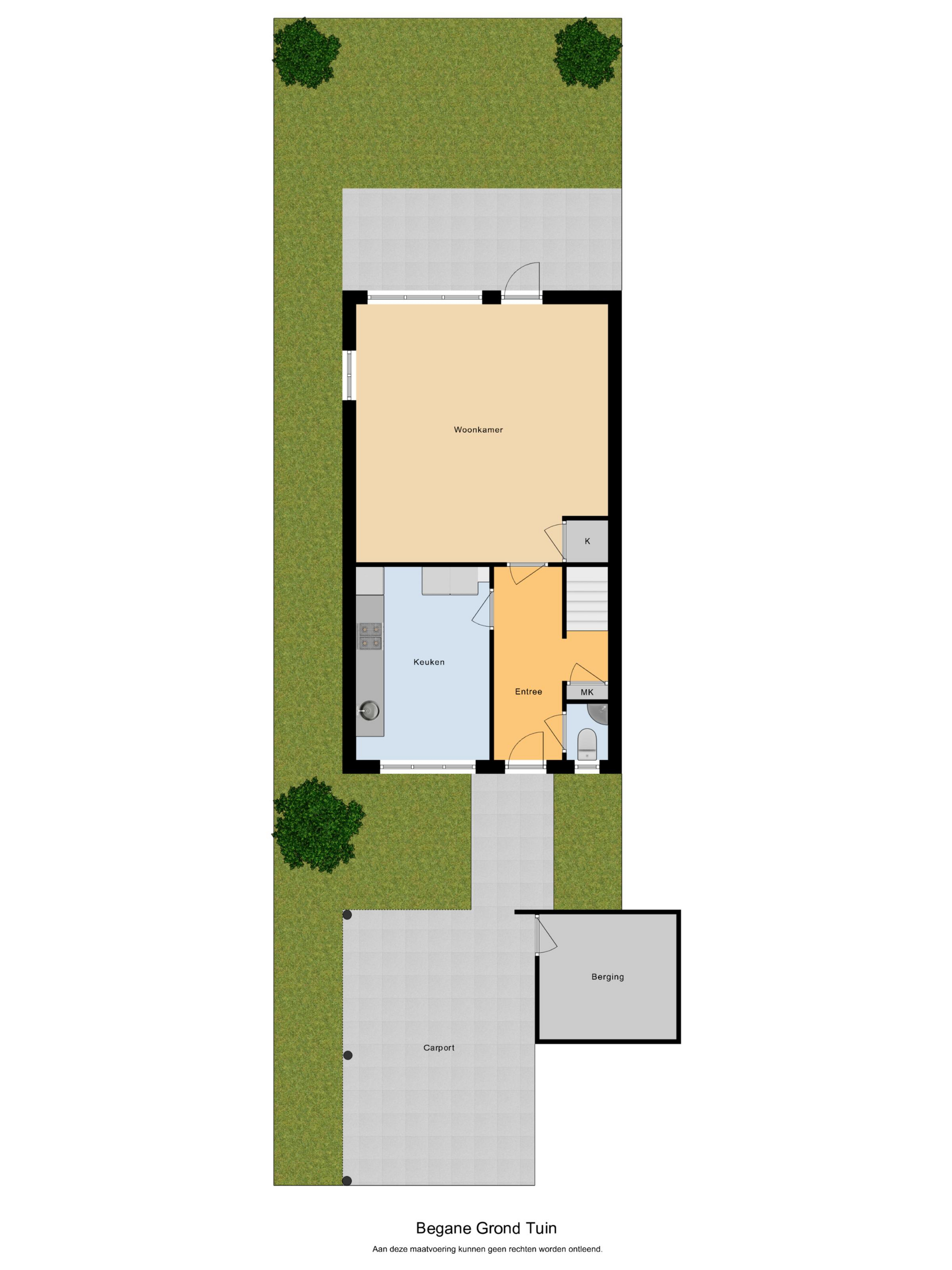 De tuin is gelegen op het noorden en is heerlijk ruim opgezet. Er is veel groen aanwezig, wat zorgt voor een prettige en rustige sfeer. De tuin biedt voldoende ruimte voor een gezellige zithoek en diverse indelingsmogelijkheden. Via de zijkant van de woning is er een praktische achterom naar de voorkant. Aan de voorzijde bevindt zich tevens een berging. Deze berging is voorzien van elektra en een laadpaal voor de auto, die comfortabel onder de carport kan worden geparkeerd.