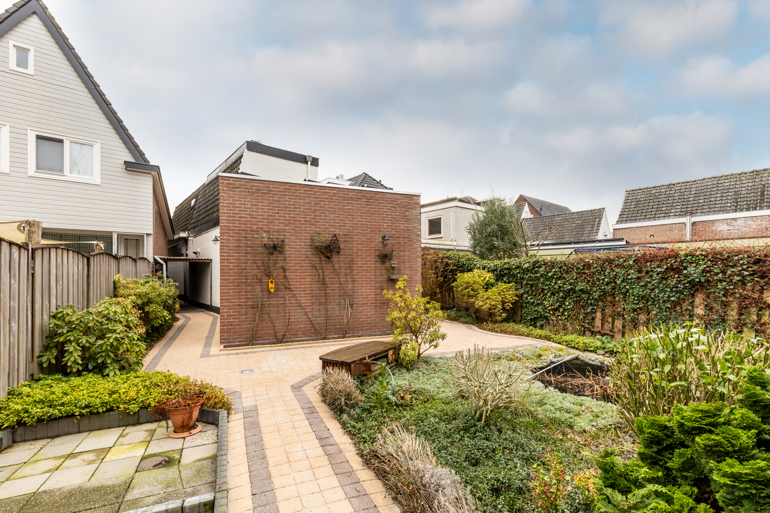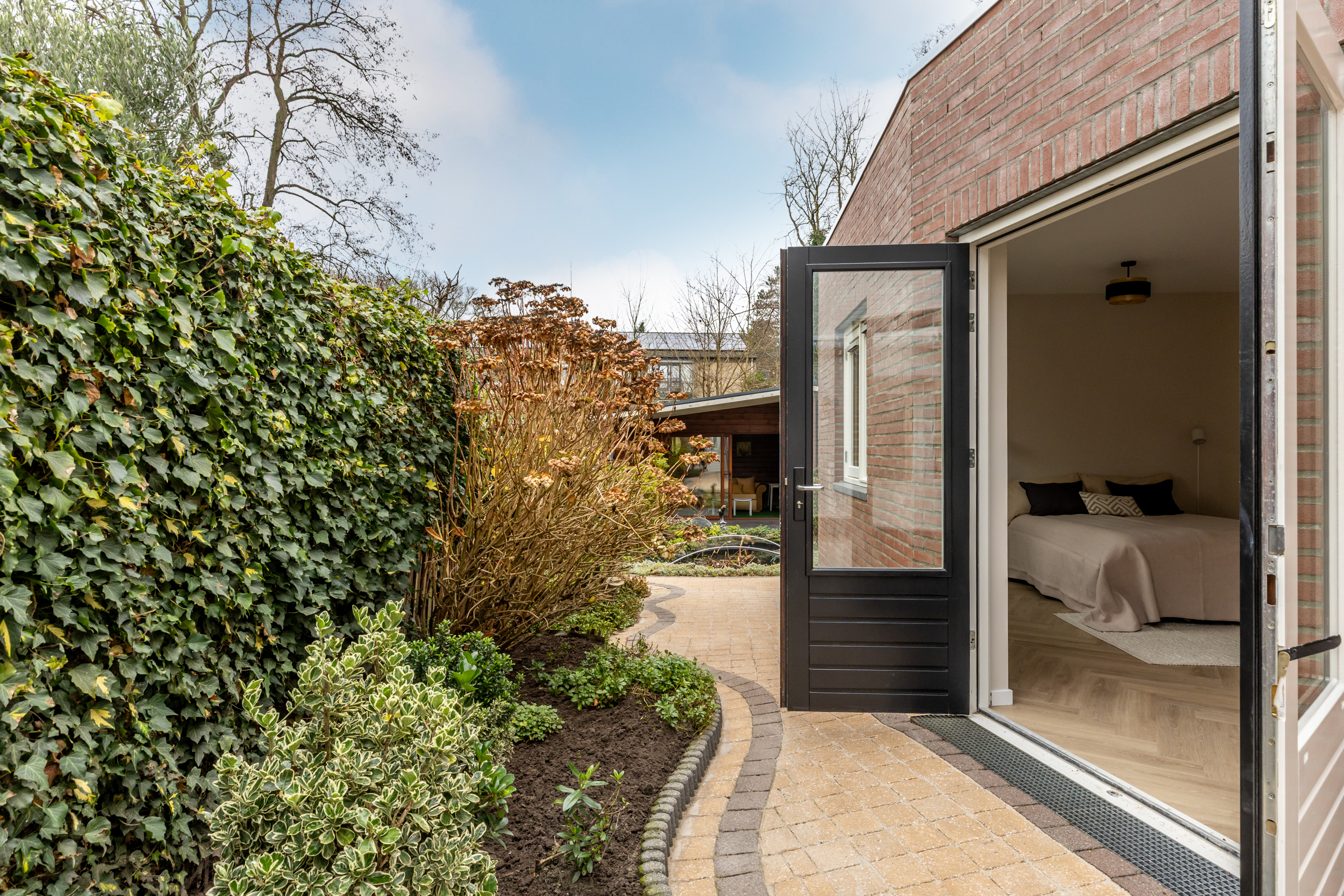De diepe en fraai aangelegde achtertuin, gelegen op het noordoosten, biedt een oase van rust en privacy. De tuin is met zorg ingericht met meerdere terrassen, volwassen beplanting en een sfeervolle vijver die het geheel een parkachtige uitstraling geeft. Dankzij de doordachte indeling zijn er op verschillende momenten van de dag fijne plekken om te zitten en te genieten van zon of schaduw.