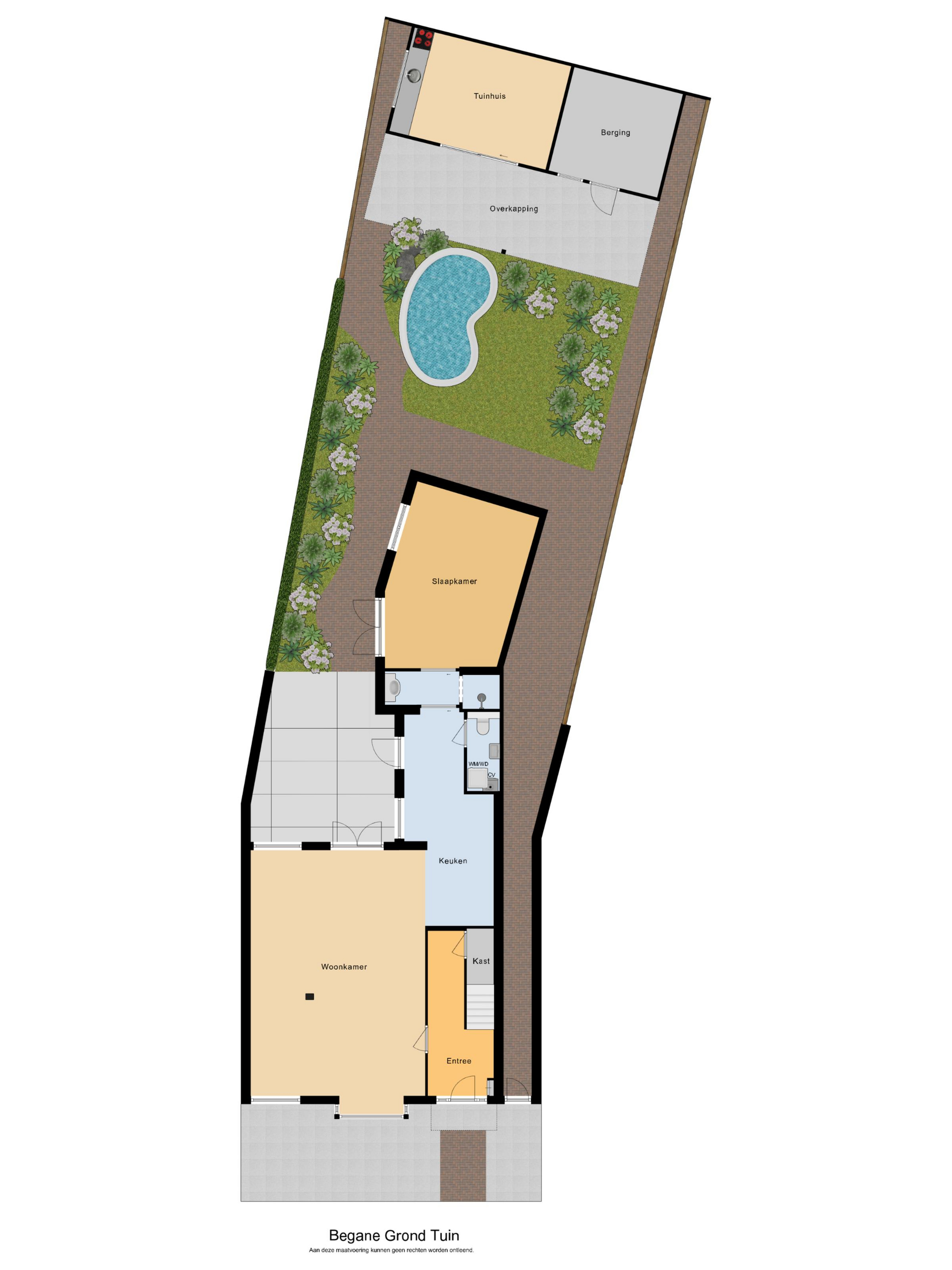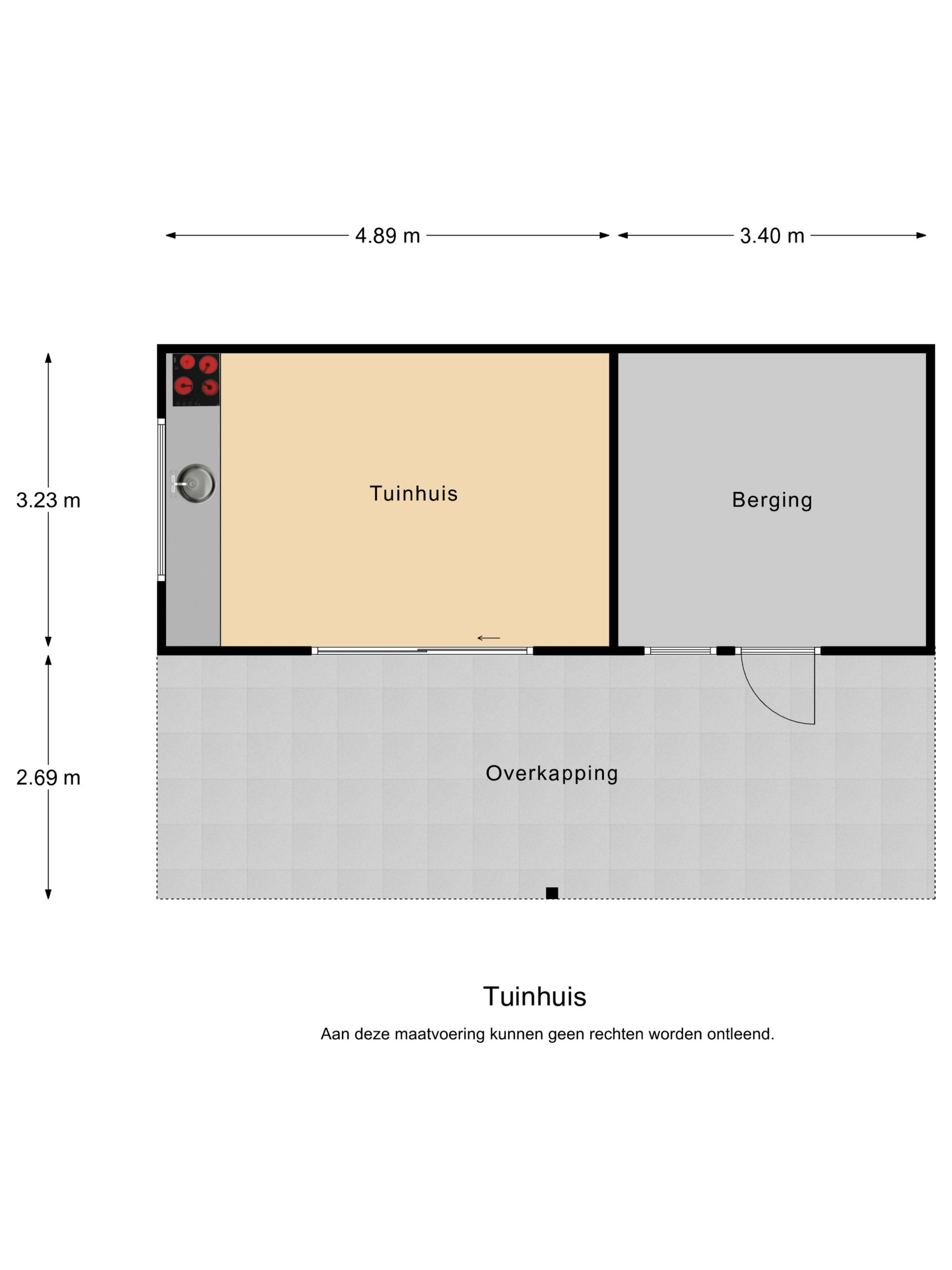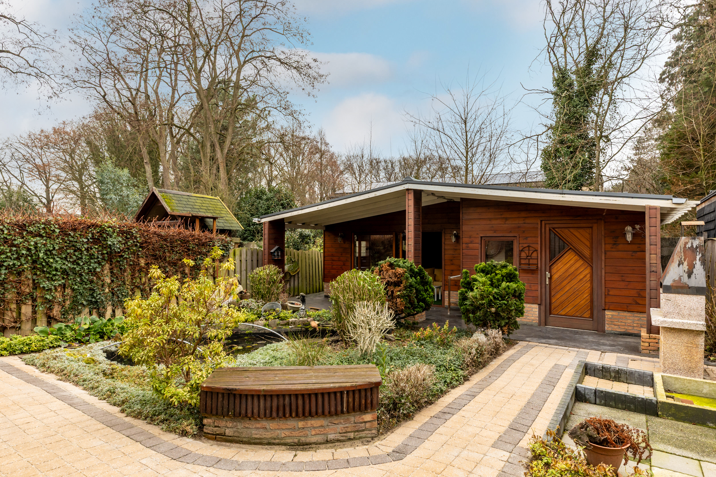 Het tuinhuis is ingericht met een keukenblok in rechte opstelling, voorzien van een spoelbak, koelkast, inductiekookplaat en afzuigkap. De openslaande deuren verbinden het tuinhuis met een overdekt terras aan de vijver, waar binnen en buiten op natuurlijke wijze in elkaar overlopen. Deze ruimte is uitermate geschikt als hobbyruimte, thuiskantoor, gastenverblijf of luxe loungeplek. De tuin is tevens achterom bereikbaar via een poort aan de voorzijde van de woning.