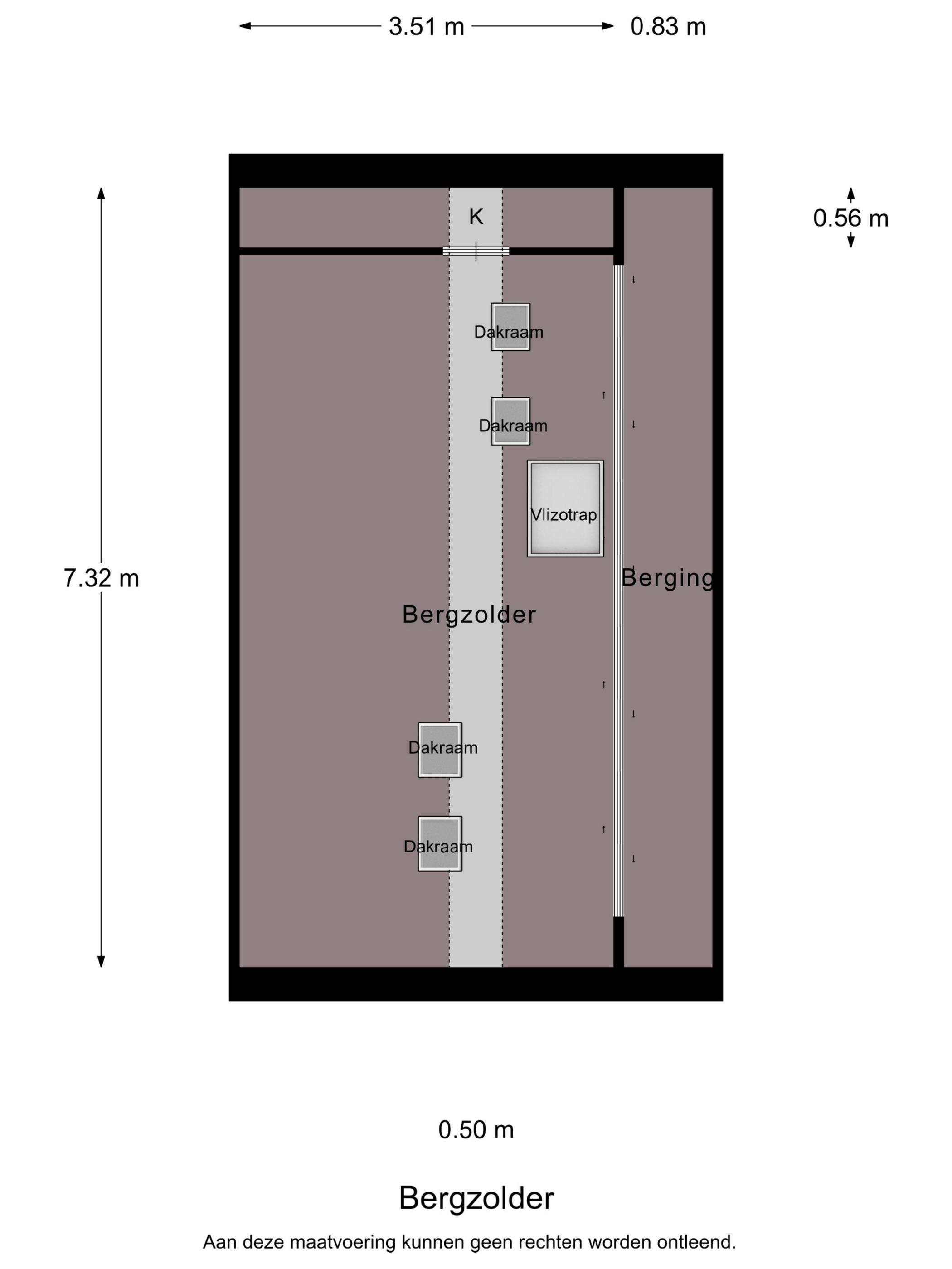 Via een aluminium vlizotrap is de ruime en lichte (berg)zolder te bereiken. De zolder is voorzien van diverse vaste kasten achter de knieschotten en biedt de mogelijkheid tot het creëren van een zesde slaapkamer.