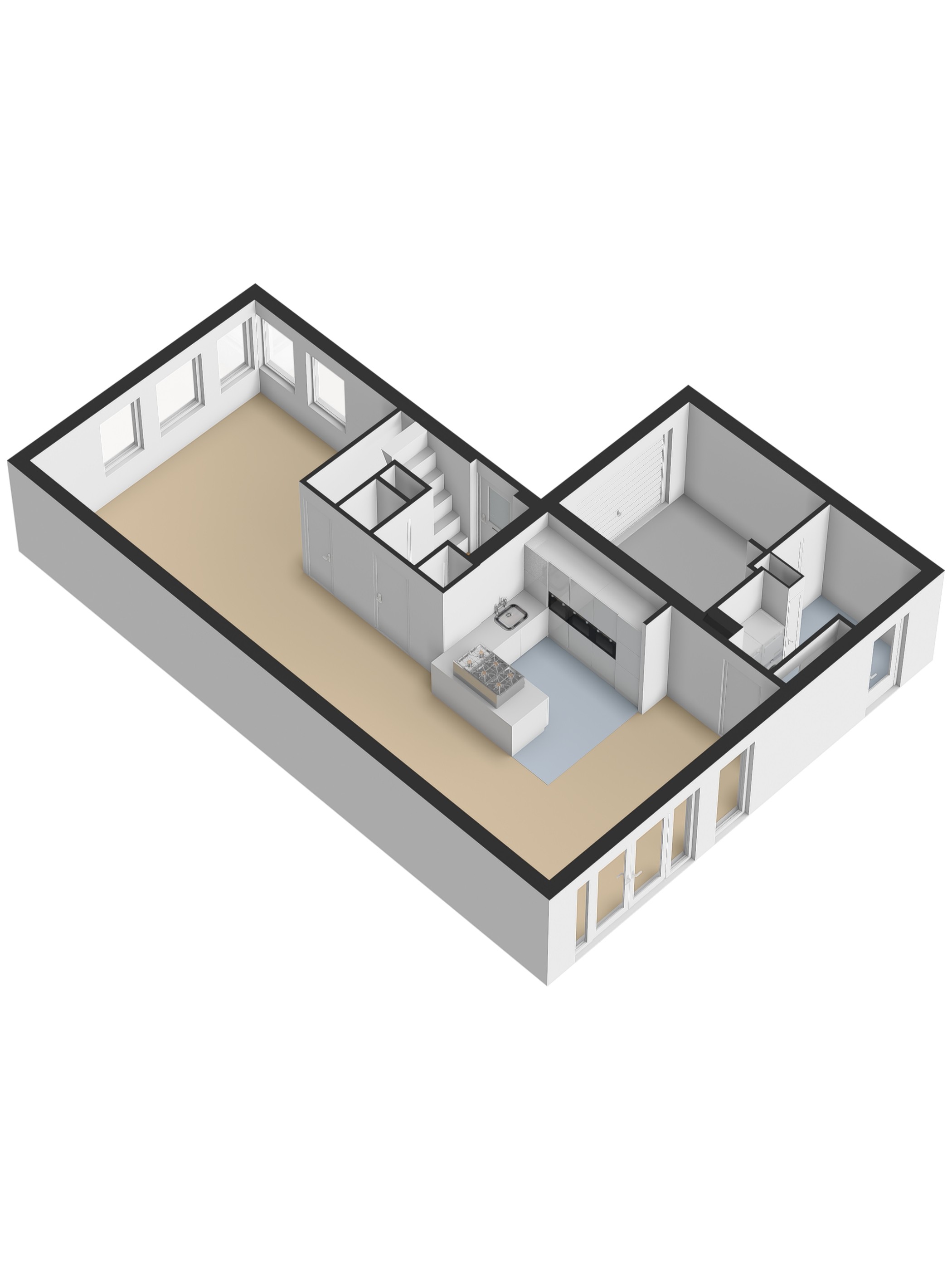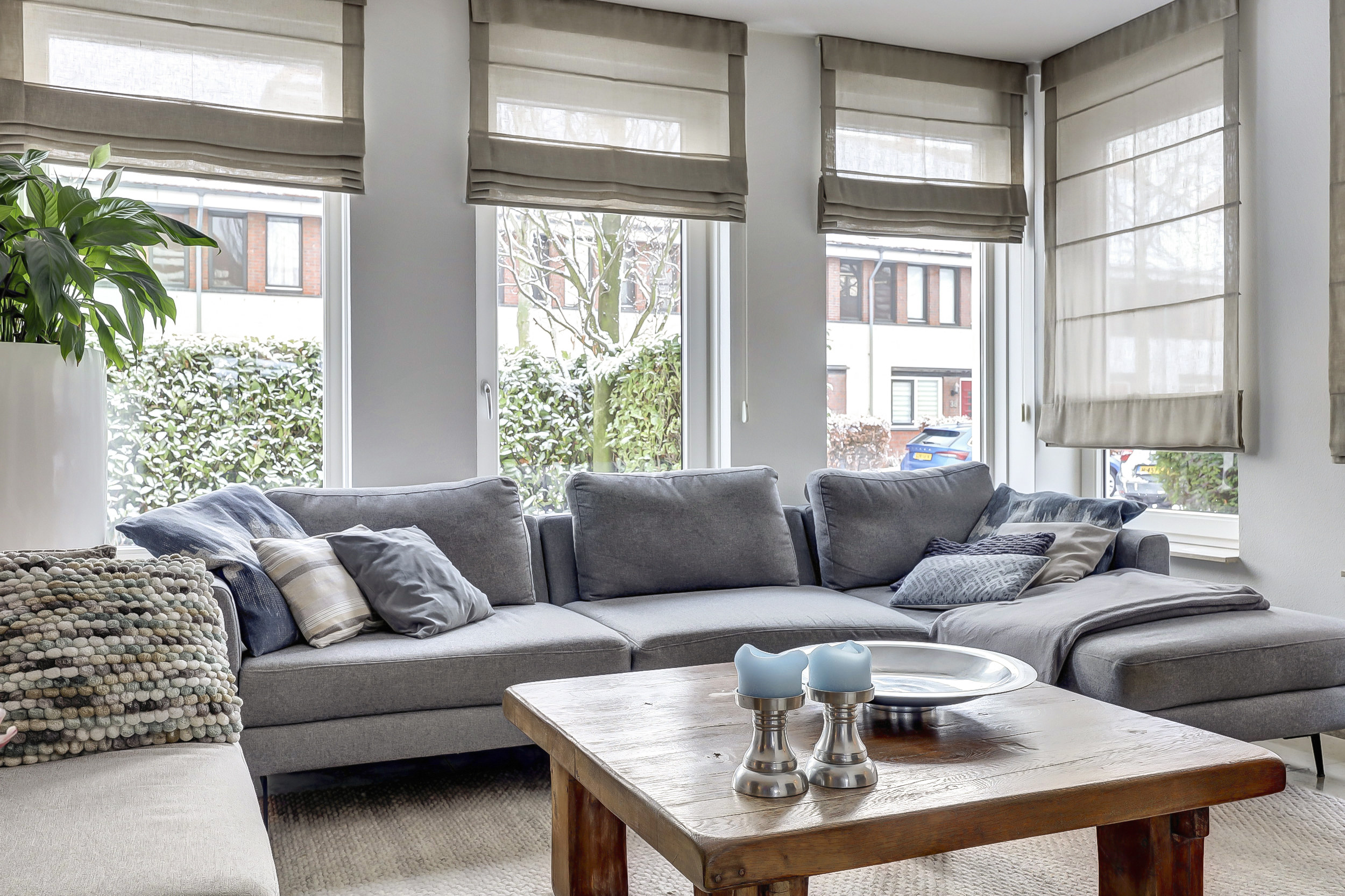 De ruime woonkamer is aan de voorzijde van de woning gesitueerd en biedt volop ruimte voor een comfortabele zithoek. Grote raampartijen zorgen voor een prettige hoeveelheid daglicht en een open, uitnodigende sfeer.