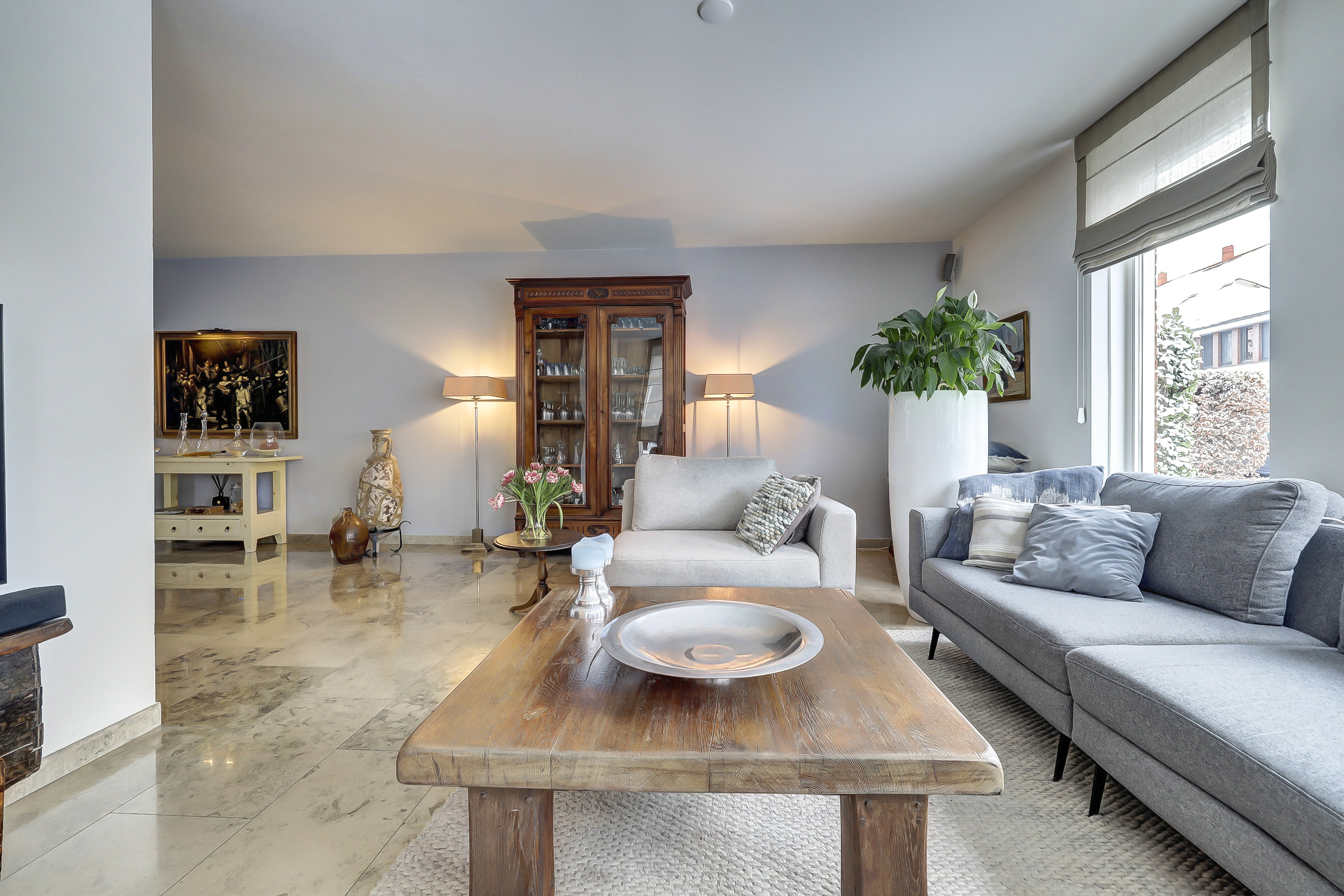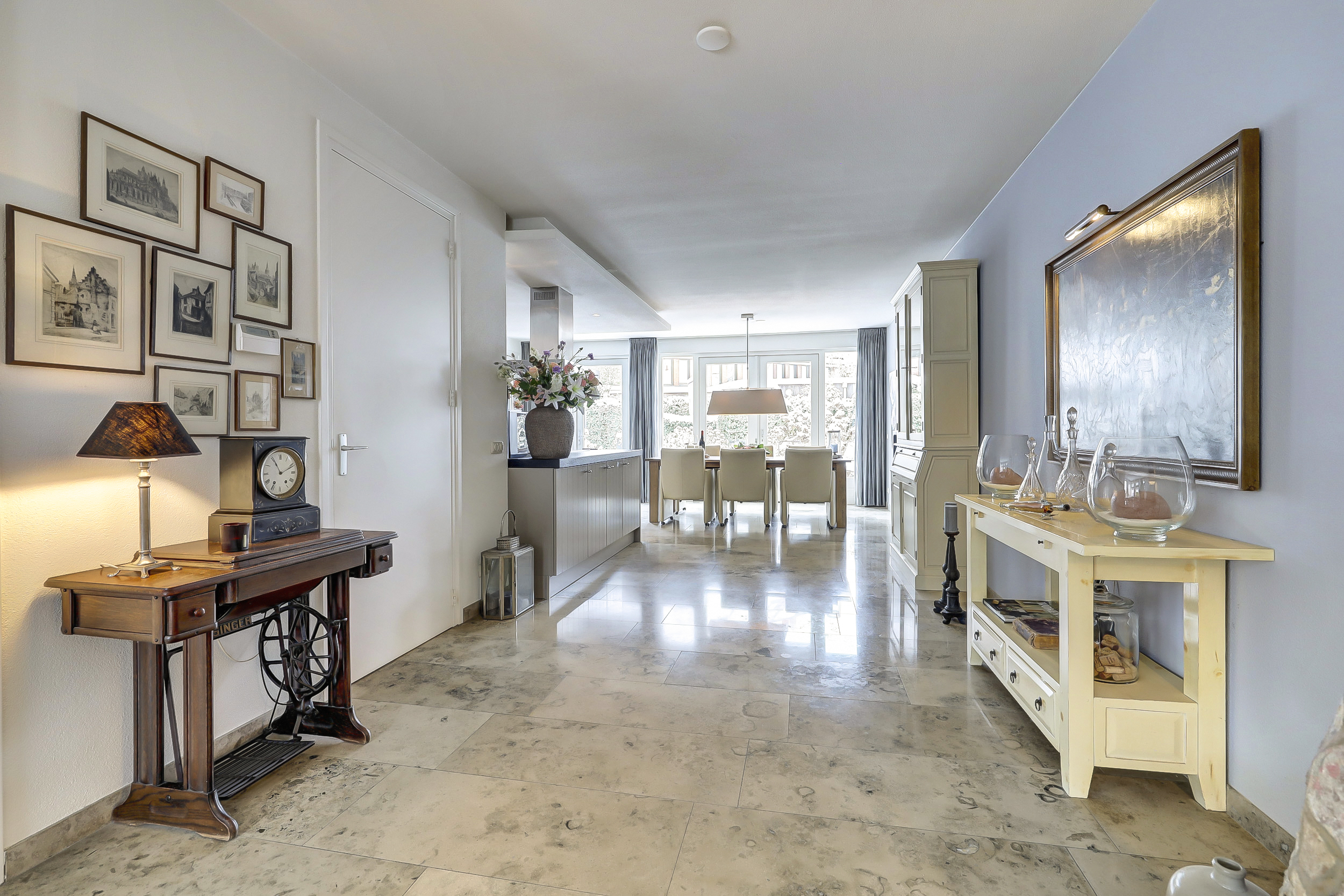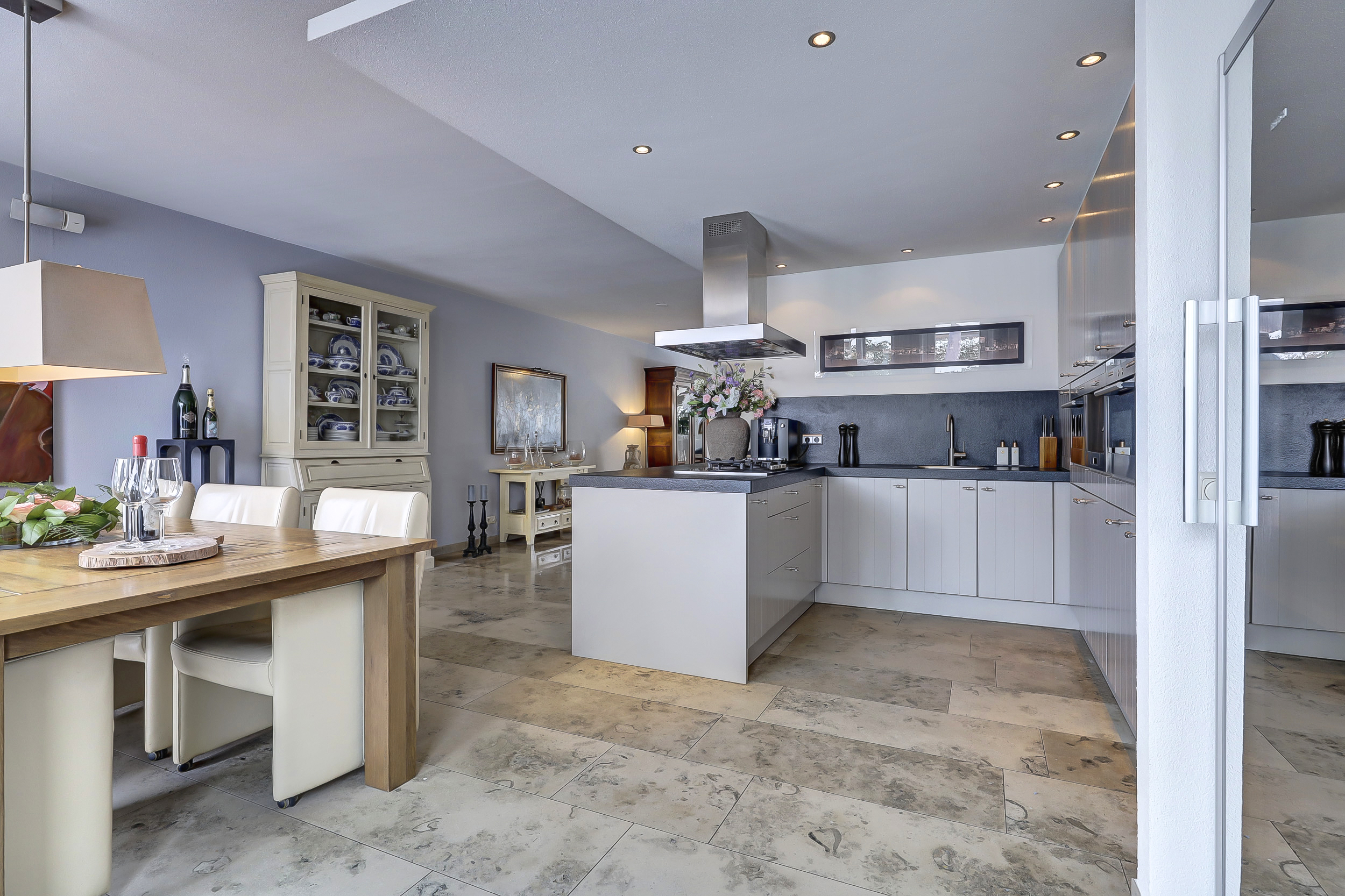 De begane grond is afgewerkt met een fraaie natuurstenen tegelvloer en is grotendeels voorzien van vloerverwarming, wat bijdraagt aan extra wooncomfort.