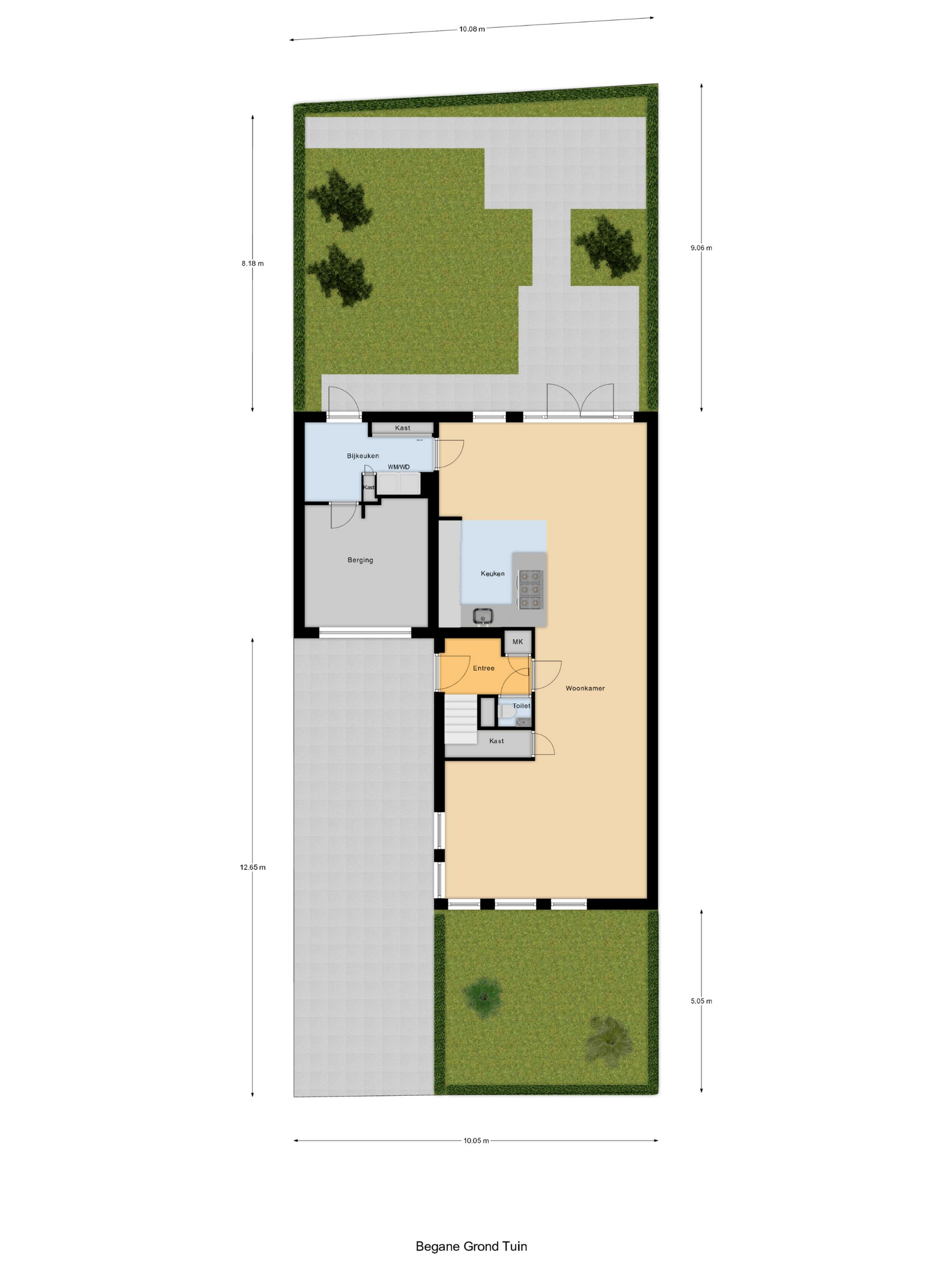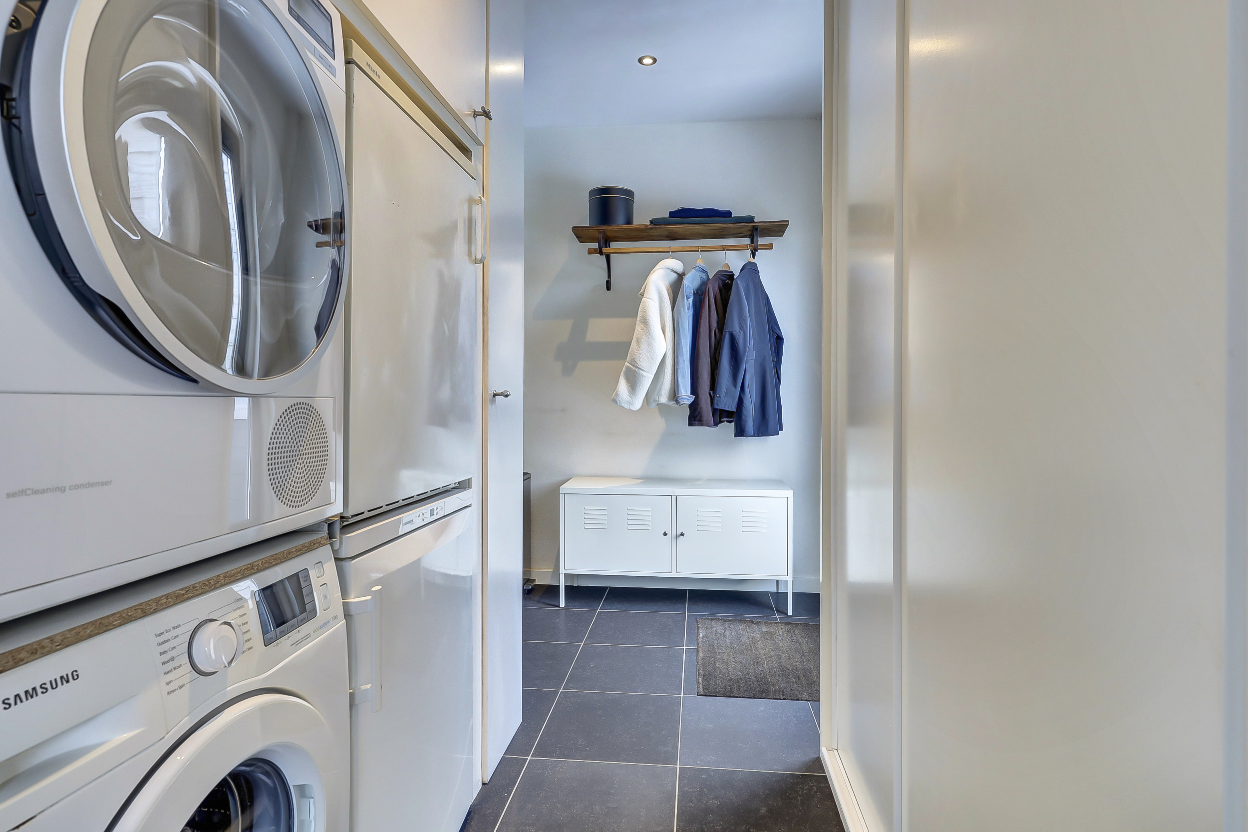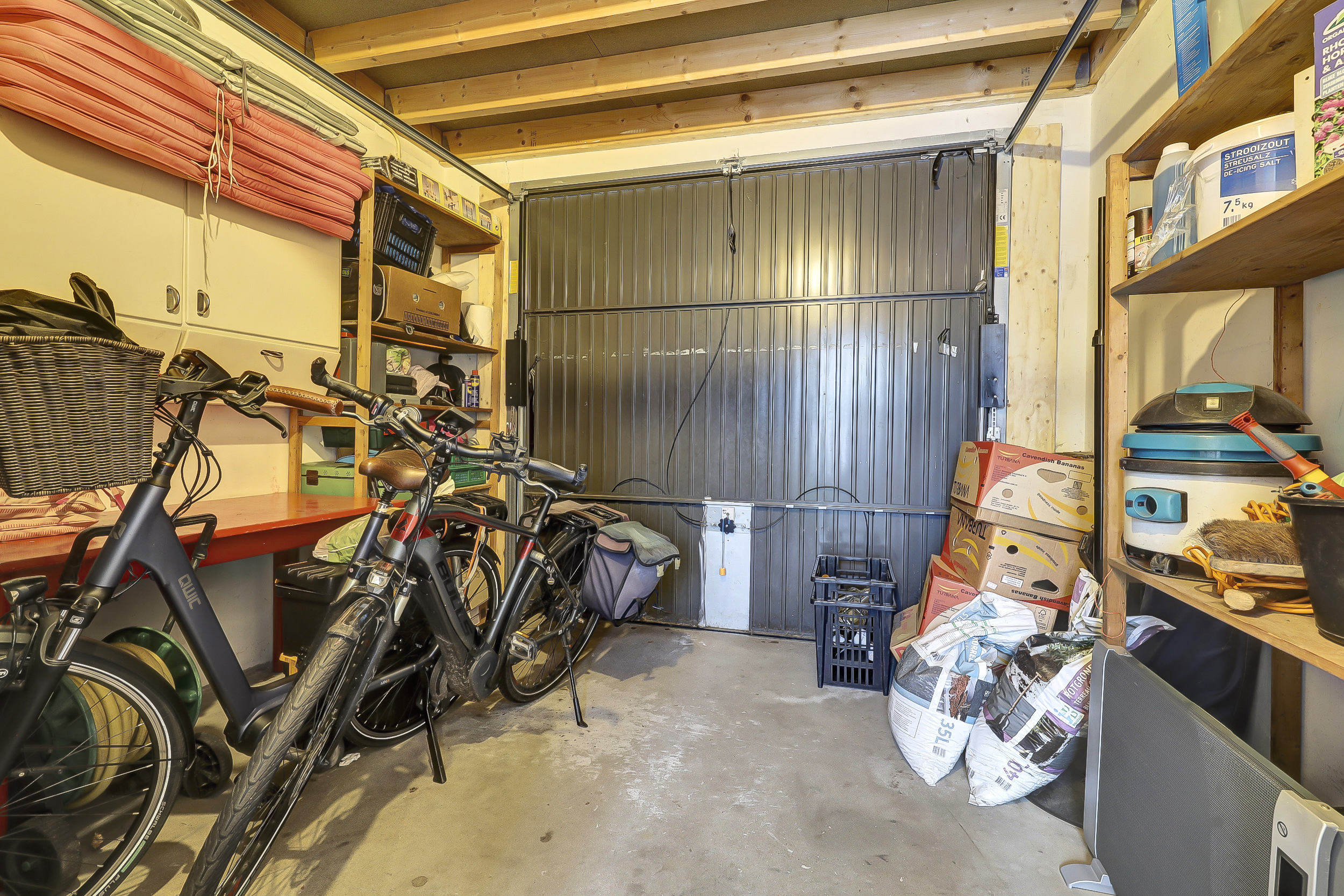 Aansluitend aan de keuken bevindt zich de bijkeuken, ideaal voor extra bergruimte en het plaatsen van was apparatuur. Vanuit de bijkeuken is er directe toegang tot de aangebouwde berging, wat zorgt voor optimaal gebruiksgemak.